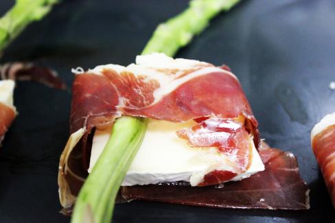 Men här är ett litet provsmak. Sparris med brie inlidad i parmaskinka.