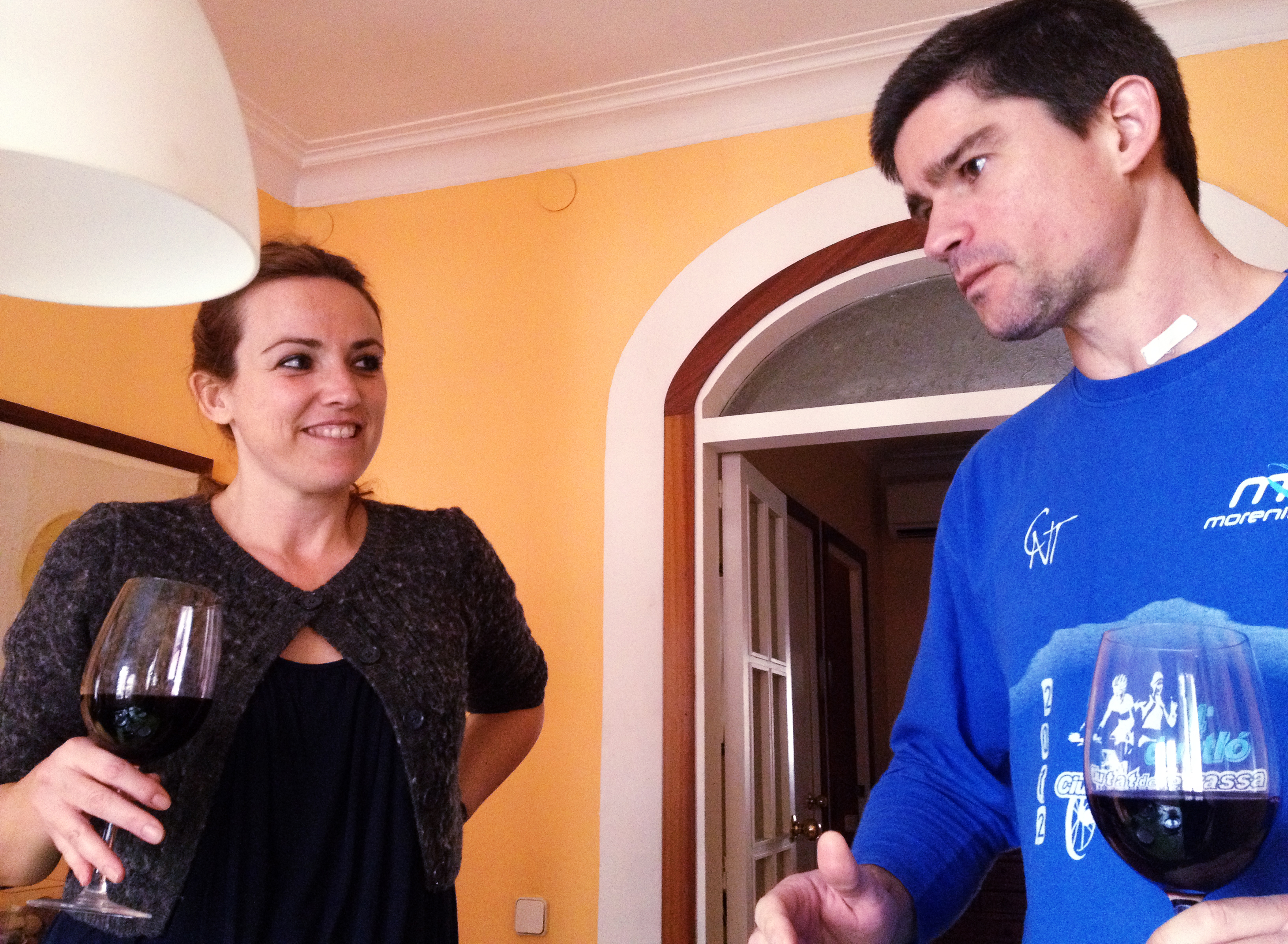 Nästan direkt efteråt tog vi oss till Noemi och Helios för att fira och äta en rejäl lunch. Här förklarar Helios hur det känns när man får kramp i benet och försöker fortsätta springa ändå?!