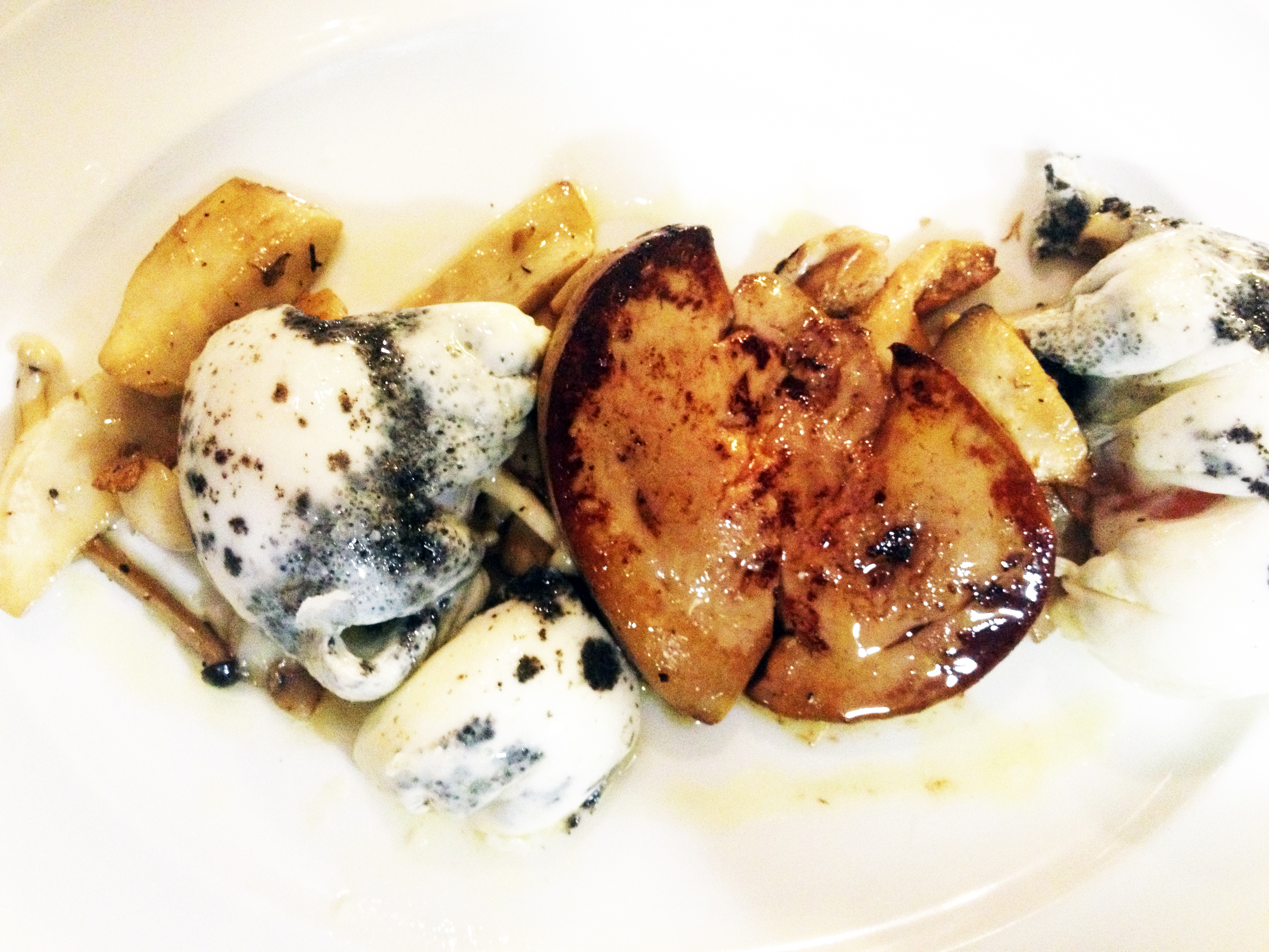 Det allra godaste var detta. Pocherade ägg med tryffel och stekt gåslever. Jag höll på att dö.