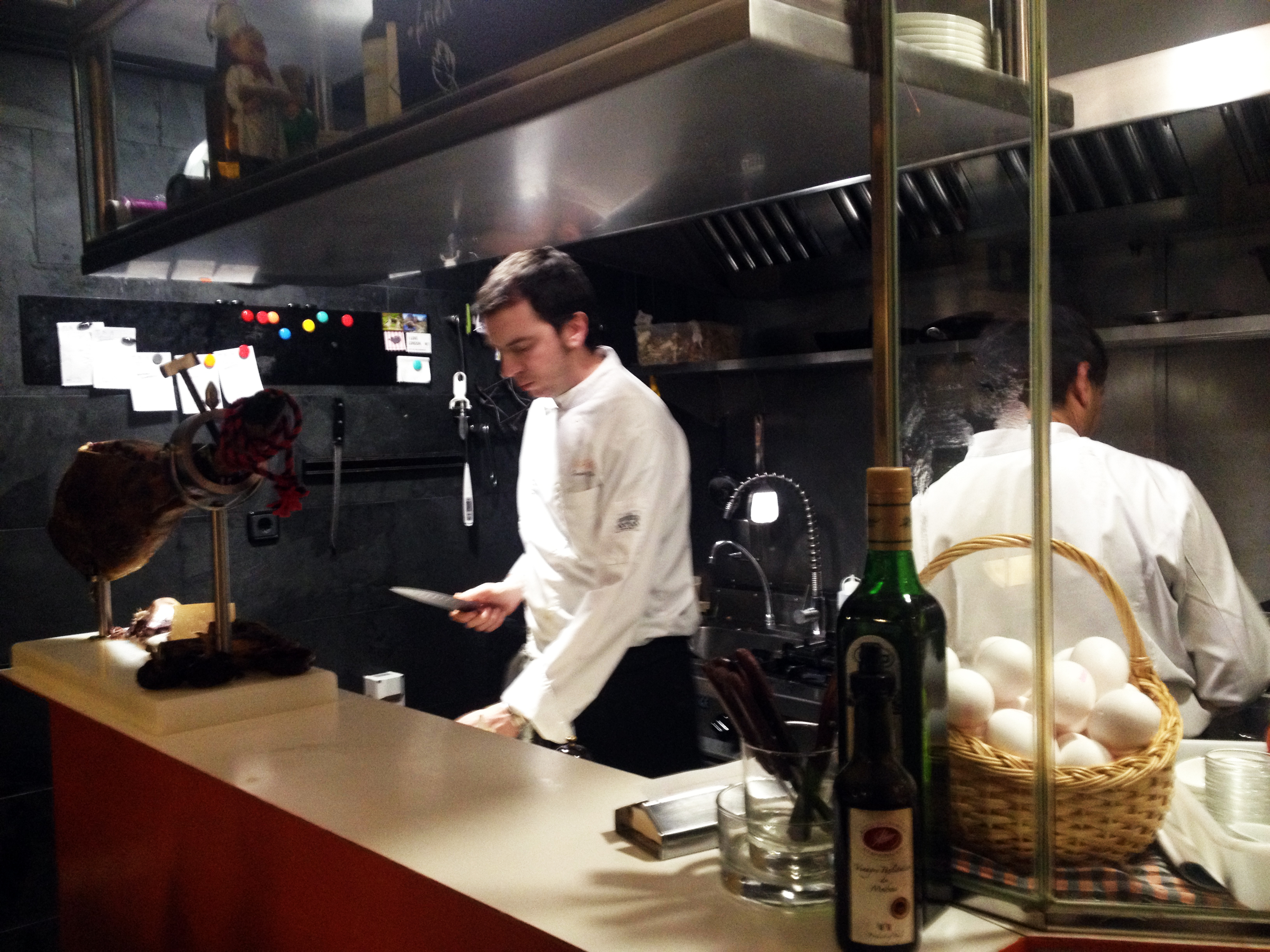 Här står kocken/ägaren Daniel och kockar i sitt lilla kök alldeles intill gästernas bord och gör det med en sådan perfektion att det bara är en njutning att sitta och titta på honom.