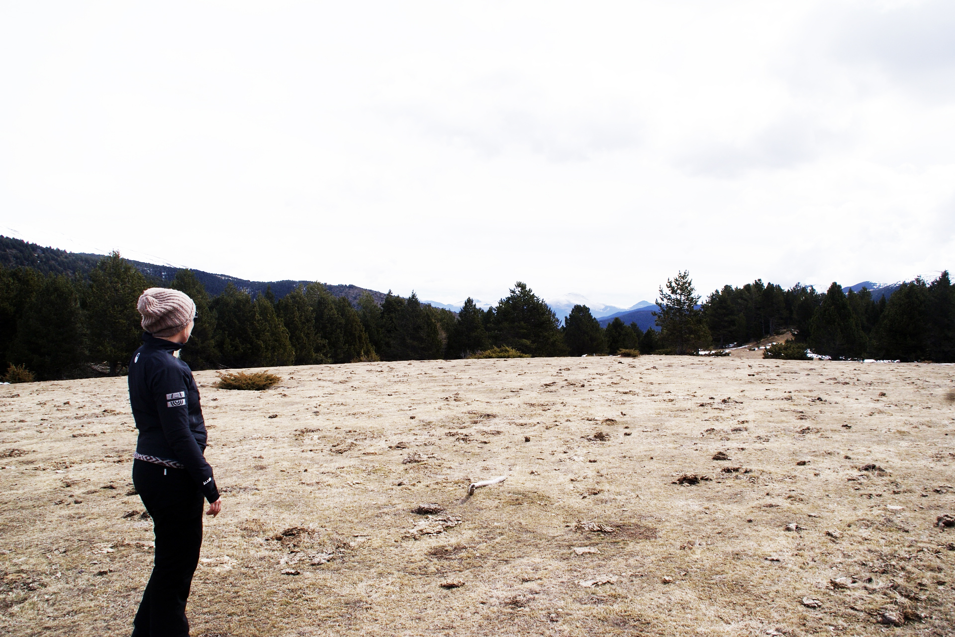 Marken var bar, men bergen var snöklädda.