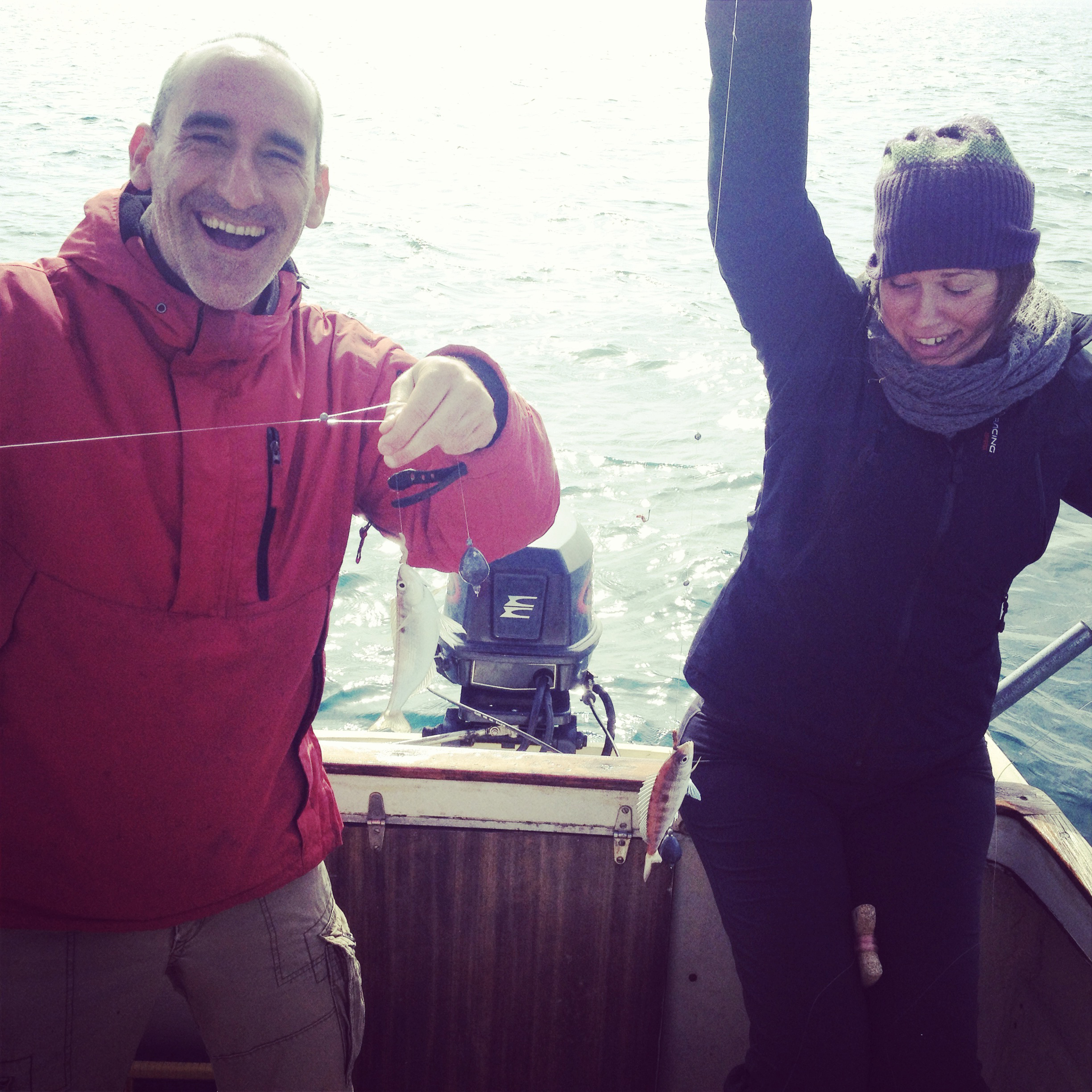 Och plötsligt fick vi napp. Små, små firrar, men Edus och Carros fiskelycka var mycket större än så. Ja, ni ser!