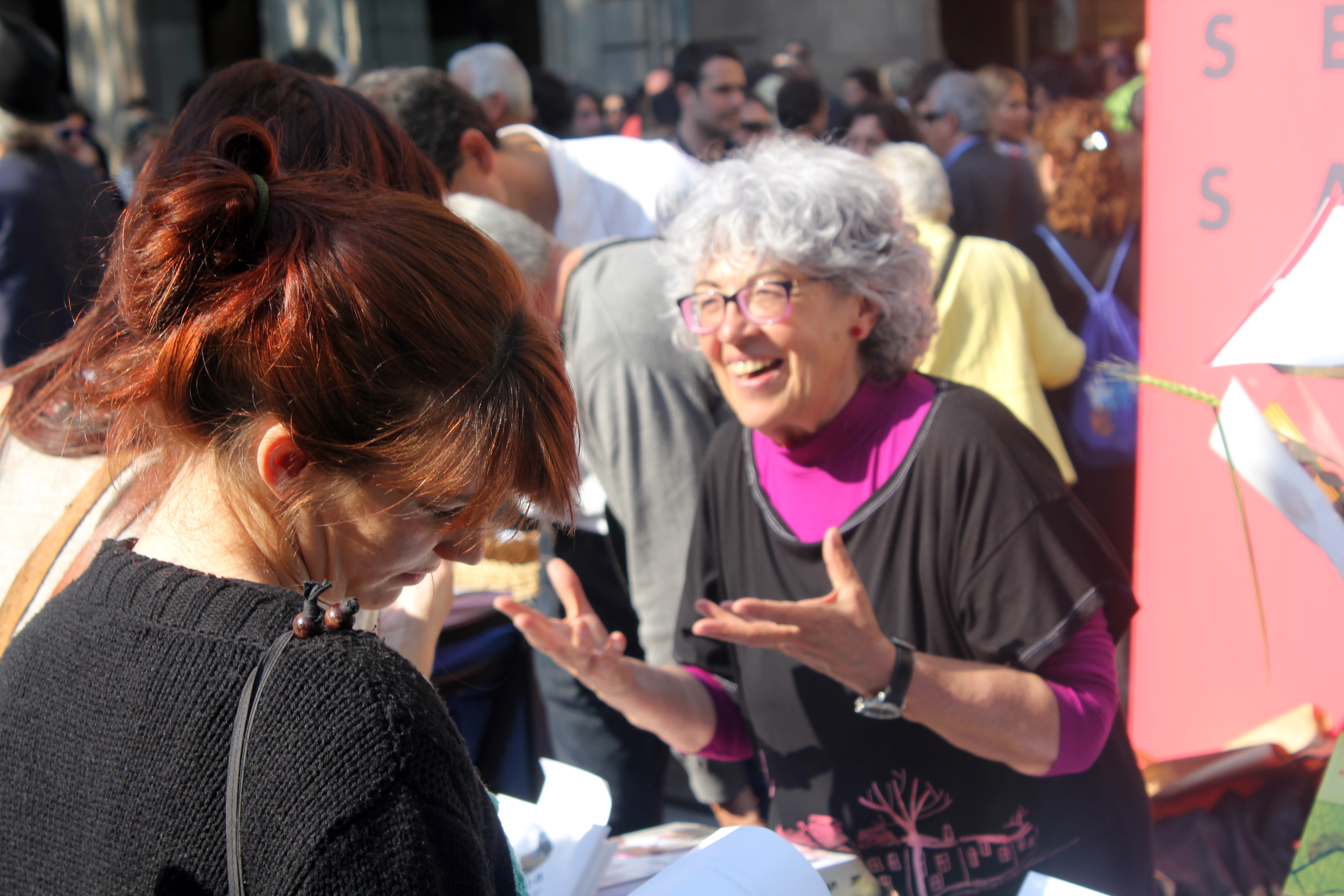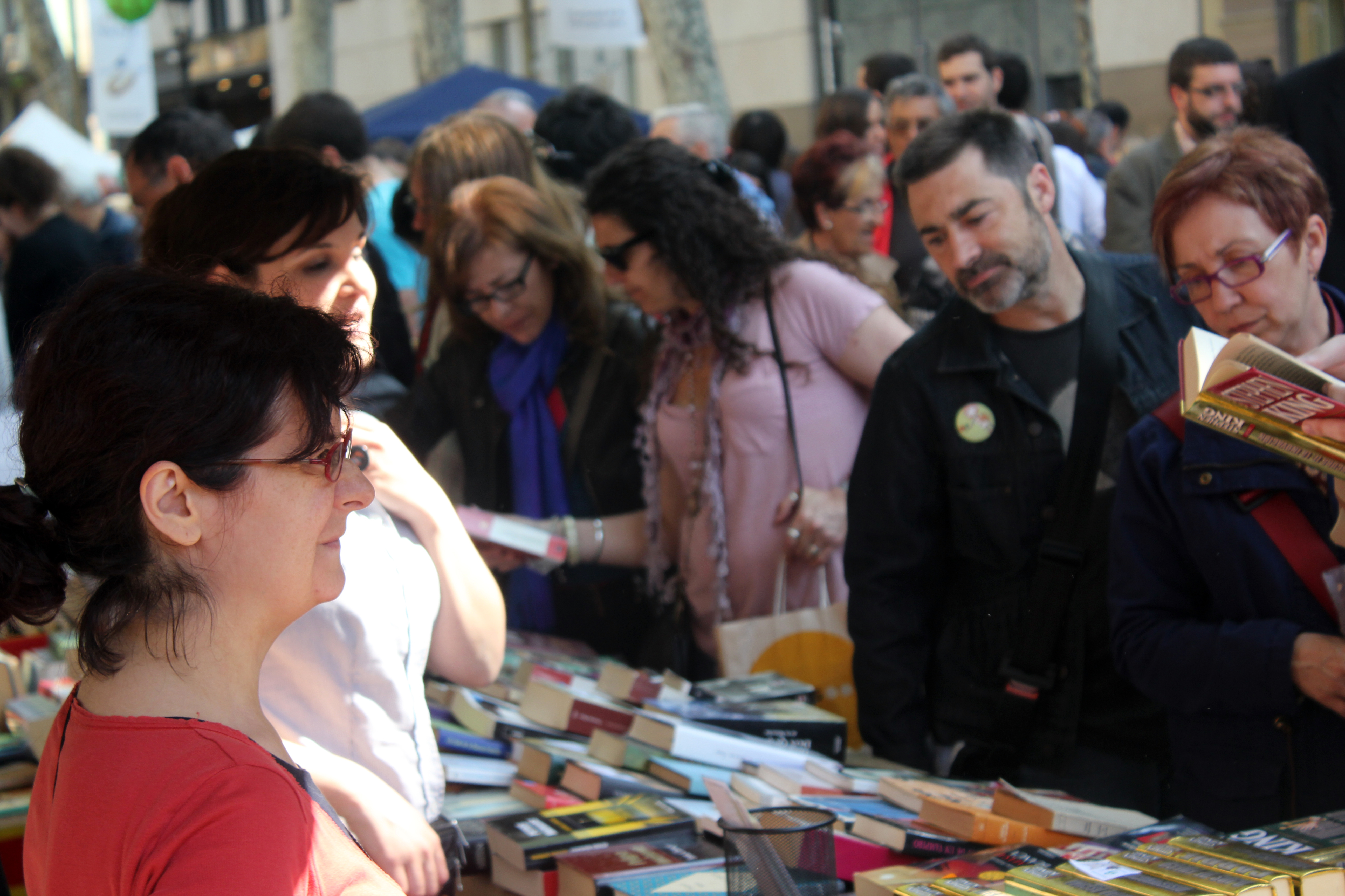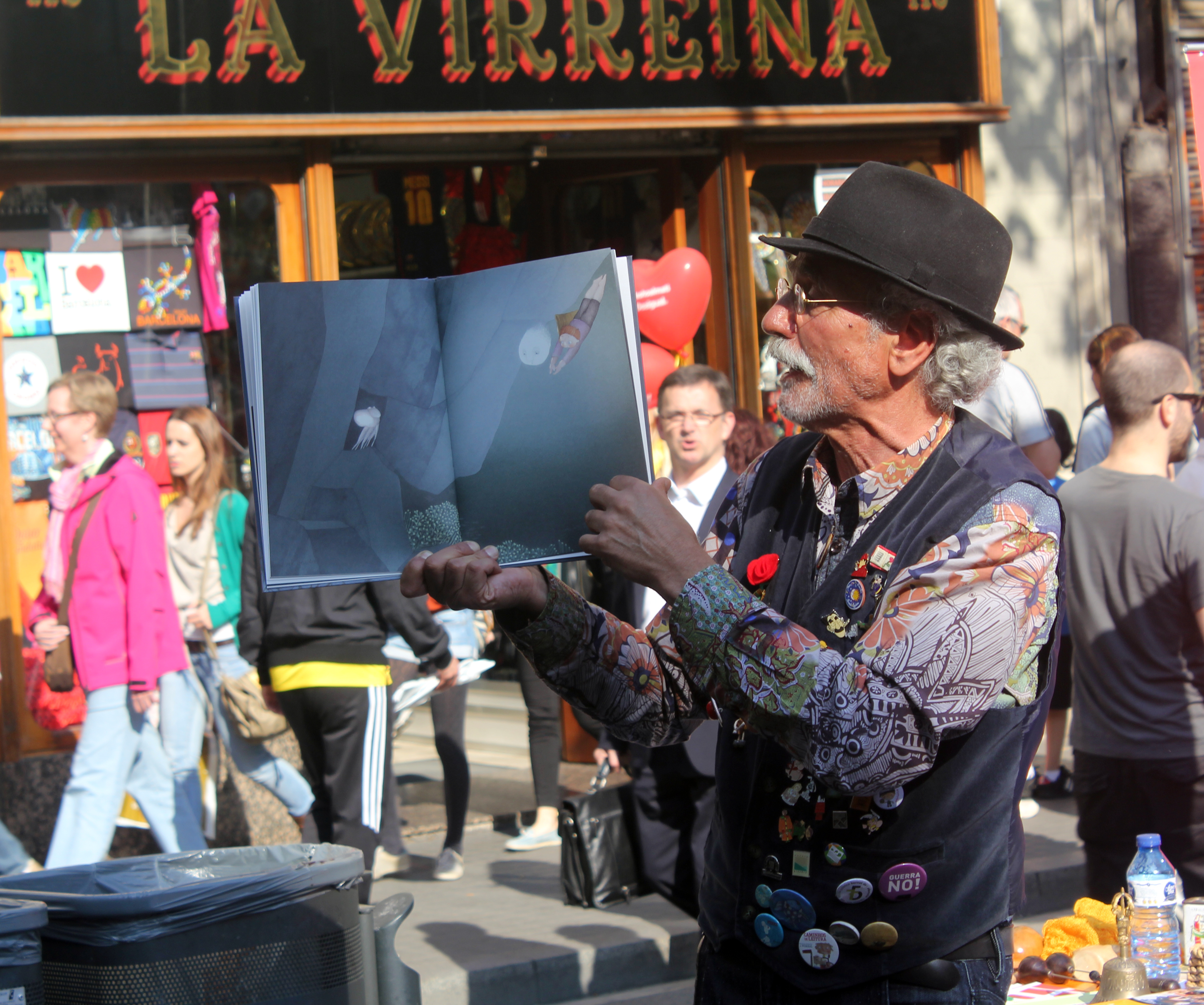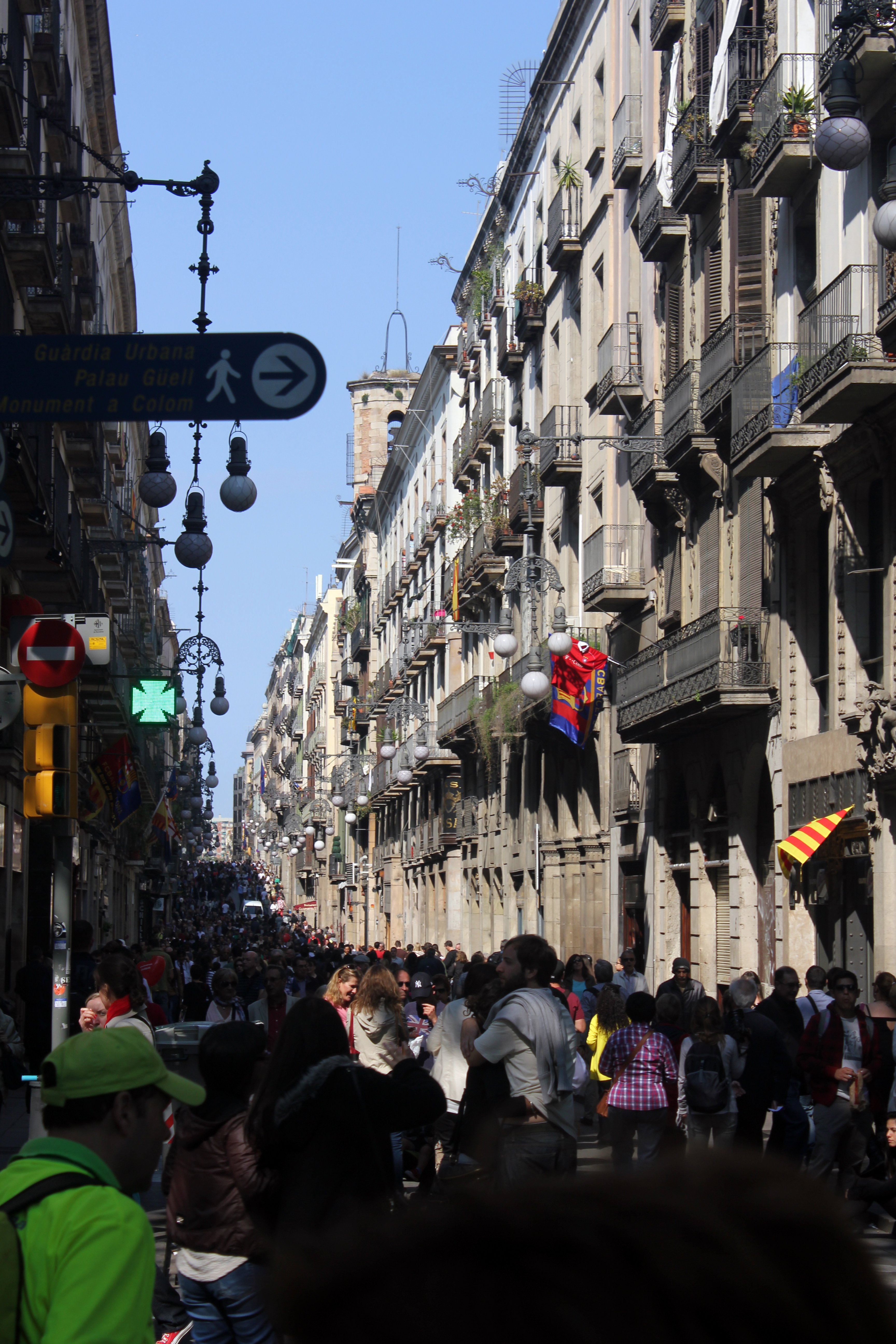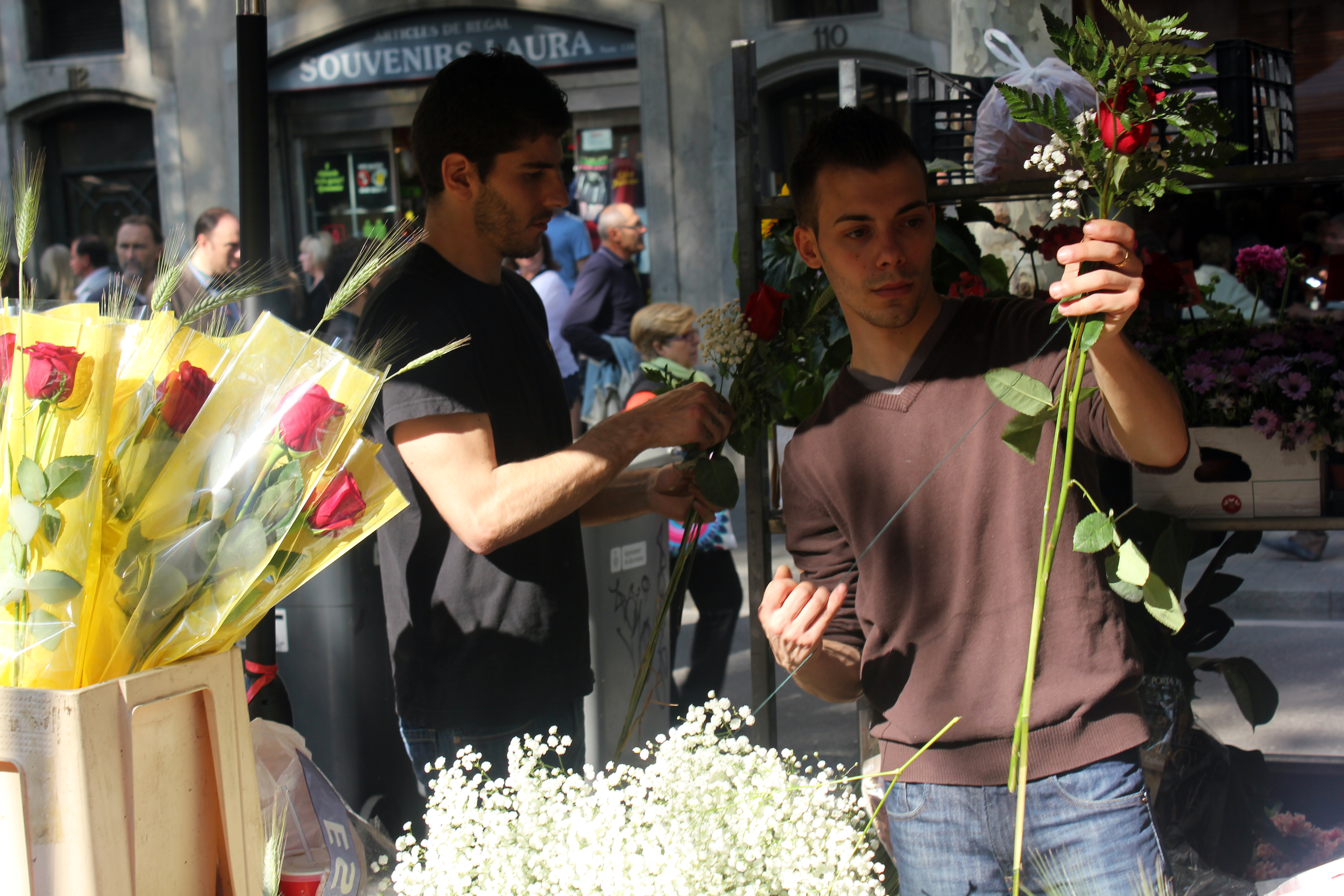 I dag är det Dia de Sant Jordi här i Katalonien. Det kan bäst beskrivas som alla hjärtans dag på spanska. Flickorna får rosor och pojkarna böcker av sina kära. Vi gick ner för Las Ramblas och tittade på alla vackra blommor och människorna som hade samlats för att köpa böcker. På vissa ställen var det så trångt att man knappt kom fram. Men en skön feststämning låg i hela luften.