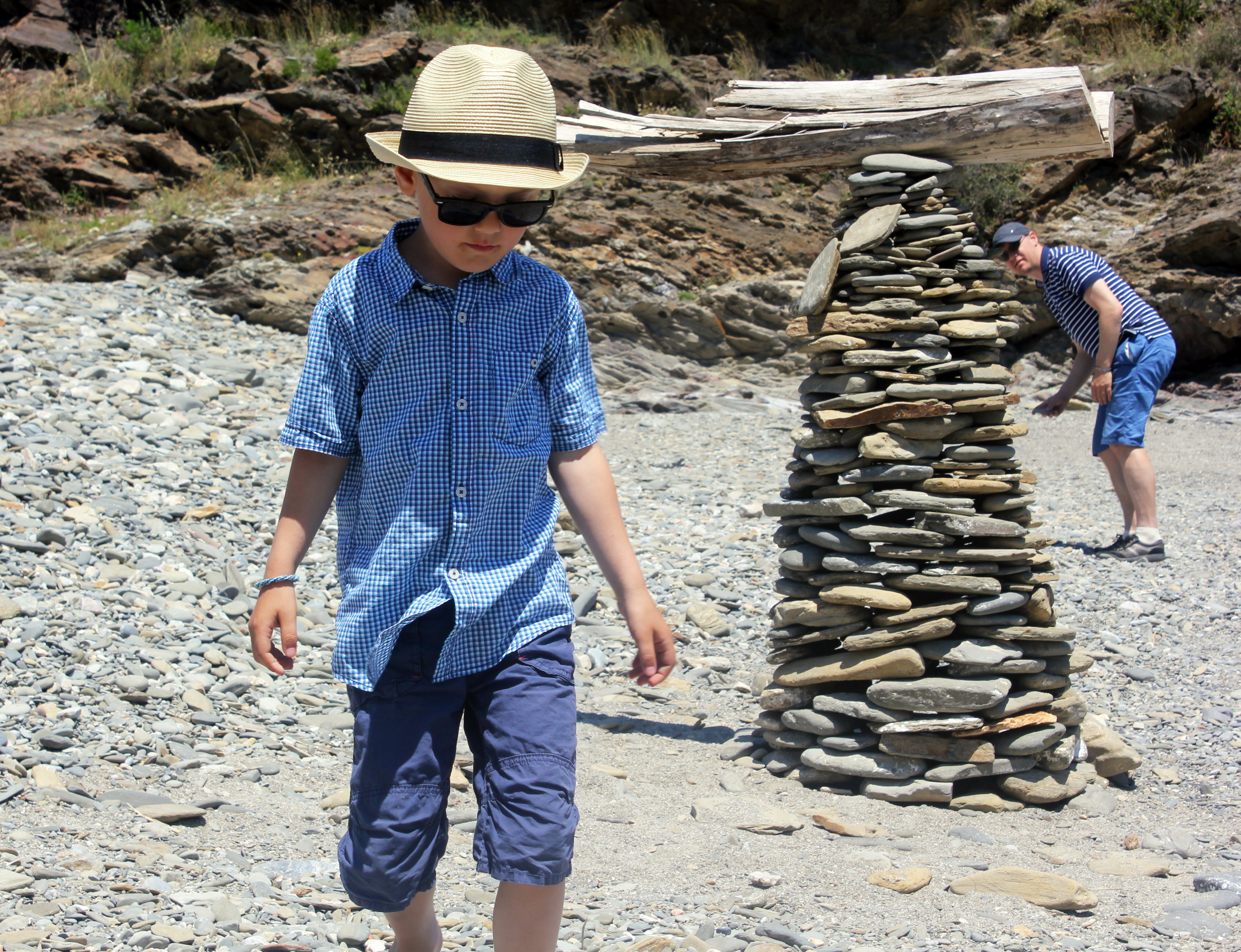 Olle samlade stenar och de andra kastade mackor i sjön. Jag trodde Olles hatt skulle gå sönder när han efter ett tag även började fylla den med sina stenskatter.