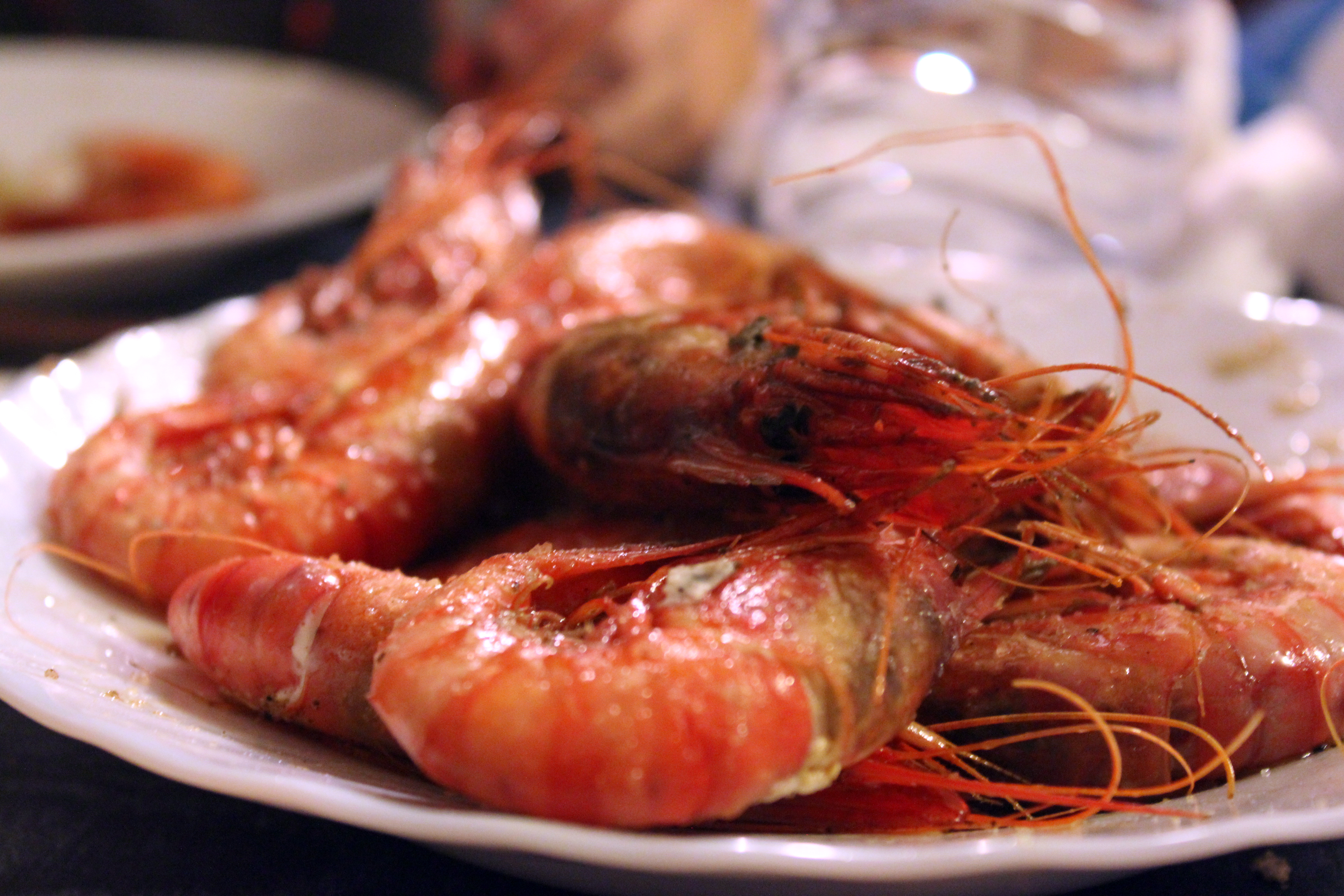 och åt massa gott. Här i närheten ligger nämligen en annan by som heter Palamos, där fiskbåtarna kommer in direkt från Medelhavet. Jag och Edu åkte dit och handlar direkt från båtarna. Och sedan frossade vi i oss allt det här: