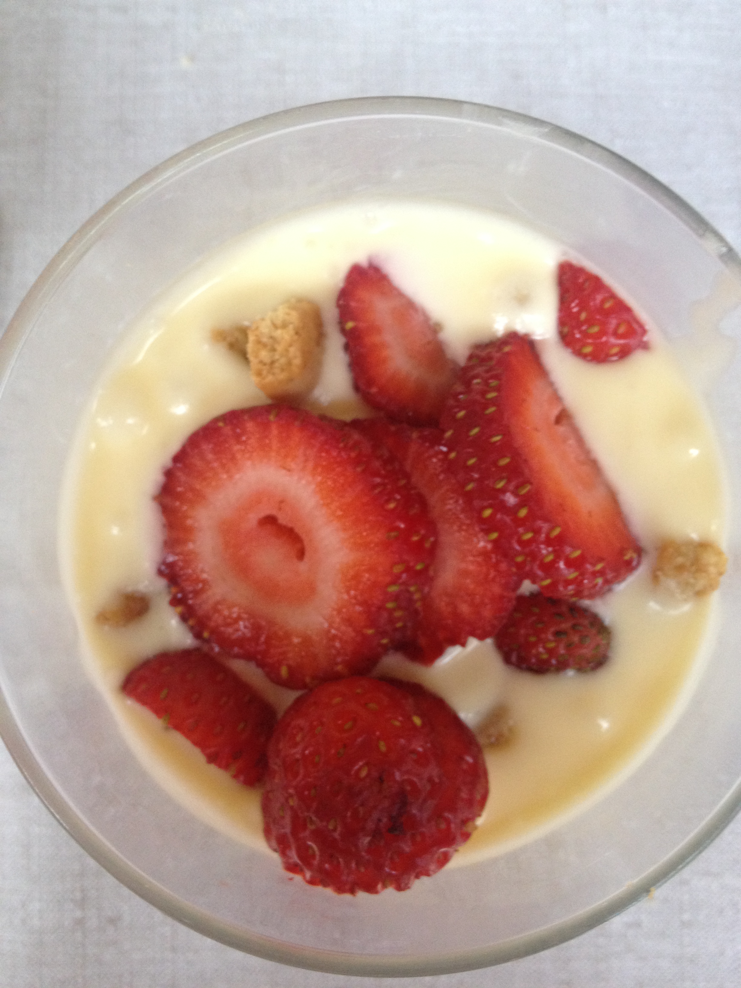 Till efterrätt jordgubbar med mascarpone-kräm.