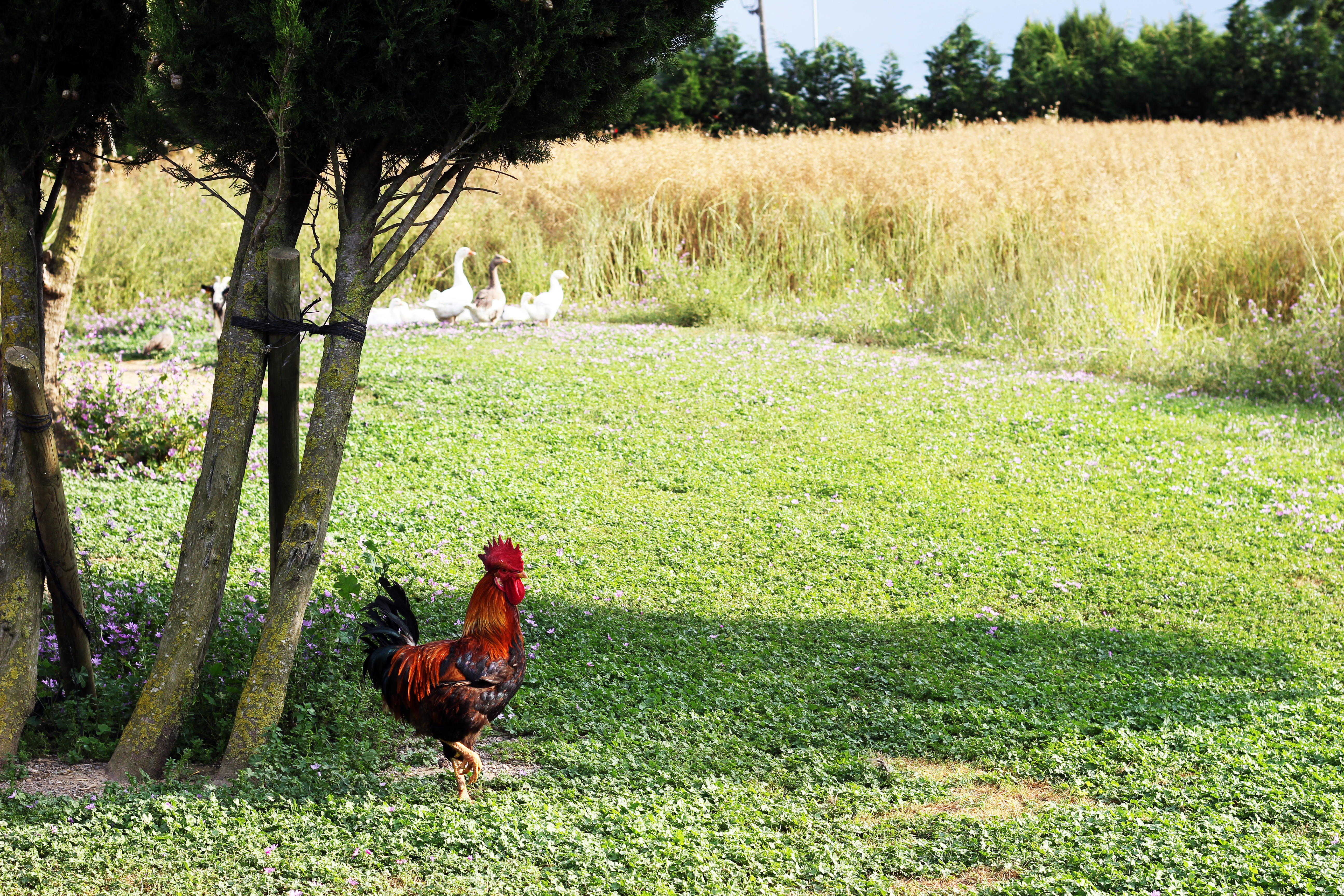 De har en sådan fin gård med tupp, höns, getter och massa odlade grönsaker.