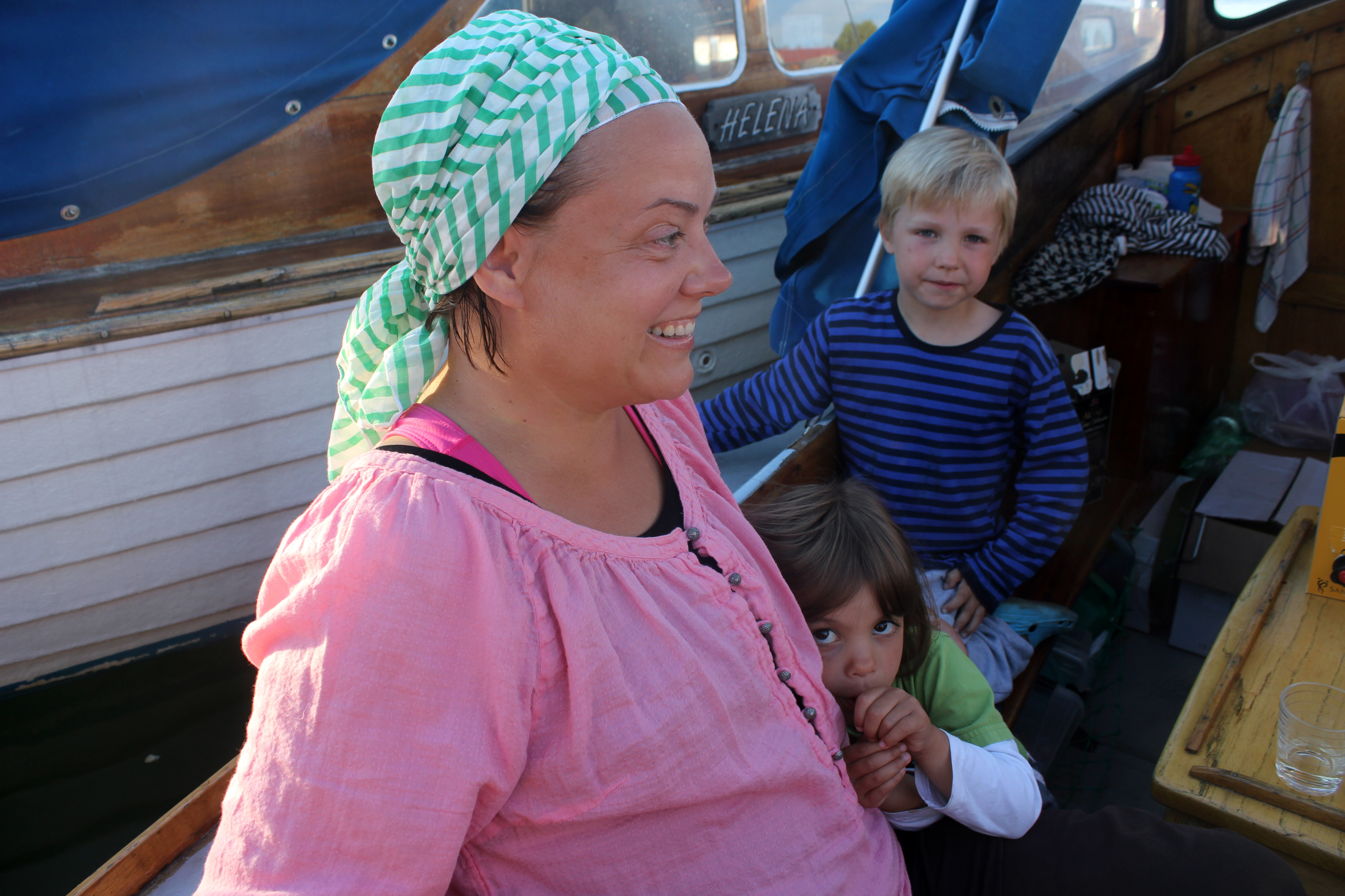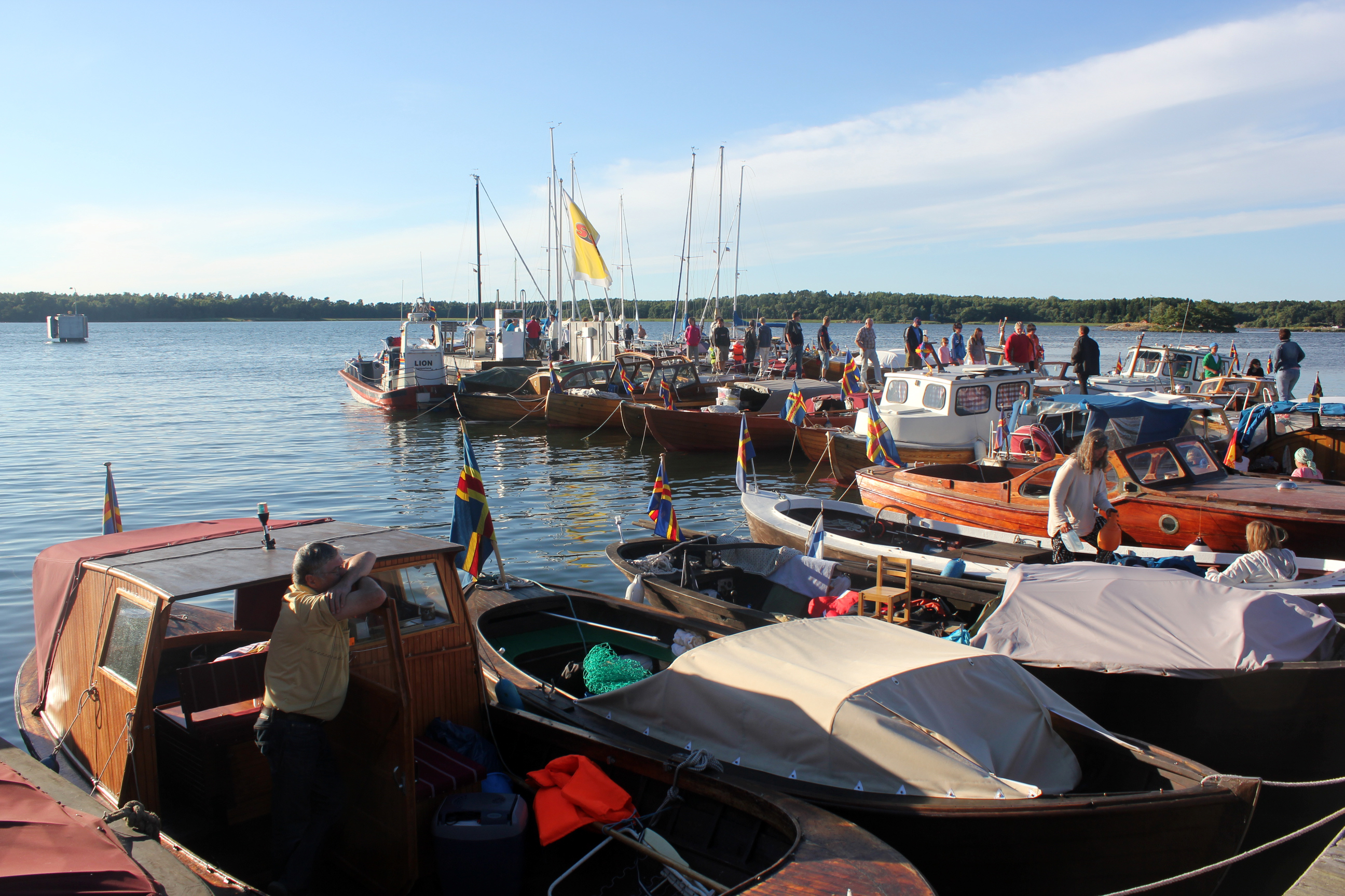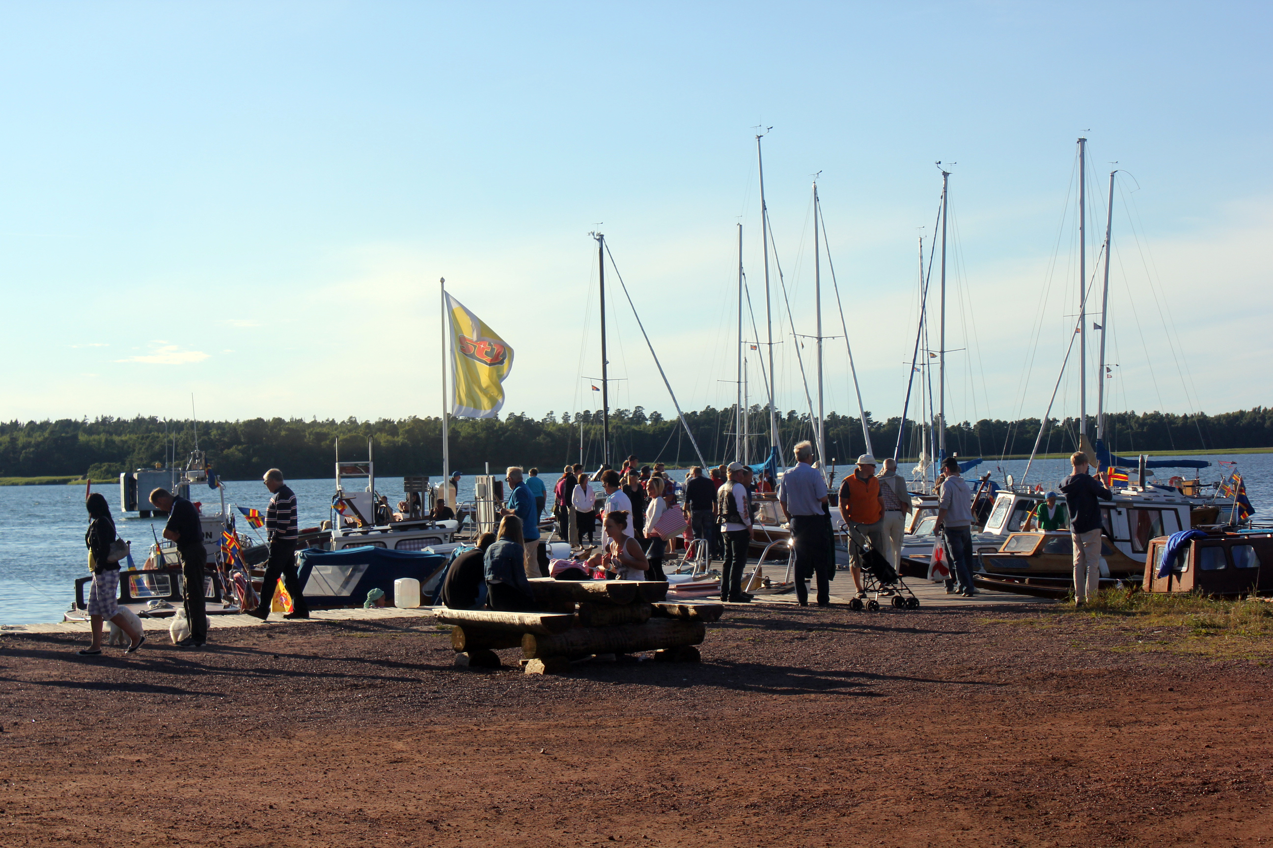 bland alla människor som samlats på bryggan för att kika på båtarna.
