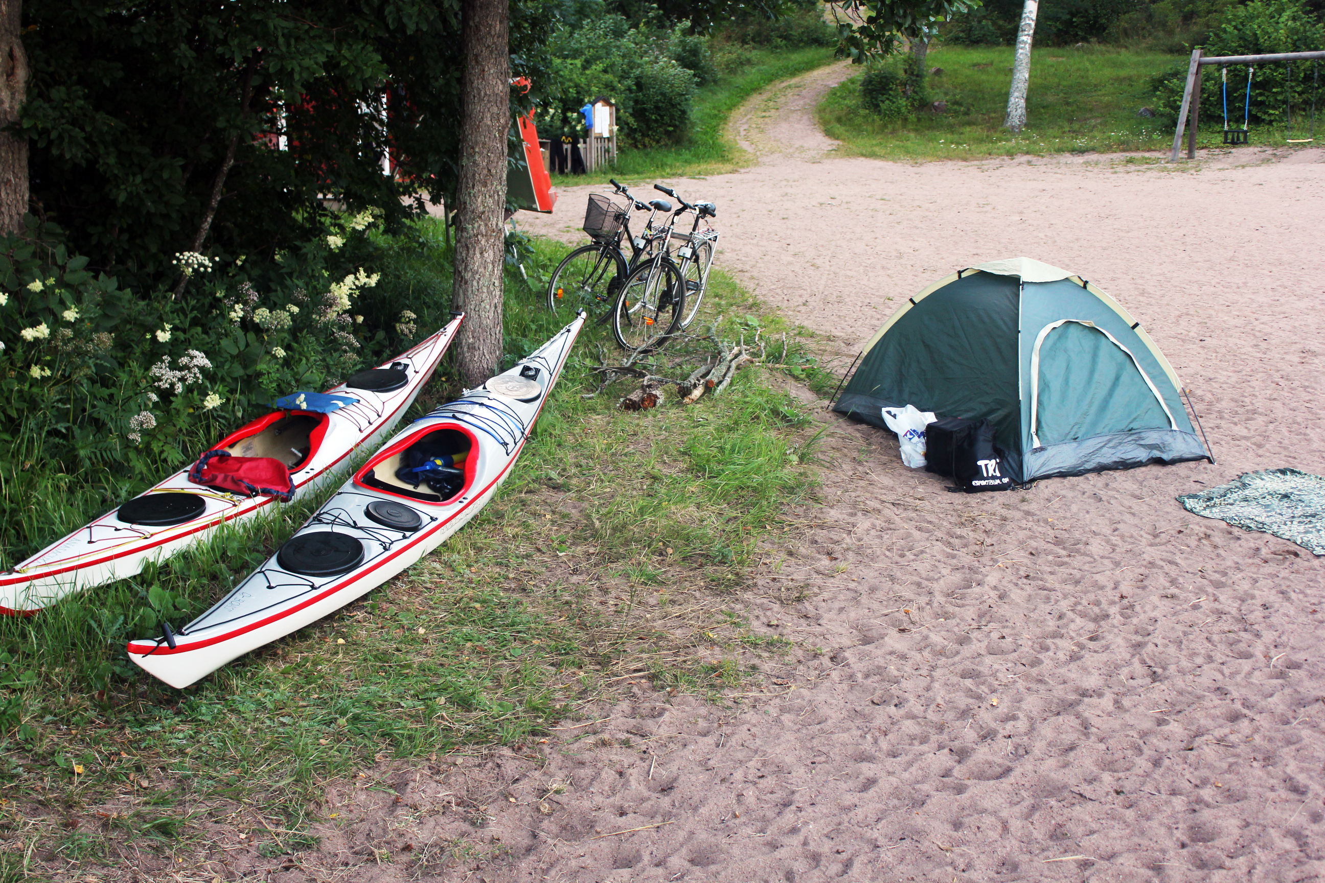 Vi fick sällskap av några göteborgare med kajak och kröp sedan in i vårt lilla tält