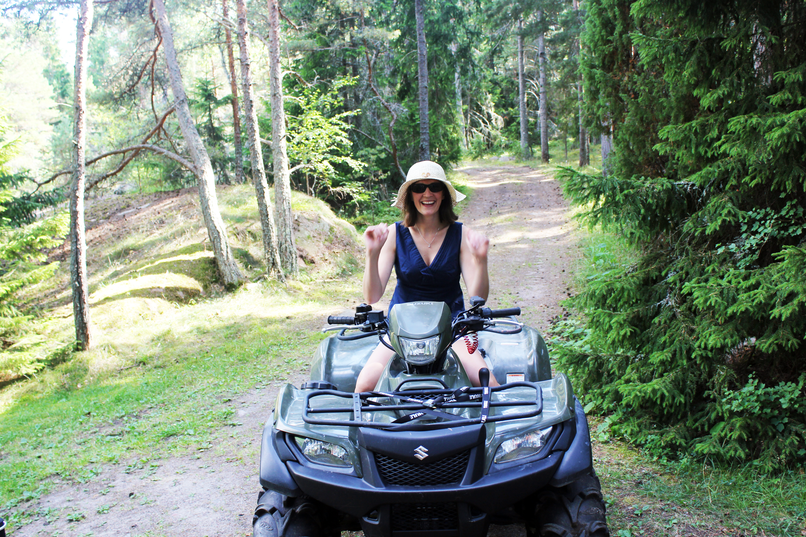 Vid halv elva hade det börja skymma. Vi gick in i saltarboden en stund innan Lina skjutsade hem mig. På vägen tillbaka mötte vi en älg.