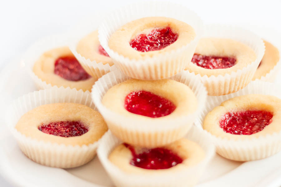 Gör så här: Sätt ugnen på 200°. Rör smör, socker och vaniljsocker poröst. Tillsätt mjölet blandat med bakpulver och kanel. Arbeta ihop till en deg. Rulla ut degen till en längd och dela den i 30 bitar. Rulla dem till kulor och lägg i småbrödsformar. Gör en fördjupning i varje kaka och lägg i en klick sylt. Grädda i mitten av ugnen ca 12 min.