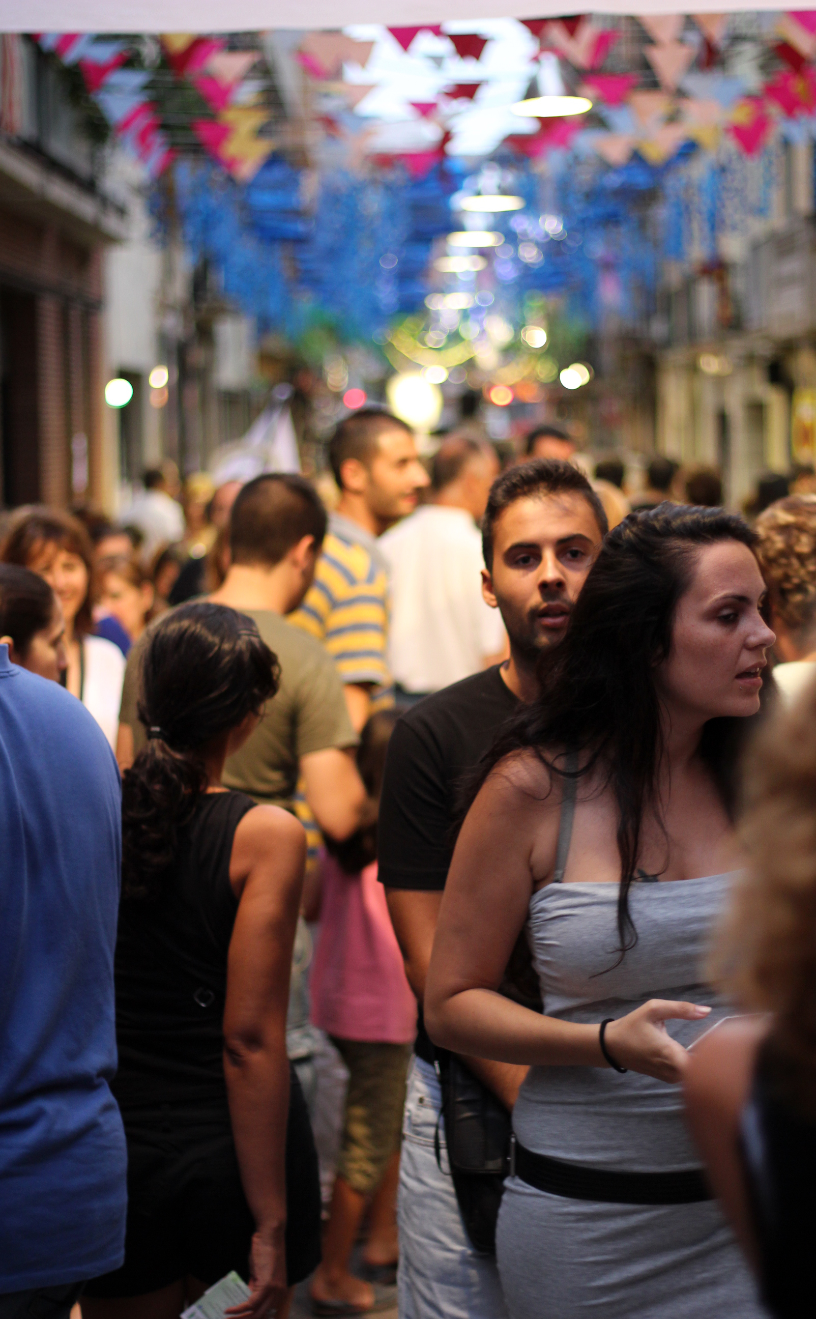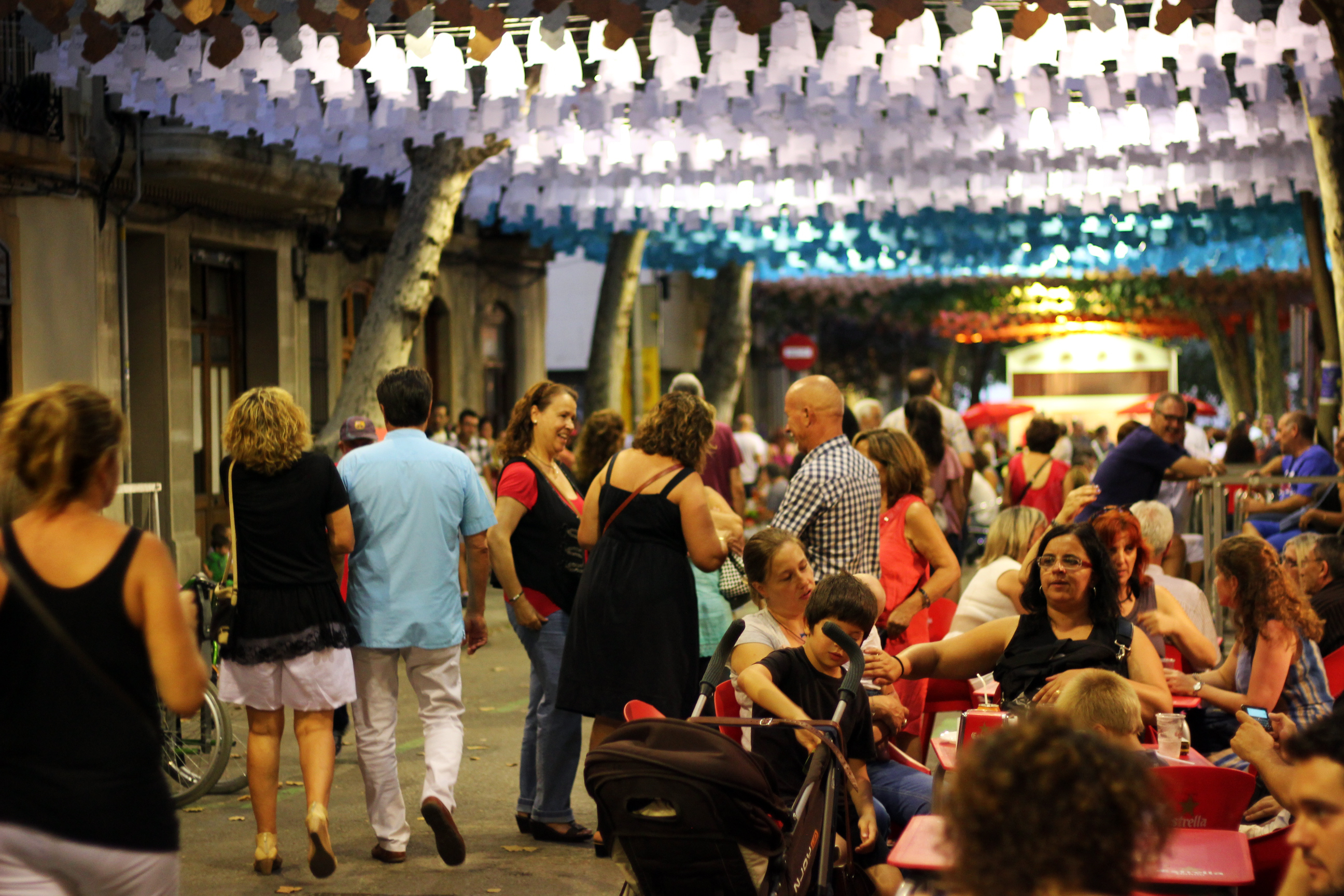 I går efter en lugn dag på stranden knallade jag och Edu ner till Gracia för att gå på bio. Så här ser det ut i våra kvarter om kvällarna när temperaturen sjunker lite grann och folk kommer ut för en kvällspromenad.