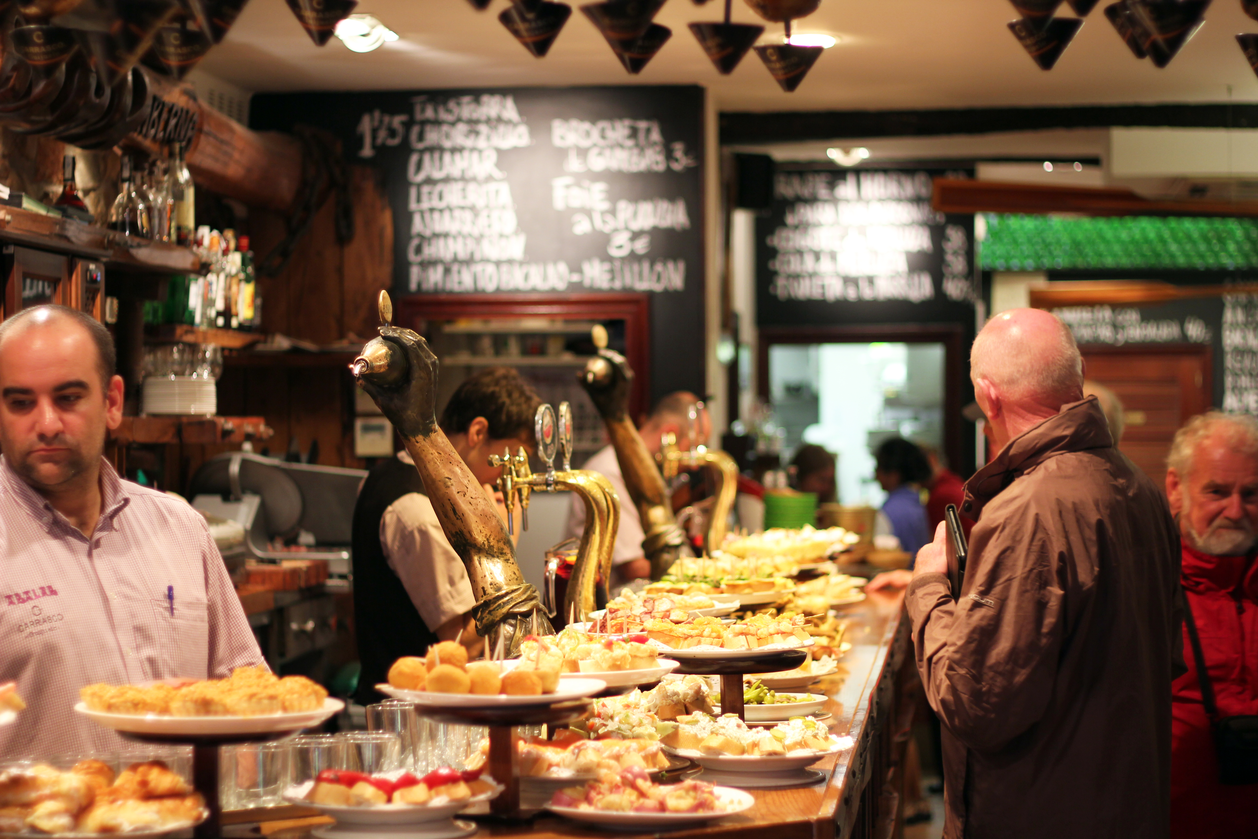 Bardiskarna där är totalt fullproppade med så kallade Pintxos, små tapas på bröd gjorda av alla möjliga läckerher.