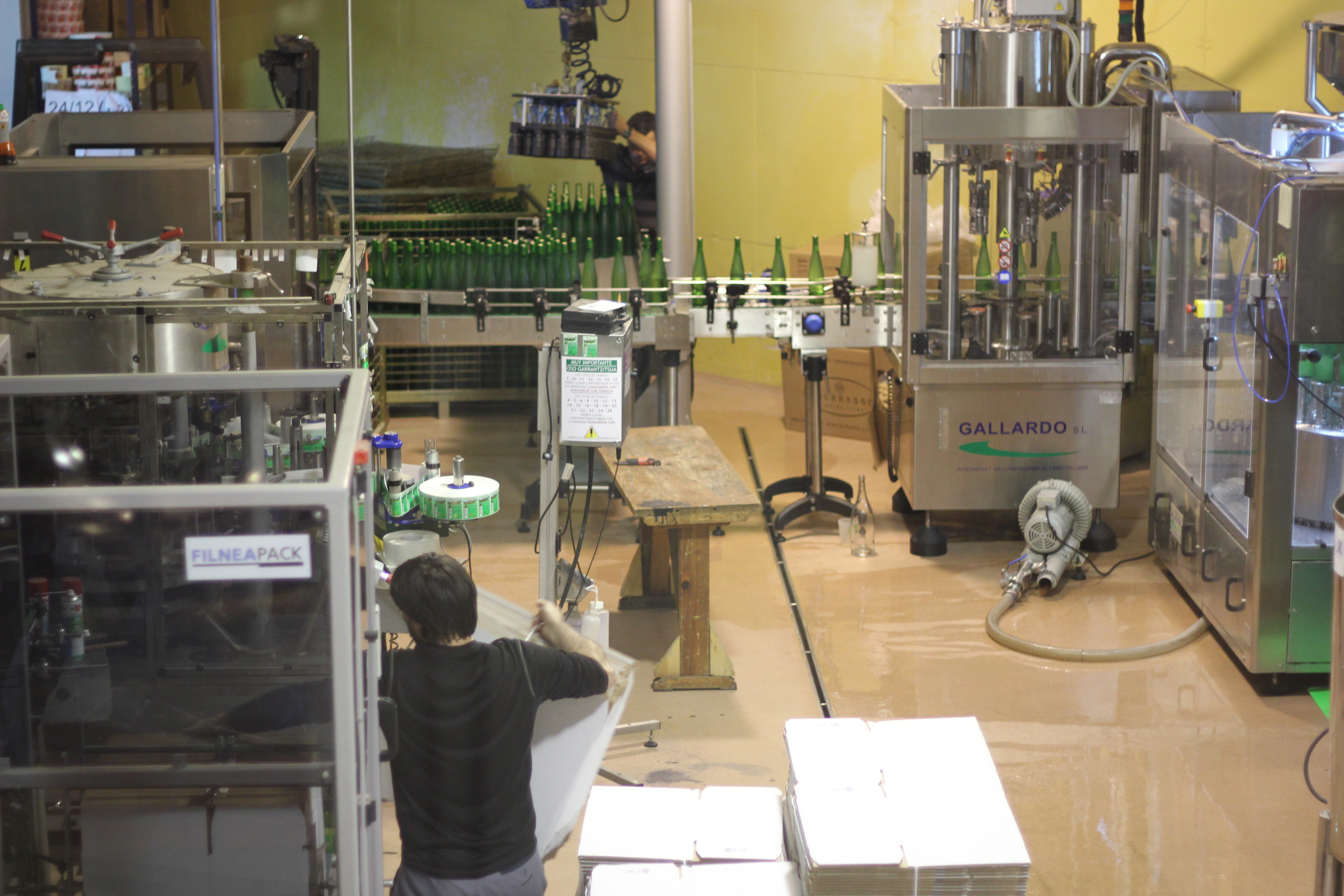 Här fylls flaskorna med ett syrligt och lite bubbligt vin som är så typiskt för den här trakten.