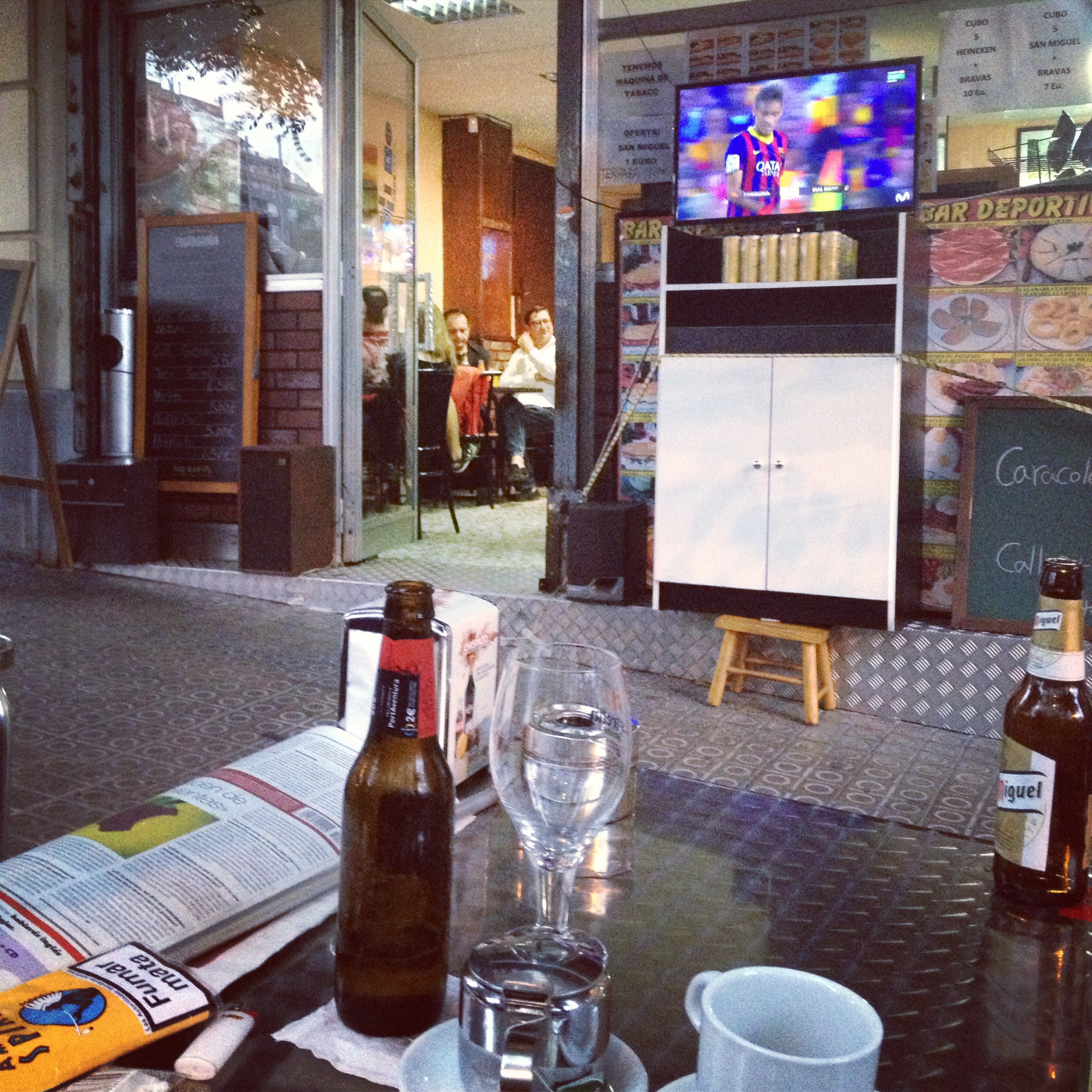 Och matchen Barca-Madrid i lördagseftermiddag. Nästan hela Barcelona satt framför teven och tittade på matchen. Vi hittade ett skönt ställe bredvid oss, där man kunde sitta ute på trottoaren och titta.