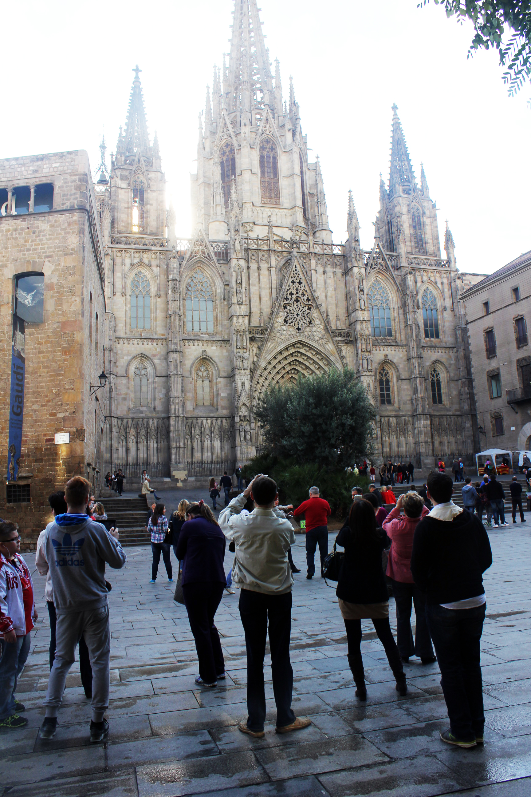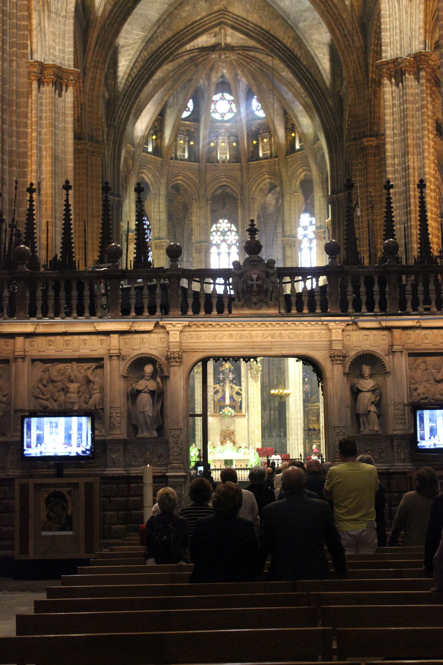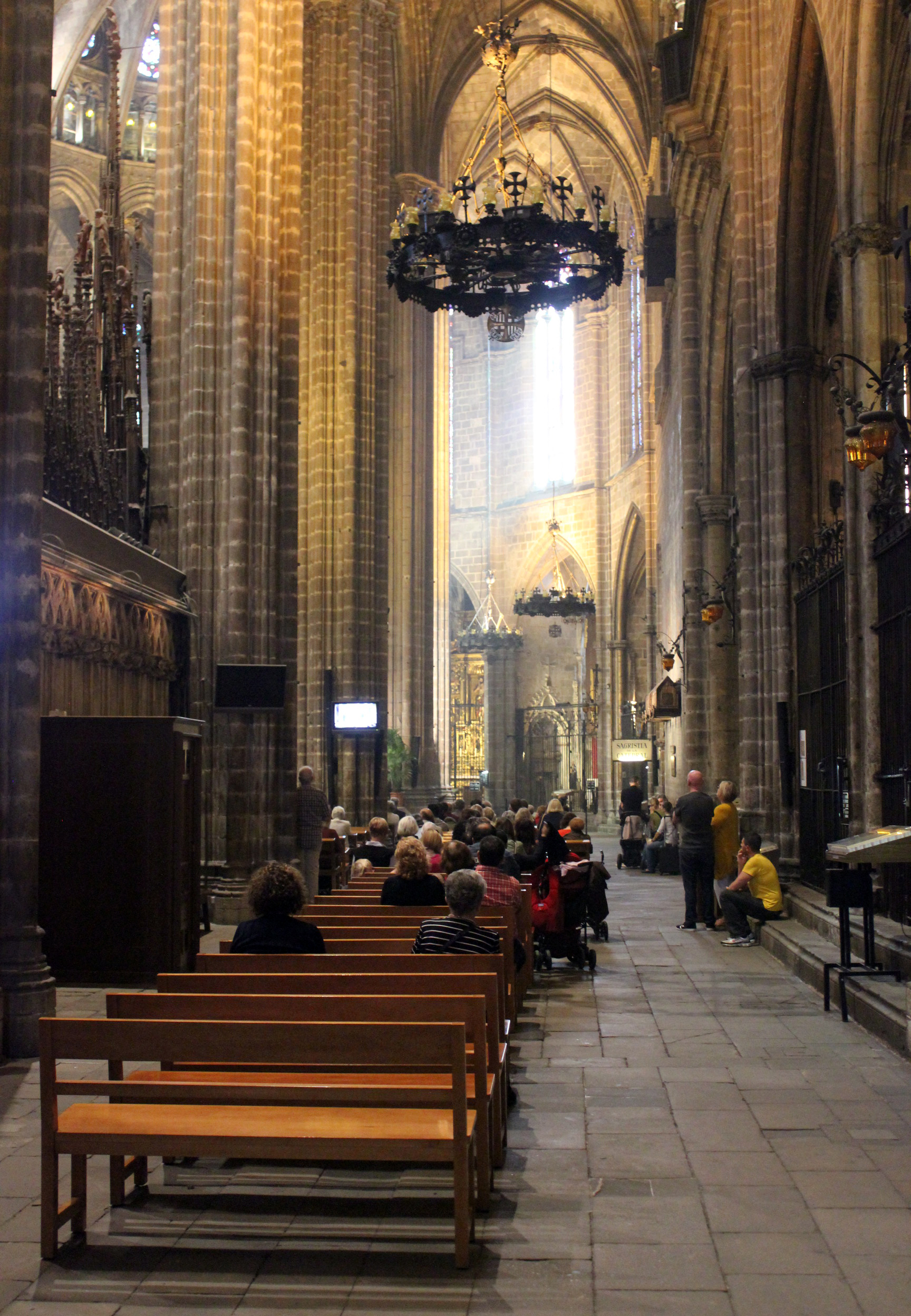 Dörren till Barcelonas katedral var öppen, så efter morgonfikat gick jag dit in och satte mig en stund. Jag tycker om gamla kyrkor. Det finns så mycket historia där inne och rymd, rum för alla möjliga känslor.