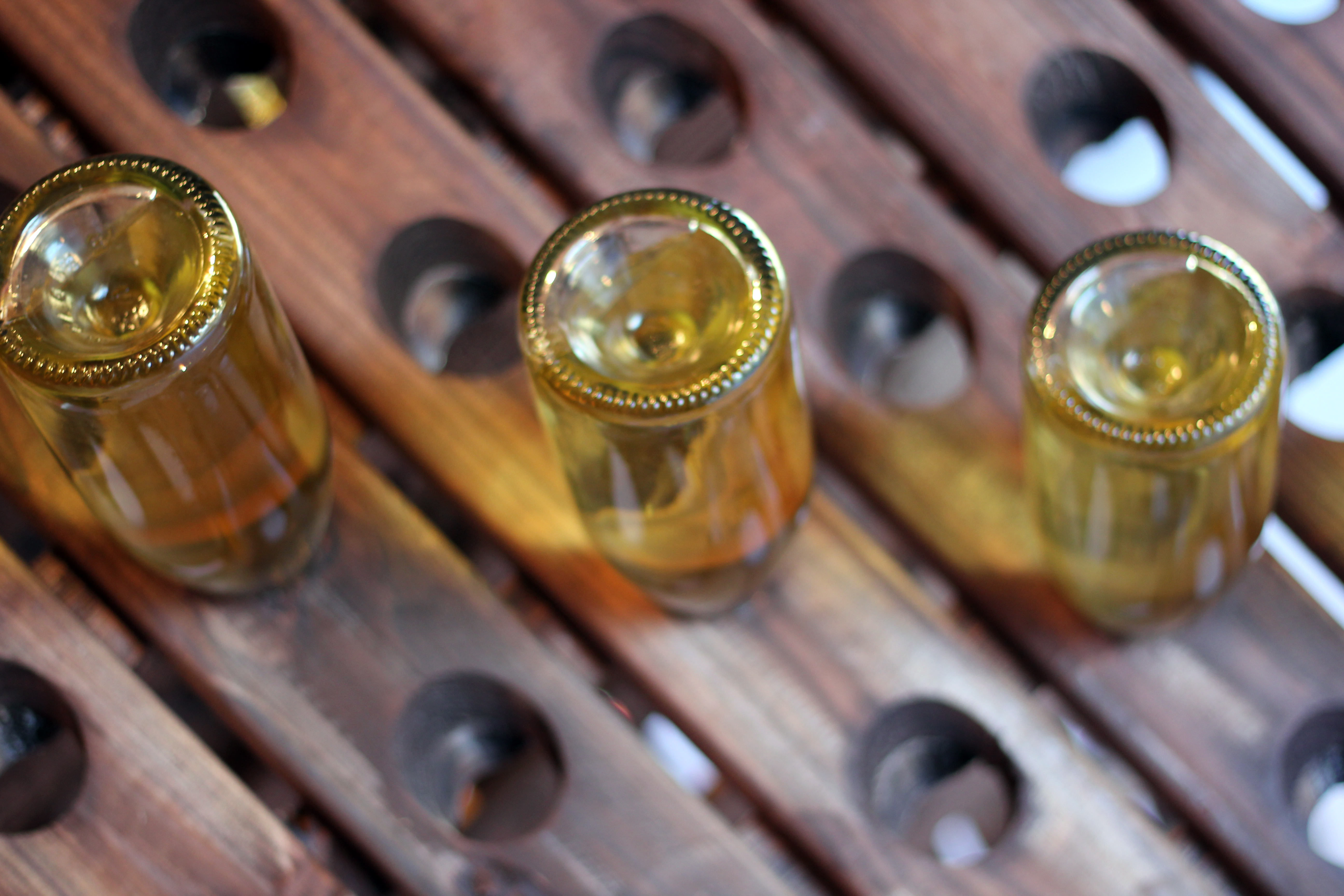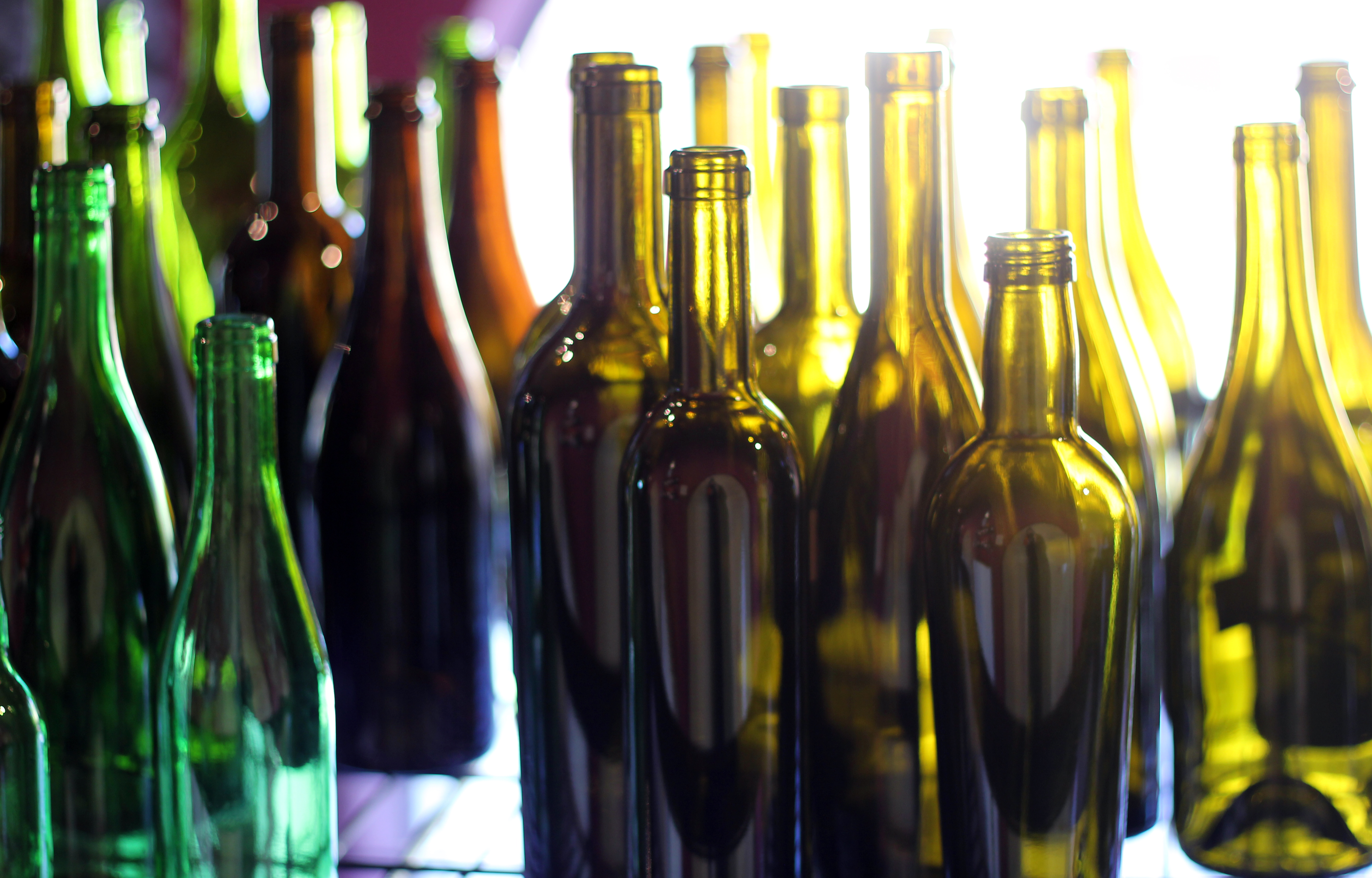 och de olika flaskornas färg och storlek.