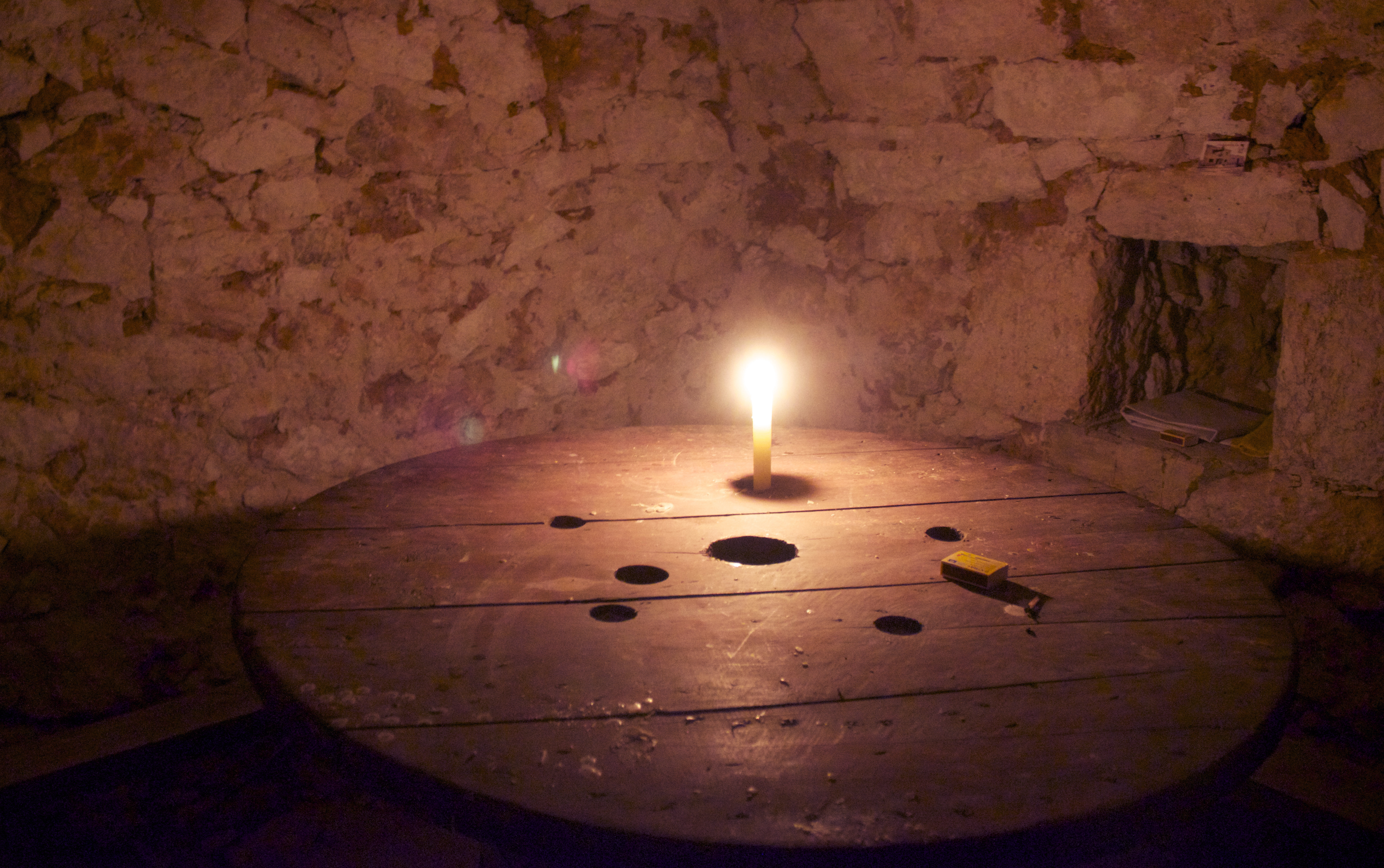 Många vingliga trappsteg ner i mörkret endast upplyst av stearinljus kom vi ner till ett litet rum