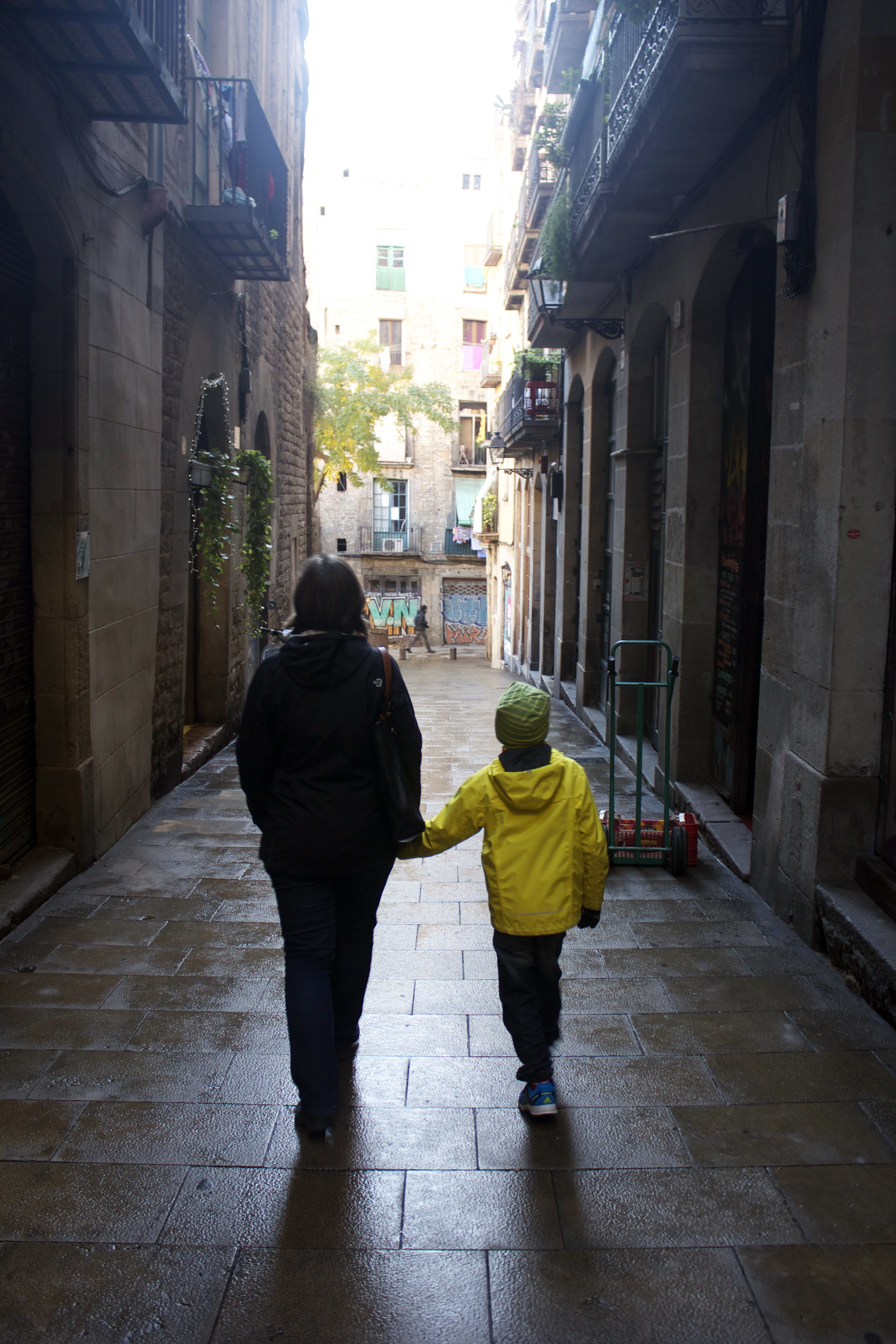 och vandrade på de smala och slingriga gatorna ända ner till hamnen och Barceloneta.