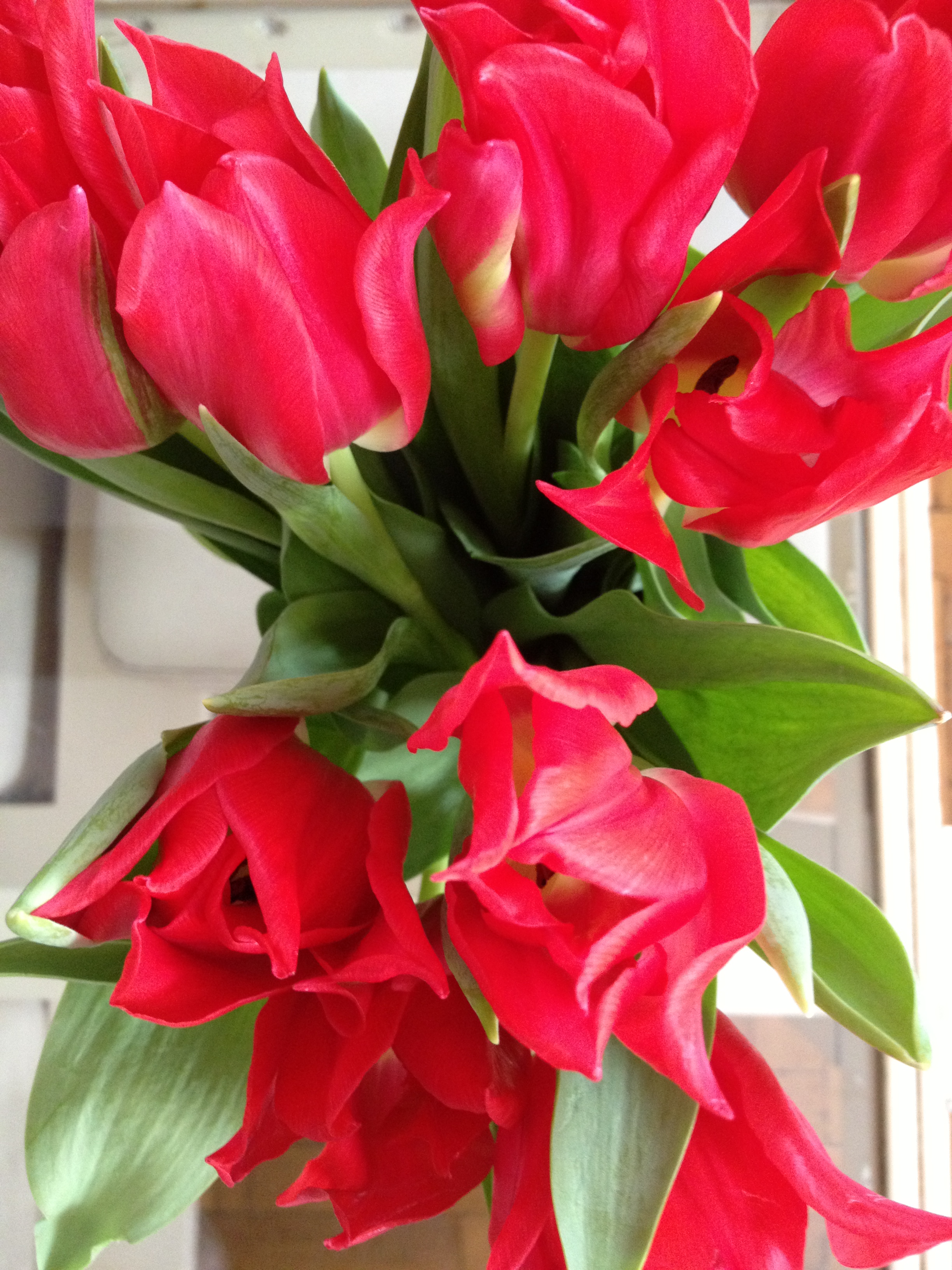 Det är kallt även här i Barcelona nu. Runt fem grader och fastän vi befinner oss ovanför nollstrecket så är kylan, med all sin fuktighet från havet, genomträngande. Så jag sitter och skriver i soffan med tjocka sockor på fötterna, en varm ylletröja på överkroppen, en filt virrad kring benen och med en tekopp i handen. Dessutom har jag plockat in vasen med röda tulpaner i vardagsrummet. Den ger mig hopp. Hopp om att våren gror någonstans.