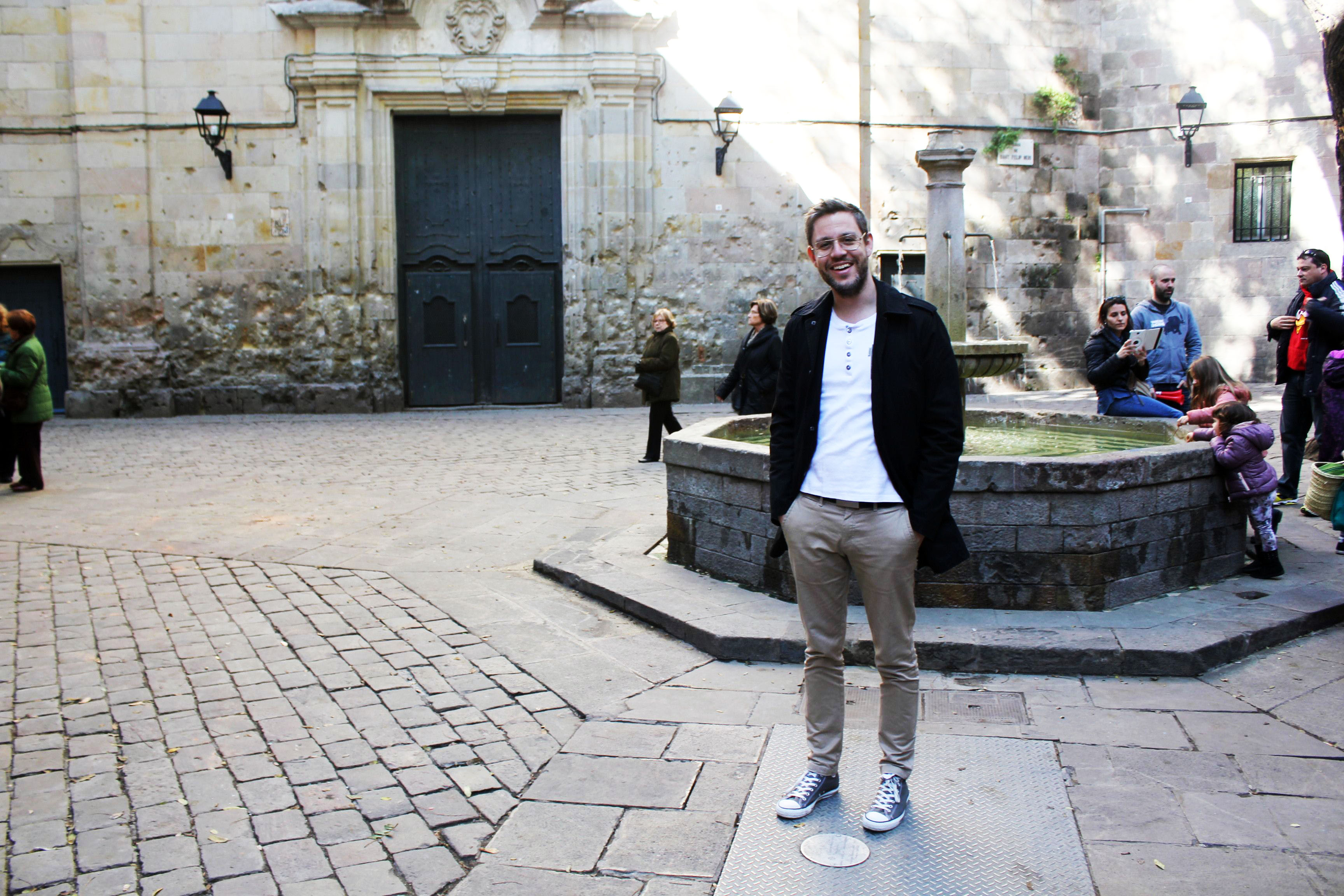 Jag tog honom med på en tur genom stan. Här är vi i El Born, där vi även åt lunch och prövade olika goda ostar.