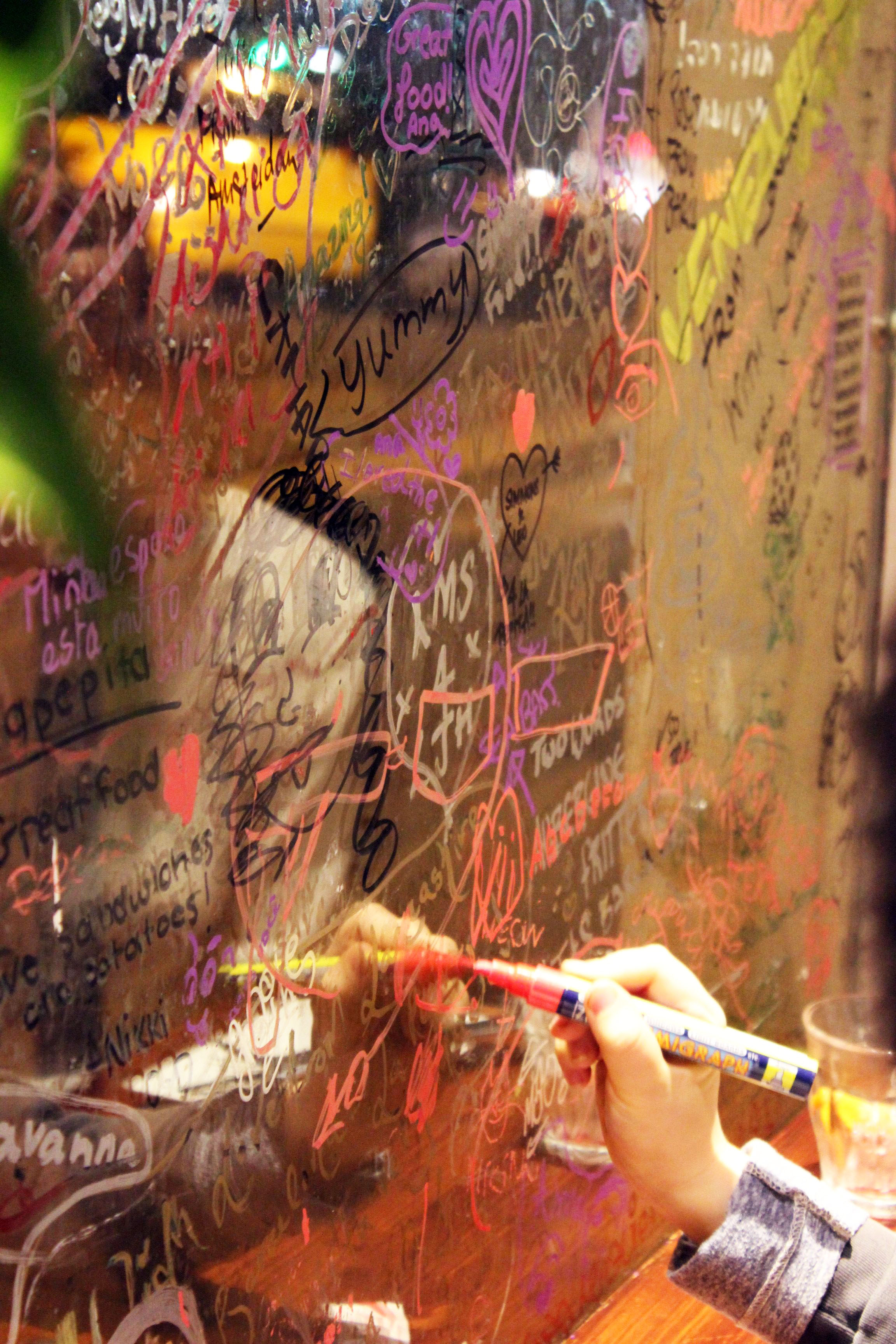 På restaurangens fönster får sedan alla gäster skriva vad de tycker om maten eller egentligen vad de vill.