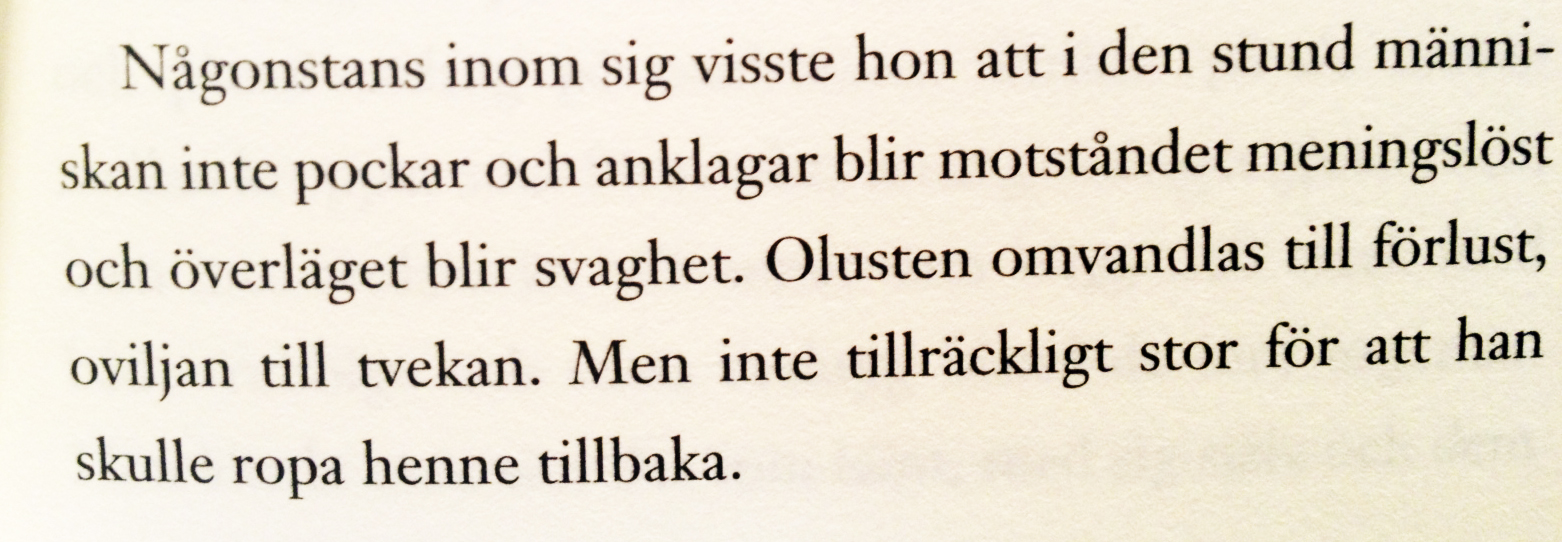Har ni någon gång som jag, drabbats av den STORA kärleken, som senare visar sig vara obesvarad? Läs då Lena Anderssons augustpristade bok Egenmäktigtförfarande -en roman om kärlek. För hon vet P-R-E-C-I-S hur det känns! In i varenda minsta detalj. In i varenda kärlekstörstande, sårade och ångestfyllda cell. Bäst beskriver hon med sina egna ord: