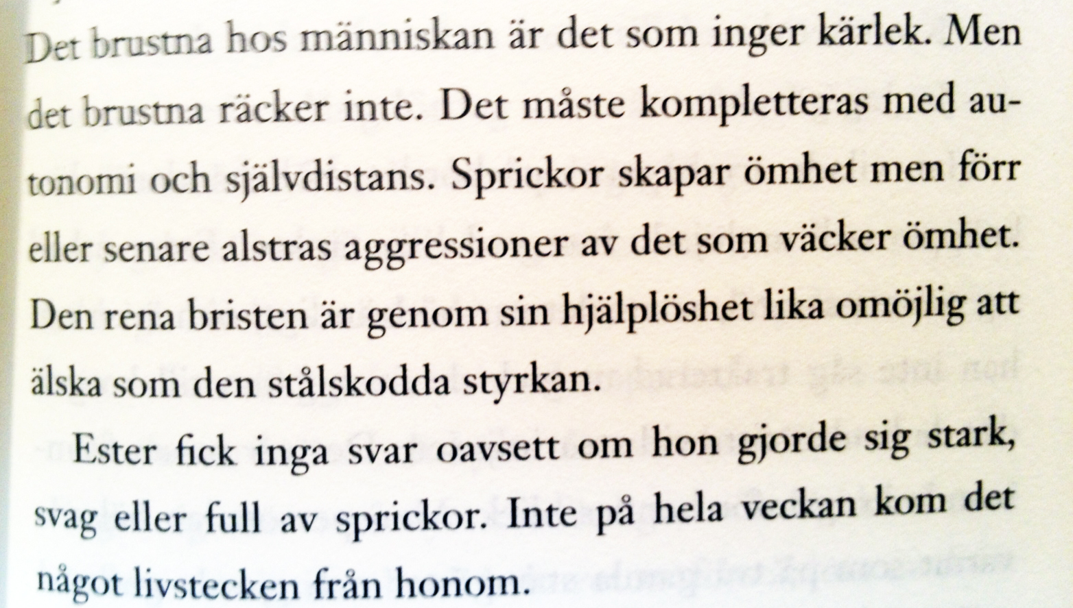 Det gör mig ledsen att tänka på det, men den här boken gör mig glad. Eller glad är kanske inte det rätta ordet, utan stark! Boken fyller mig med styrka – mitt i allt mörker.