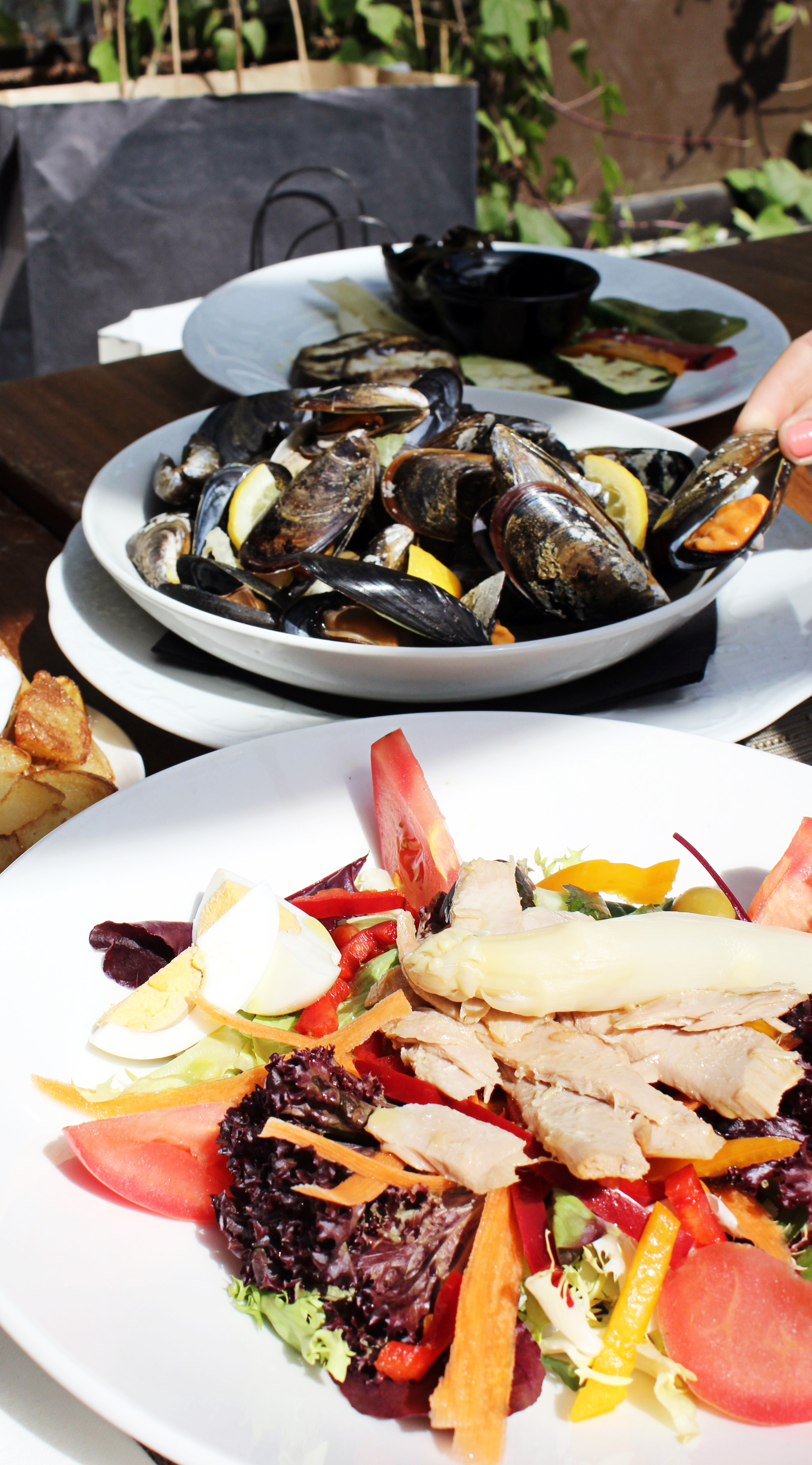 och åt en lunch. Ångkokta müsslor, tonfisksallad och annat gott.