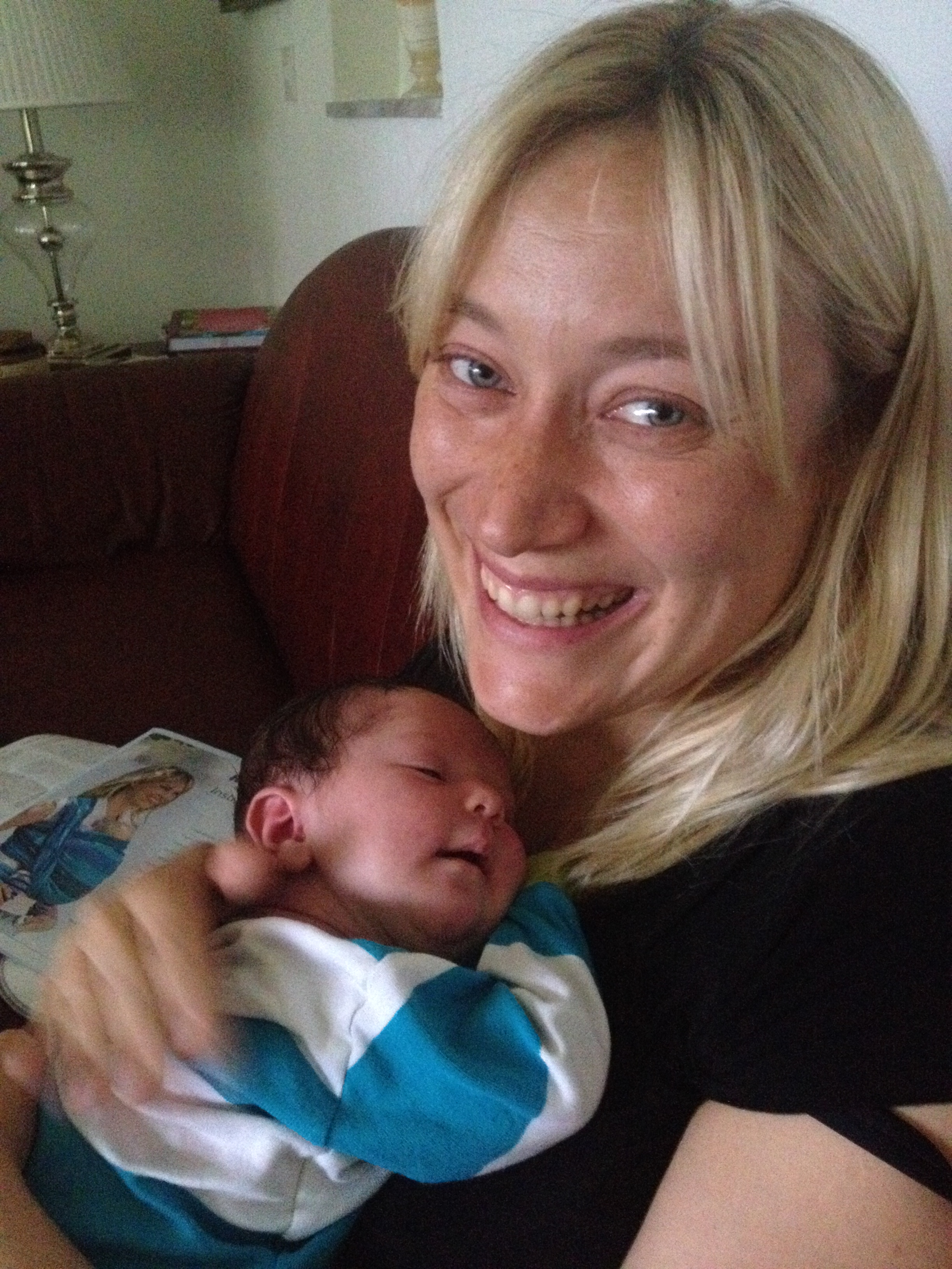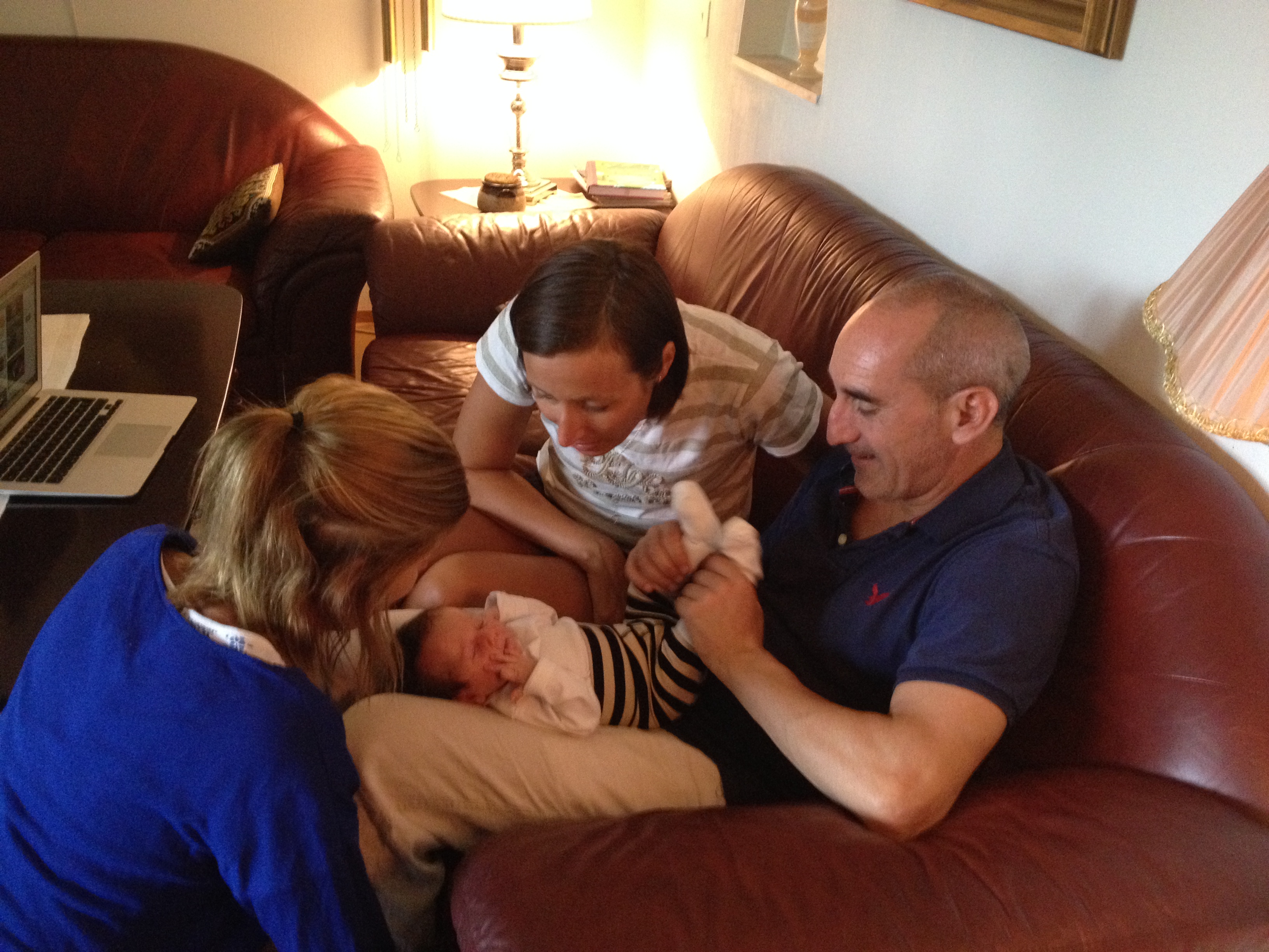 Bebisexperter på besök. Johanna och Åsa tillsammans med Edu och Juni.