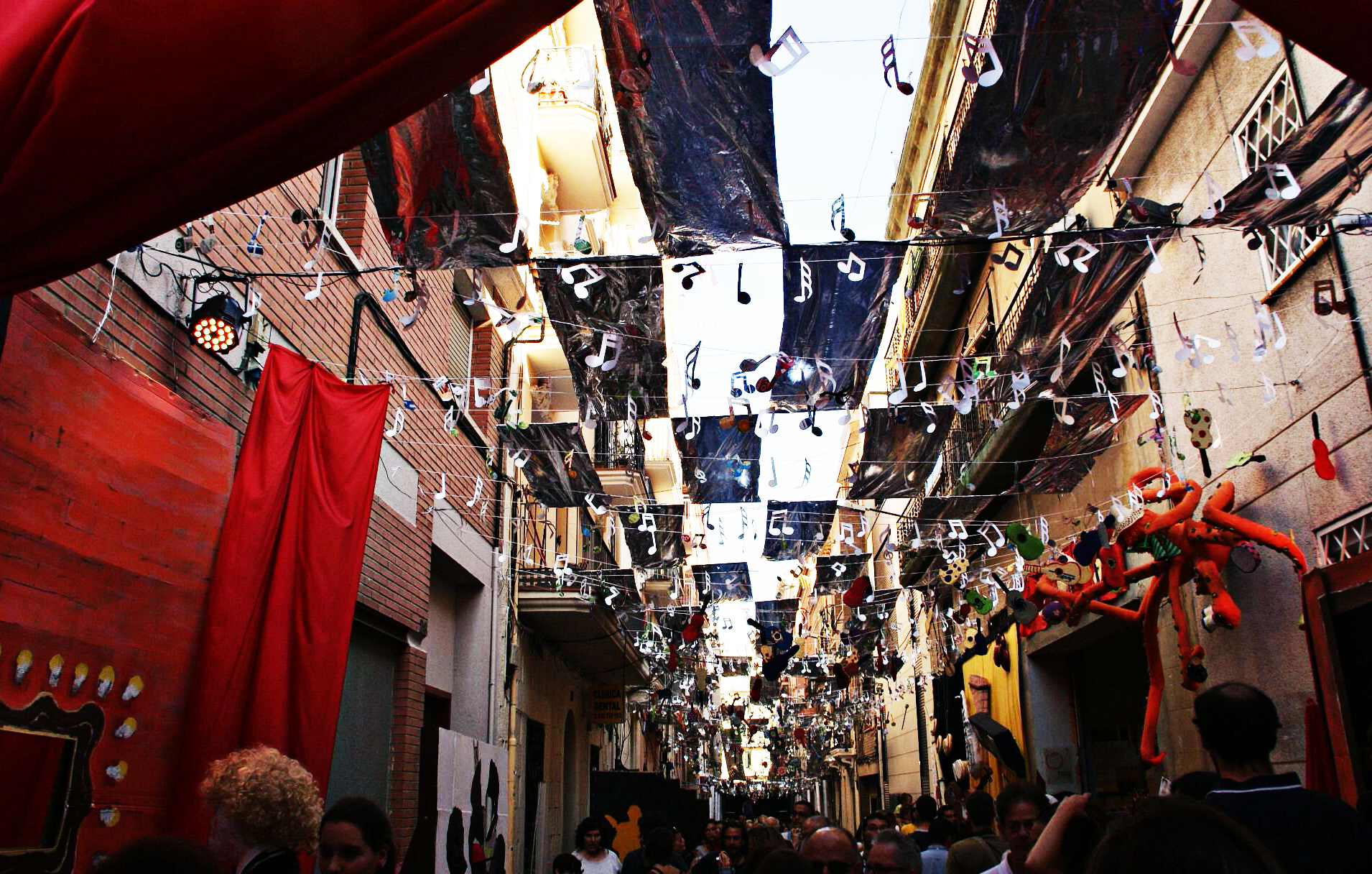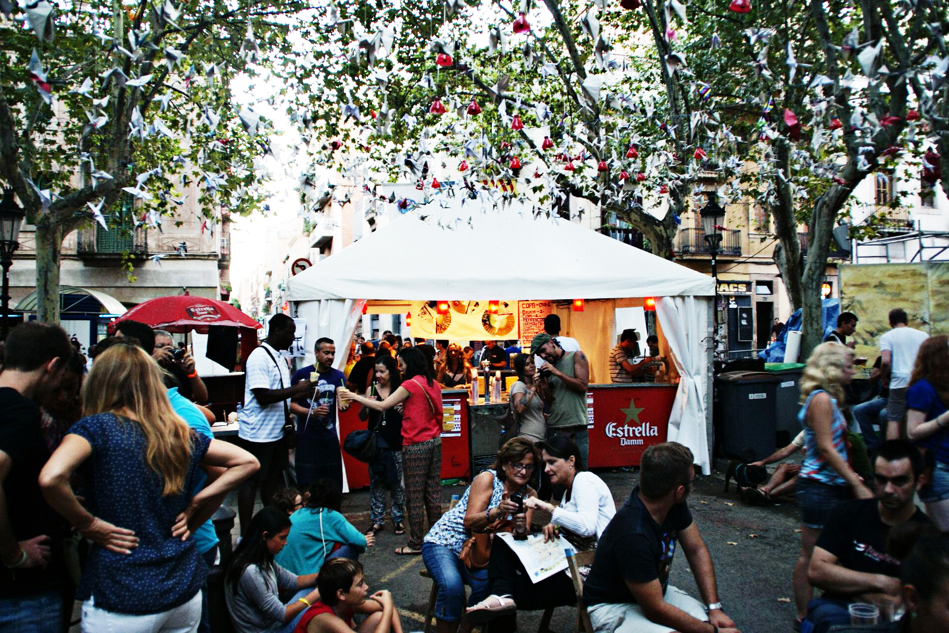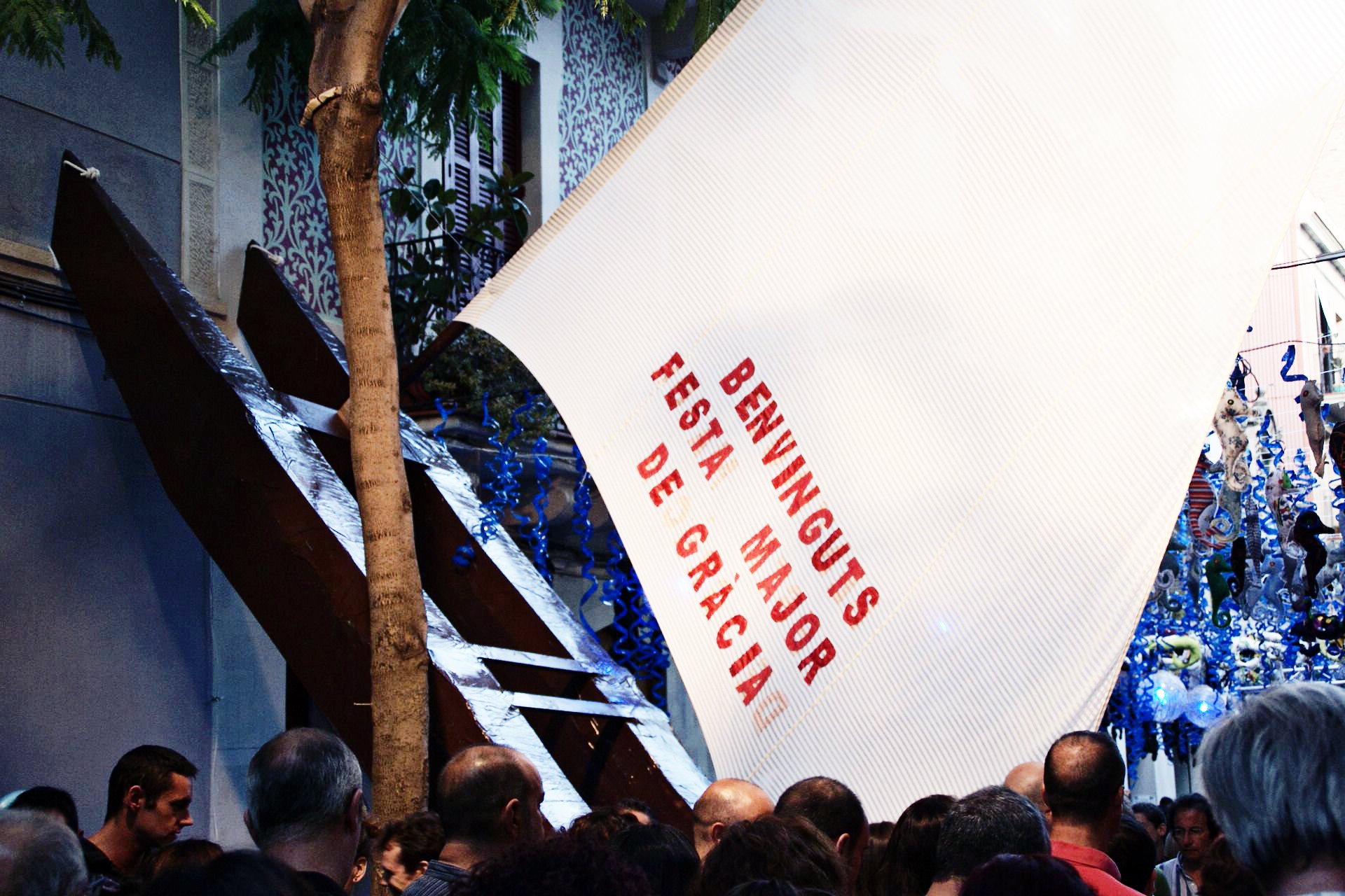 Framåt kvällen. Från gatorna längre in i Gracia hörs ljudet av trummor, tjutande mikrofoner och människosorl. Ja, hela kvarteret sprudlar av liv. Det är ju dags för Festa Major de Gracia igen. Områdets stora festival som hålls varje år i augusti. I torsdags körde de igång och vi tog oss en titt. Jag älskar hur de dekorerar gatorna. Att man låter fantasin flöda hur vilt som helst.