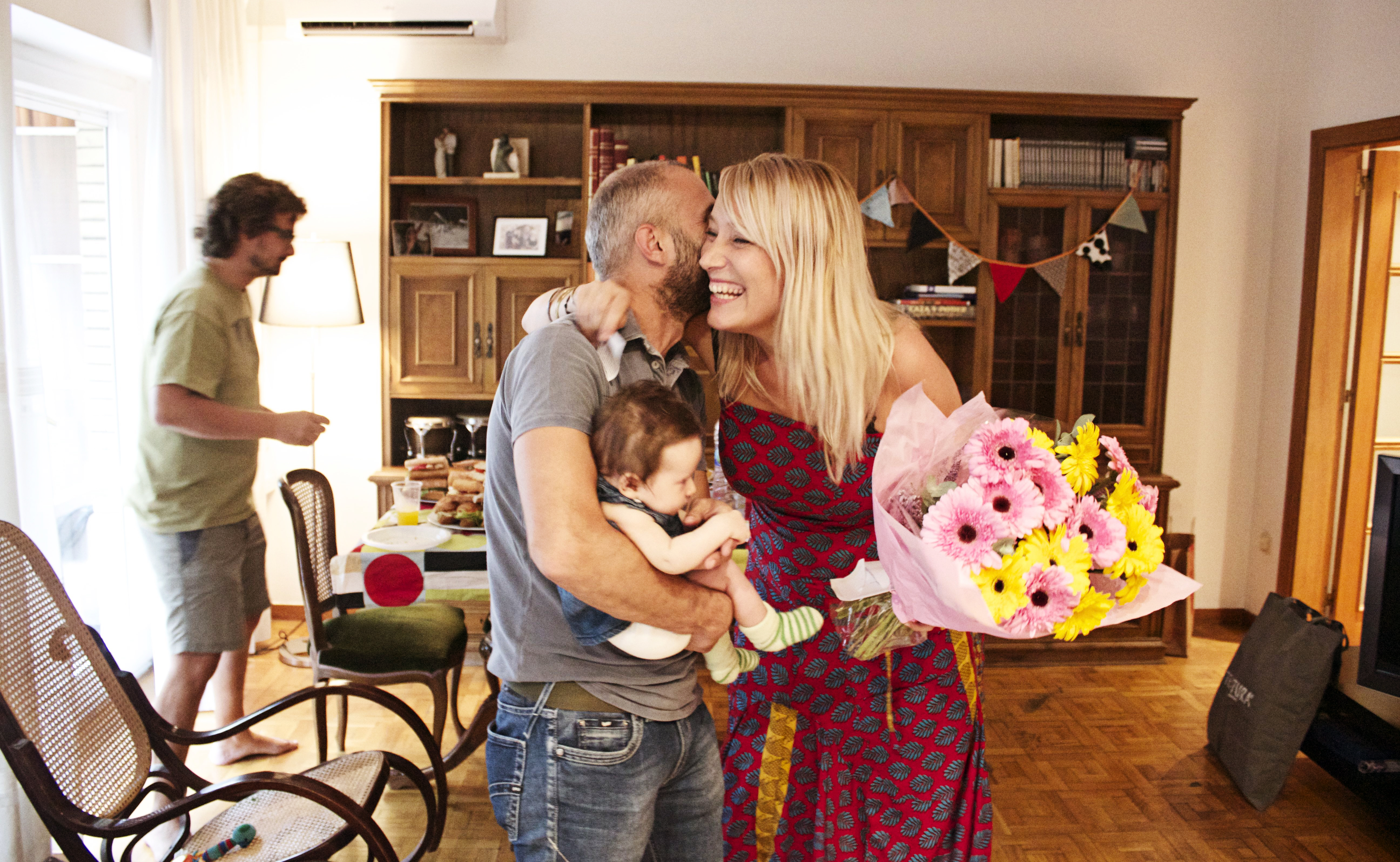 Jag blev så himla glad att så många kom. Här är Camilla från Brasilien och Grazia från Italien som jag lärde känna på spanska kursen fjol. Och i soffan sitter mina trevliga grannar och Grazias söta barn.
