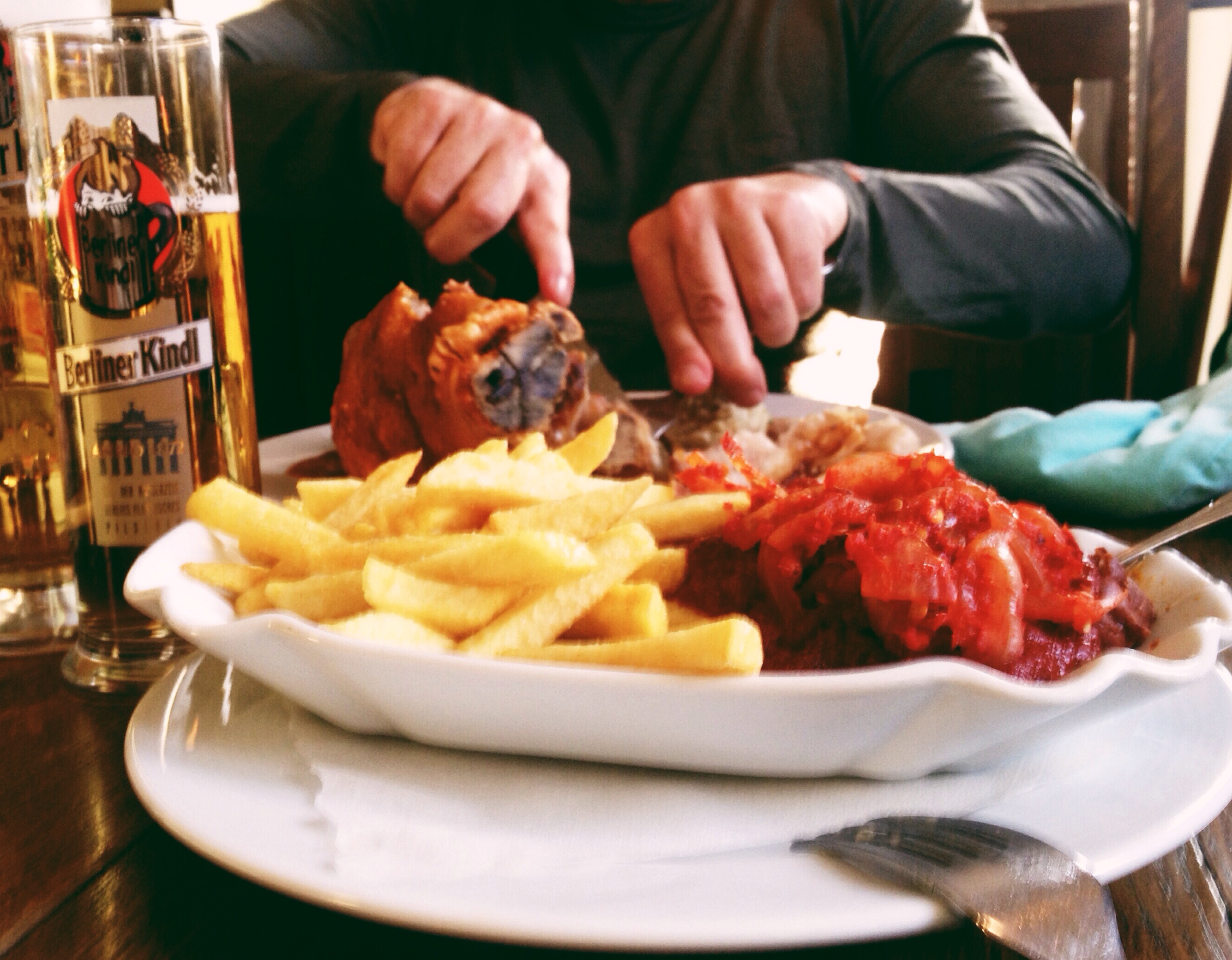 Vi har redan hunnit smaka på Berlins specialitet Currywurst! Och druckit god öl till.
