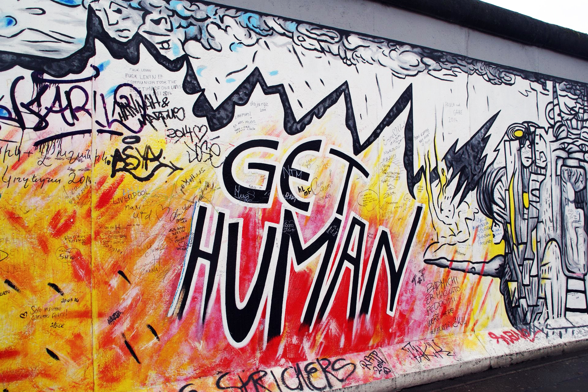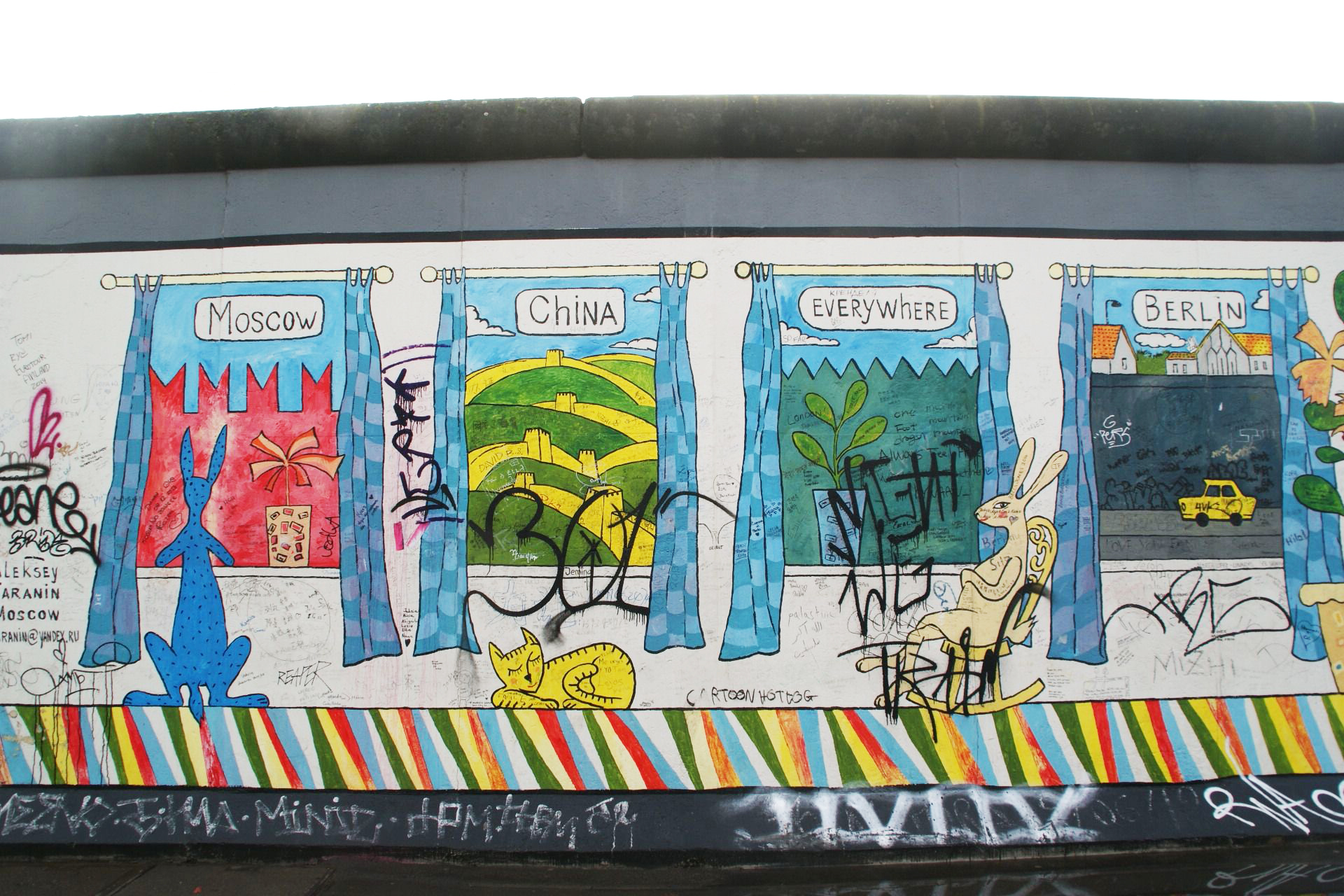 För att minnas historien har man låtit olika konstnärer måla olika saker på den gråa betongen. Så sammanlagt består East Gallery av 140 konstverk och