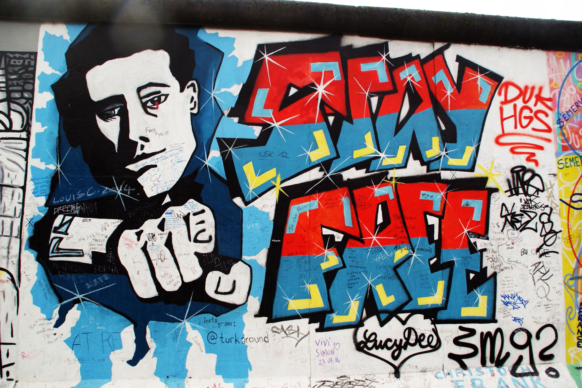 Jag gick längs muren och tittade och tänkte så mycket på den tiden, men även på alla andra murar som fortfarande finns i dag. Synliga, som osynliga. Och hur känns det att stå på andra sidan om dem?