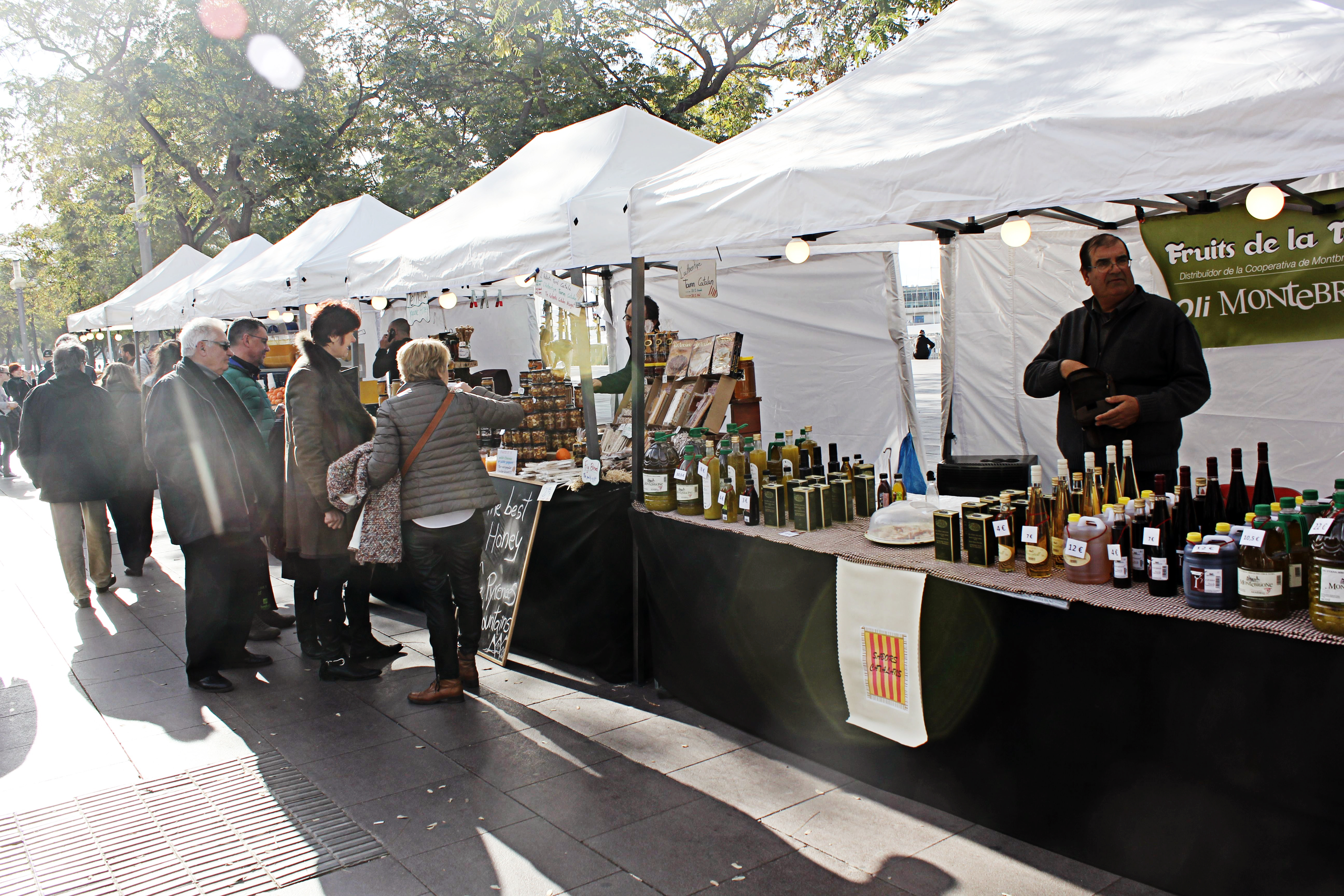 En matmarknad med allt gott som finns här i form av ostar, skinkor och korvar.