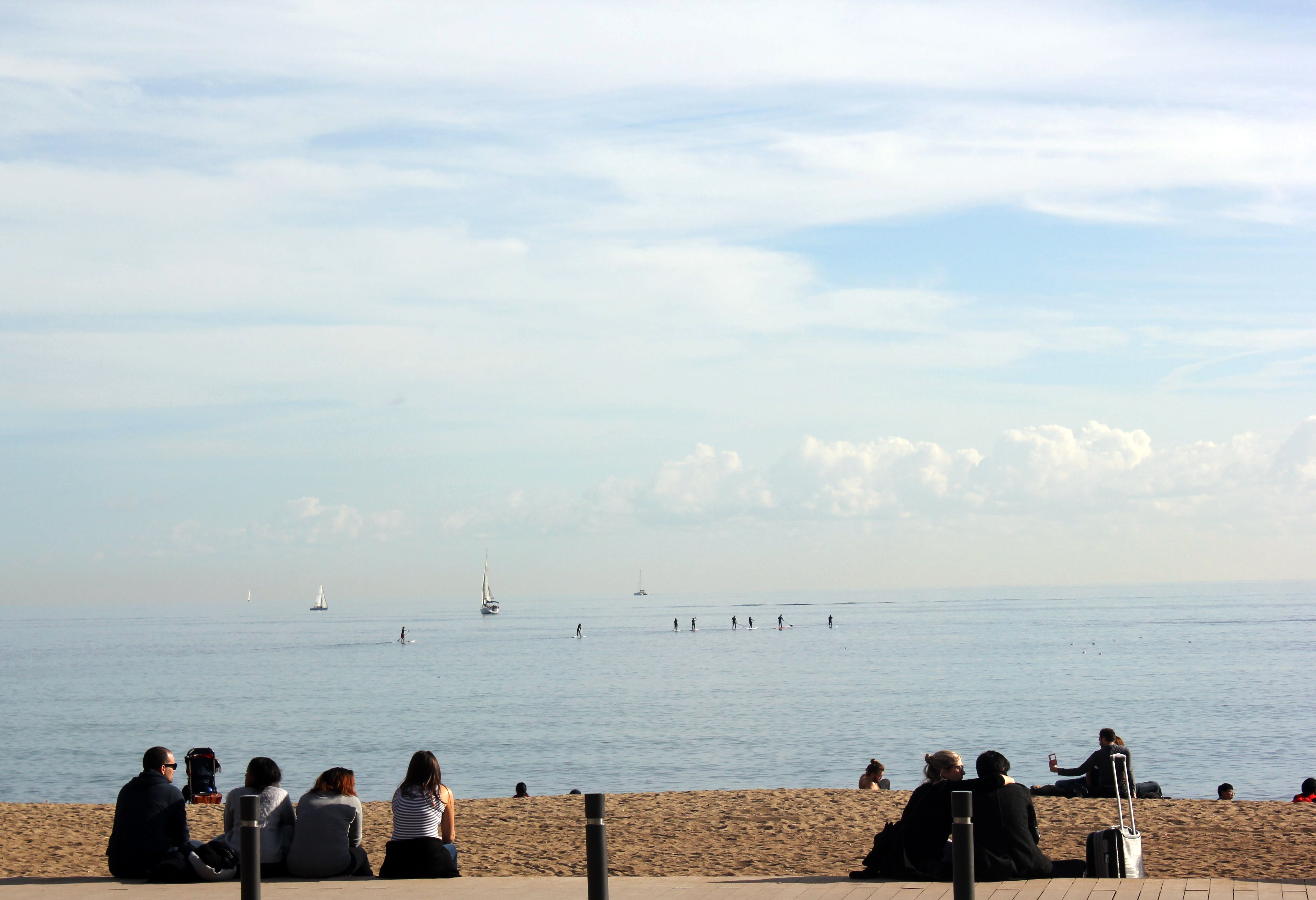 Det märks ändå att det även är vinter här i Barcelona. Människor kläder går i de mörka skalorna och det är inte lika mycket turister. Inte heller lika många som tar ett dopp i det blå.