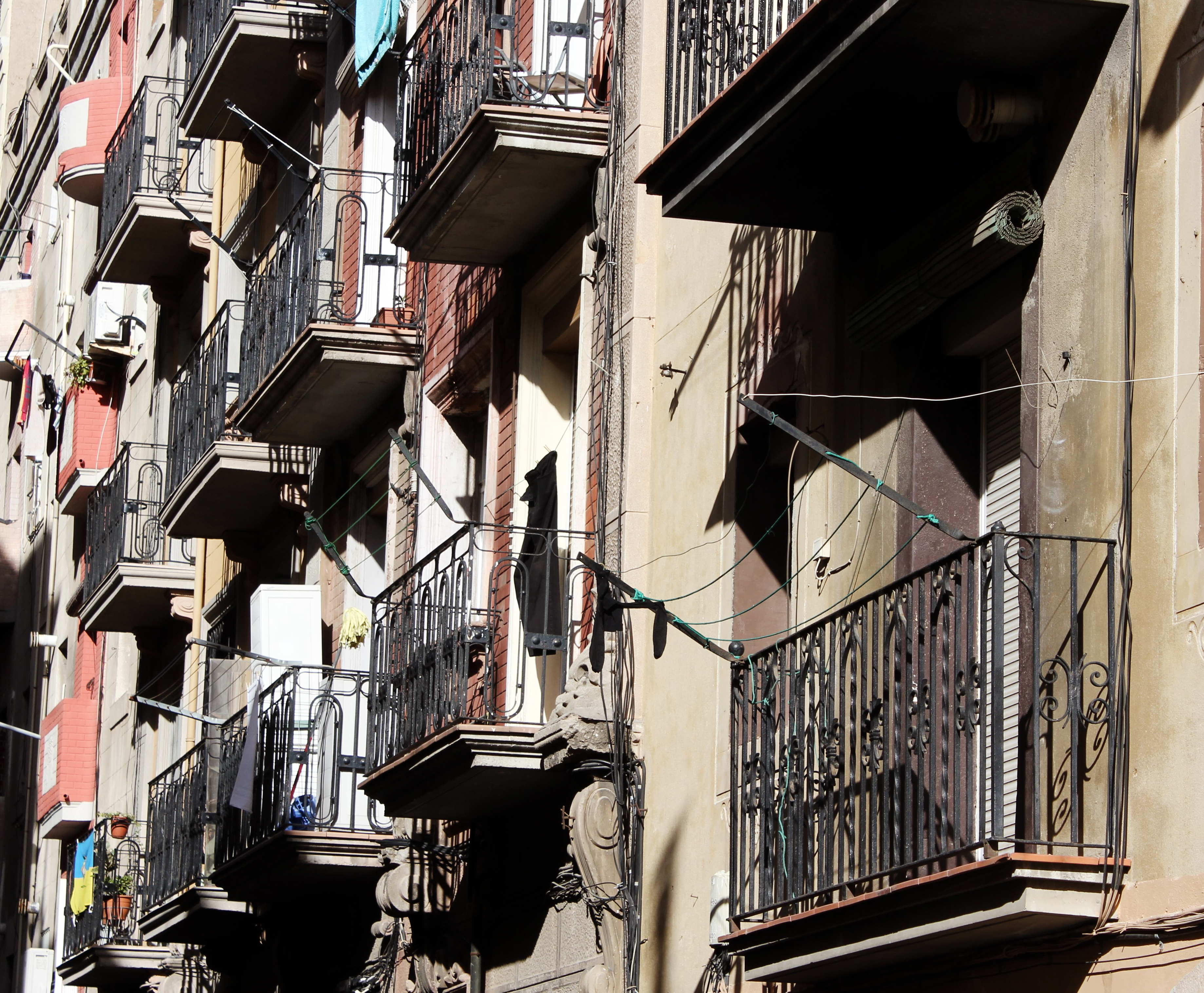 Sedan tyckte vi det var dags att gå hemåt för lunch och siesta. Först förbi Barcelonetas alla balkonger.