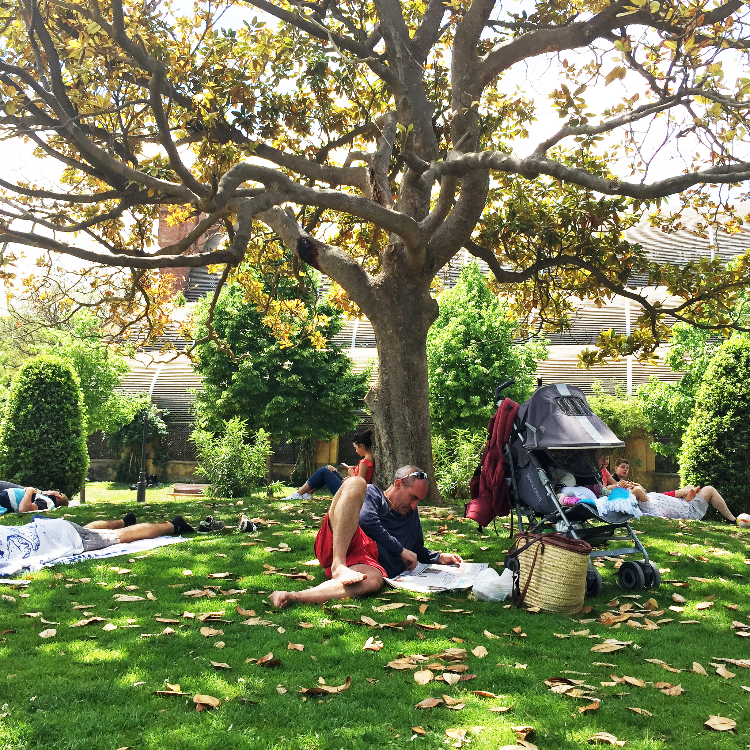 6. Jag älskar parker. Att vara på stranden är lite svårt just nu med all sand som Juni vill sätta i munnen, den gassande solen och ingen skugga. Men parker med vackra träd och gräsplättar man kan krypa runt på. Finns det något bättre?