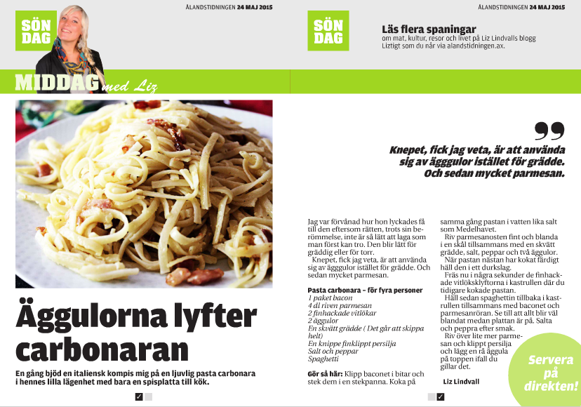 Jag vet inte om ni på Åland redan har sett, men från om med några veckor tillbaka skriver jag om mat för Ålandstidningen i deras nya söndagstidning. Här kan ni läsa den gratis denna vecka.