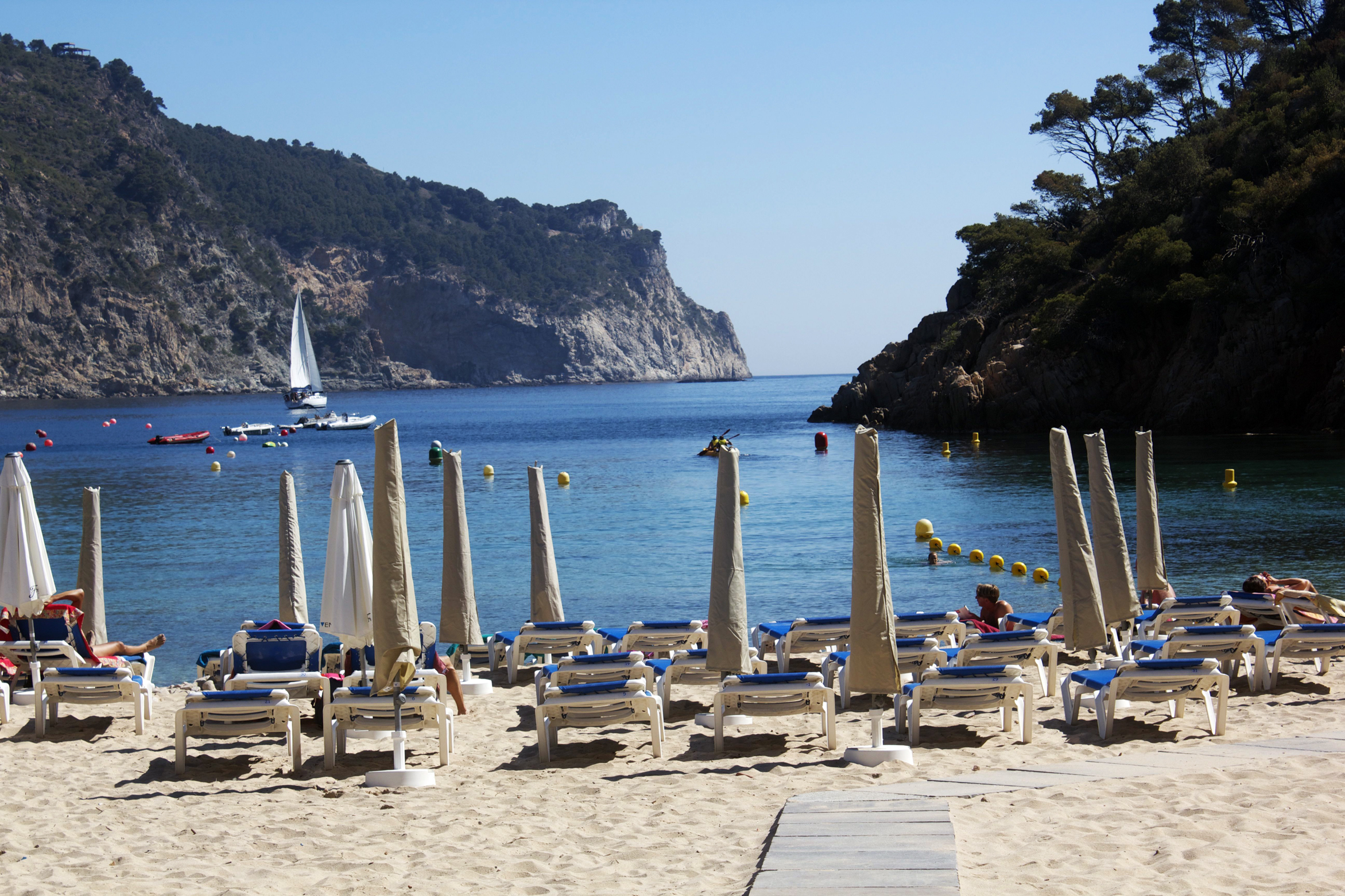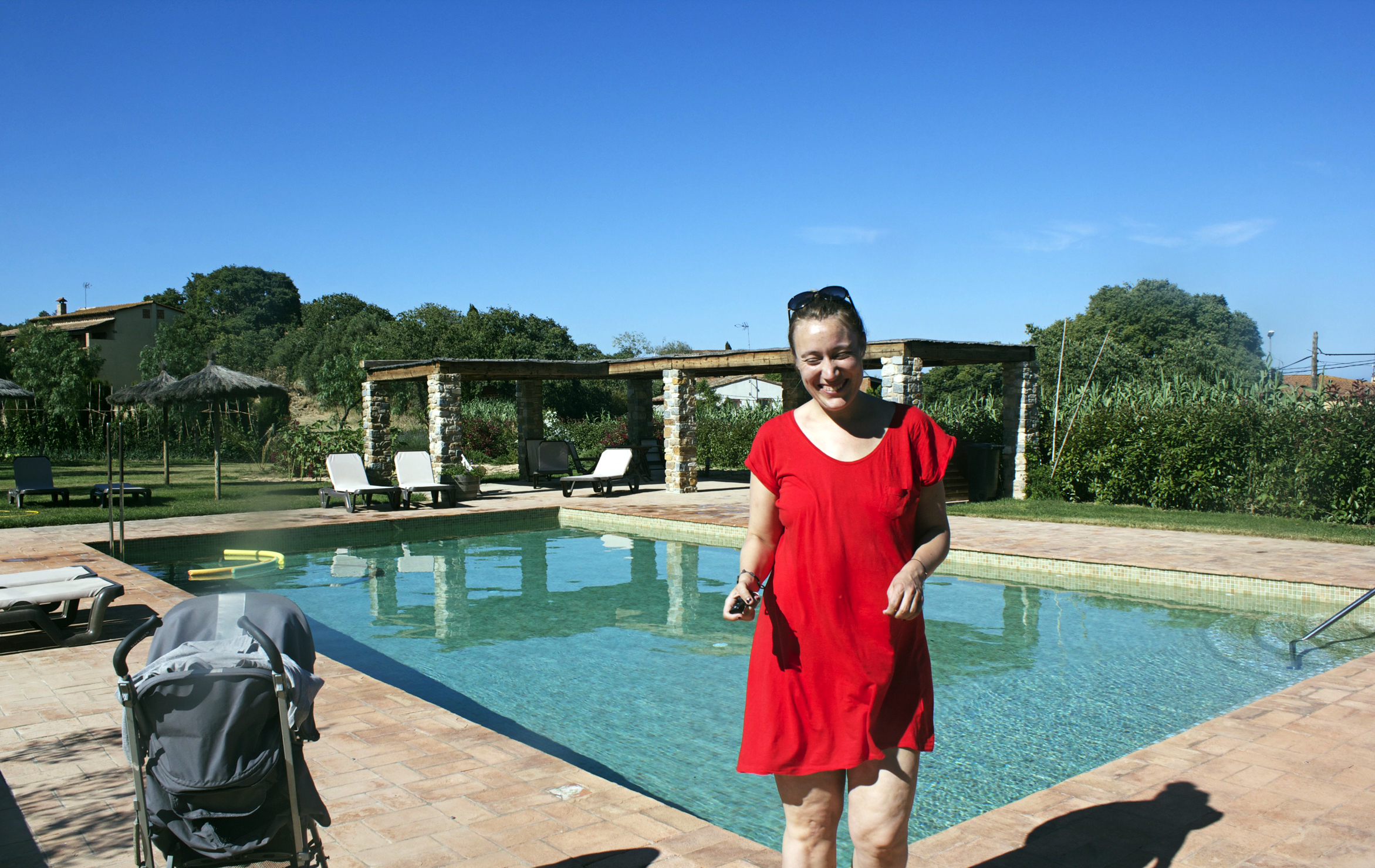 Nu är det högsommar och luften är så varm så den nästan bränns. Vi åker ner till stranden Aiguablava i Begur. Det doftar solkräm överallt och varm hy. Vattnet är fortfarande kallt men jag tar ett snabbt dopp. Sedan åker vi och äter en långlunch under parasollen på torget i byn Sant Feliu de Boada. Juni är 11 månader på dan och vi skrattar åt att det ser ut som hon tänker beställa på egen hand in mat från menyn. På kvällen när hon sover sitter jag ute i mörkret på terassen och lyssnar på ljudet av ingenting. Jag älskar att sitta så i linne utan att frysa och känna hur axlarna sjunker allt längre ner. När det är sommar finns något hoppfullt i luften som jag försöker ta in.