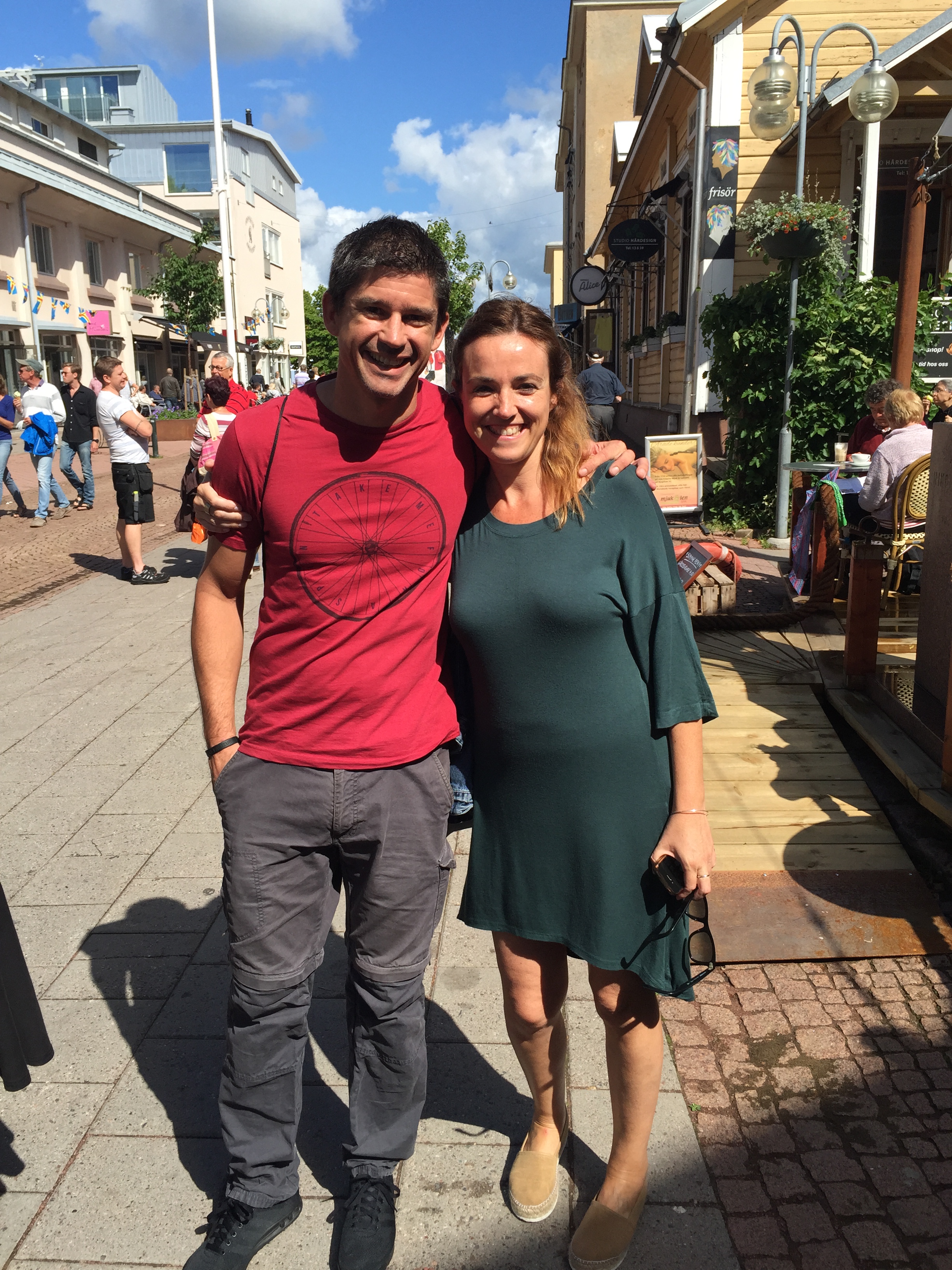 För bara några timmar senare, rätt så tidigt på fredagsmorgonen, stod jag med dessa två mitt på Torggatan. Helios och Noemi på Åland! Så overkligt och helt fantastiskt fint.
