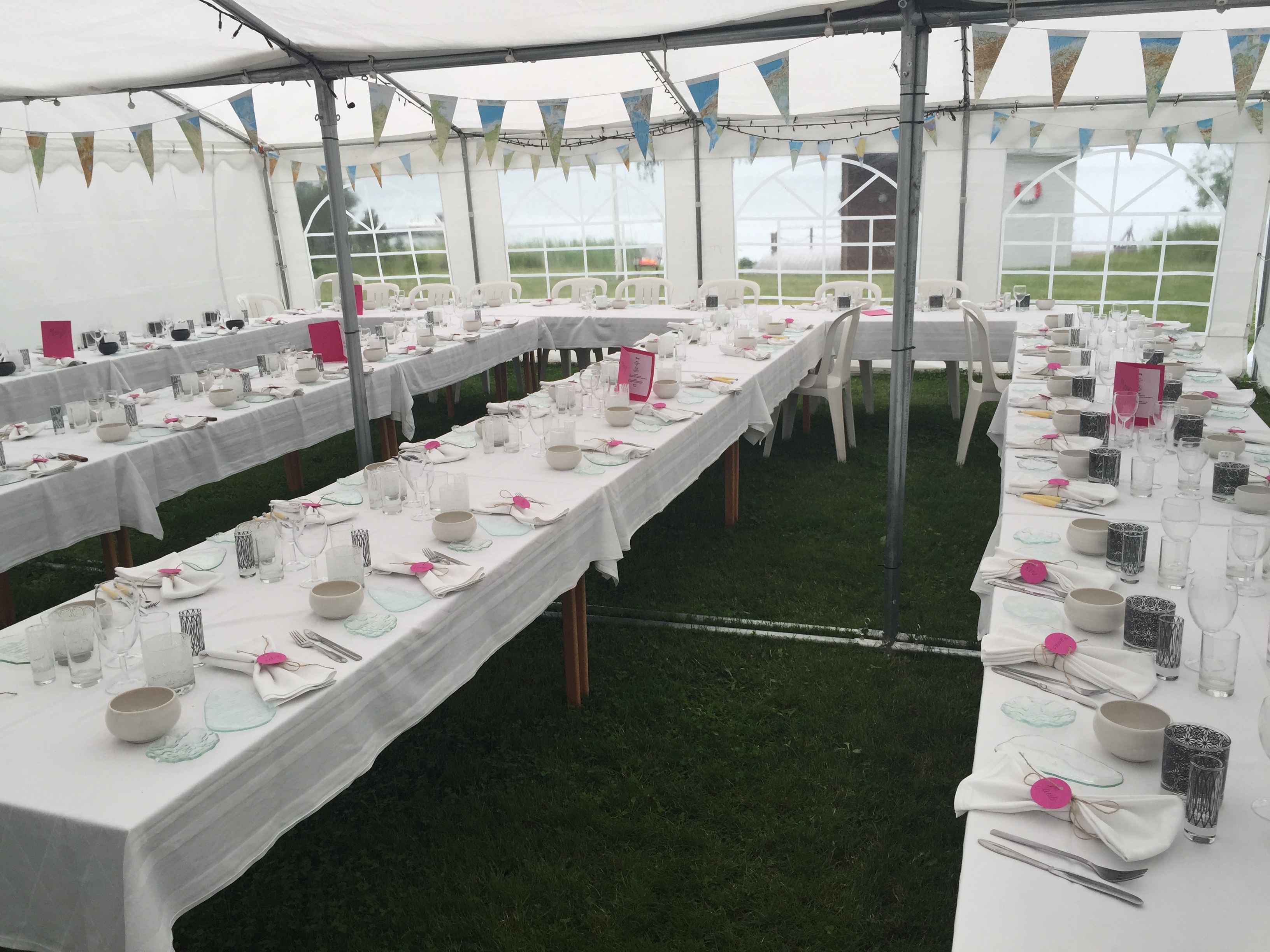 Vi dukar upp i tältet och så småningom börjar de mesta se klart ut.