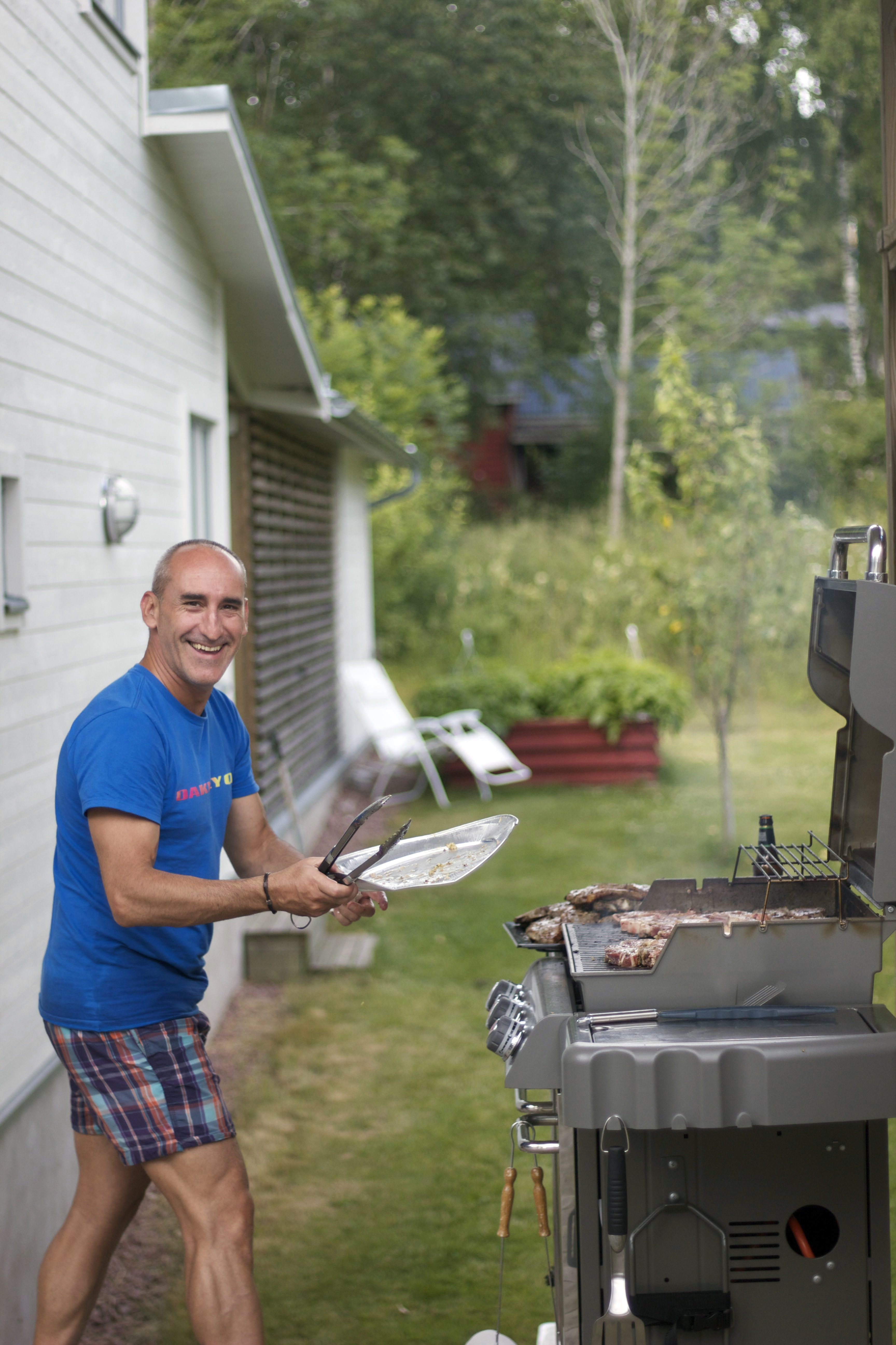 Här står Edu och förgrillar lammköttet som vi marinerat i citron, olja och örter