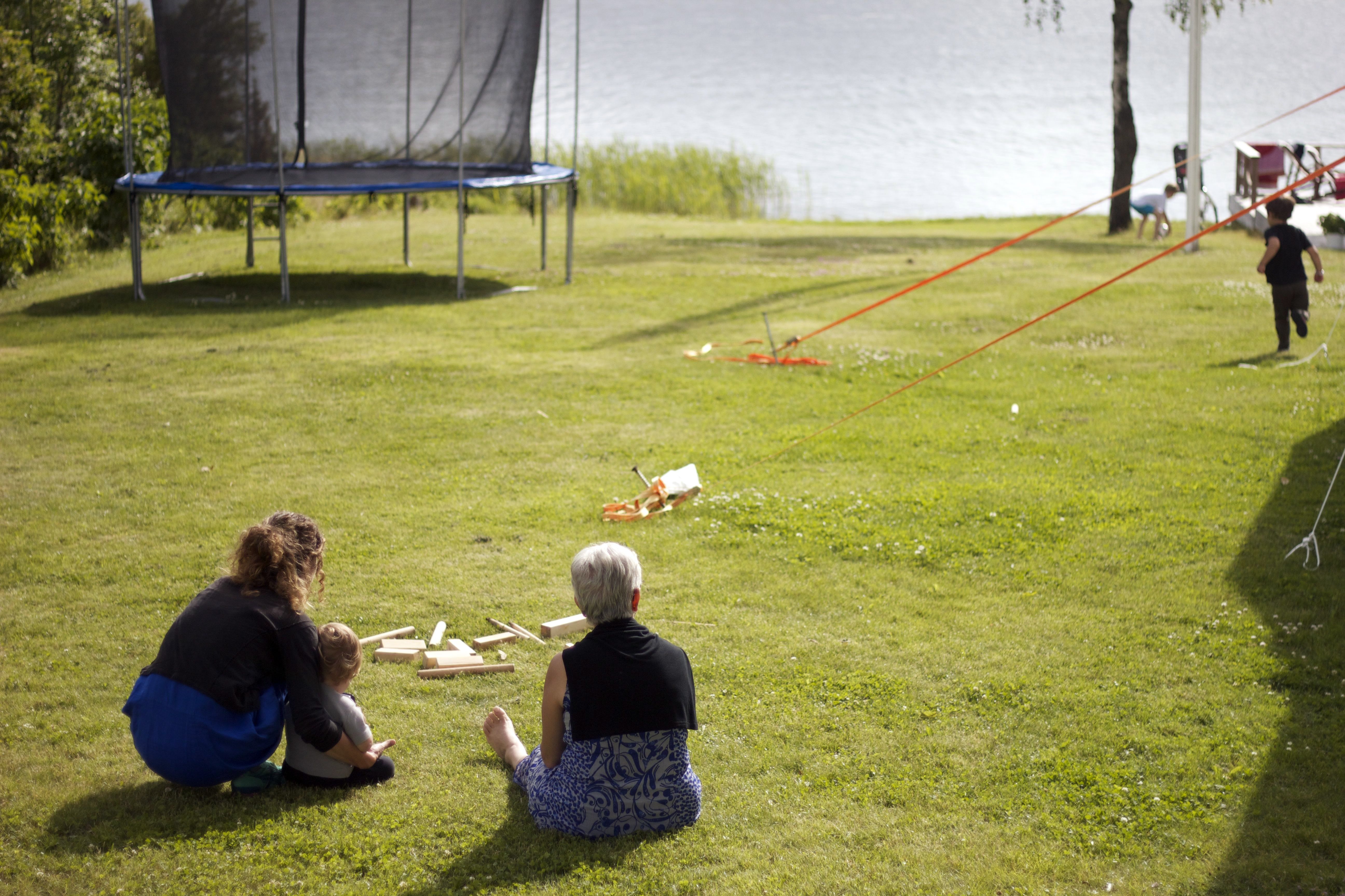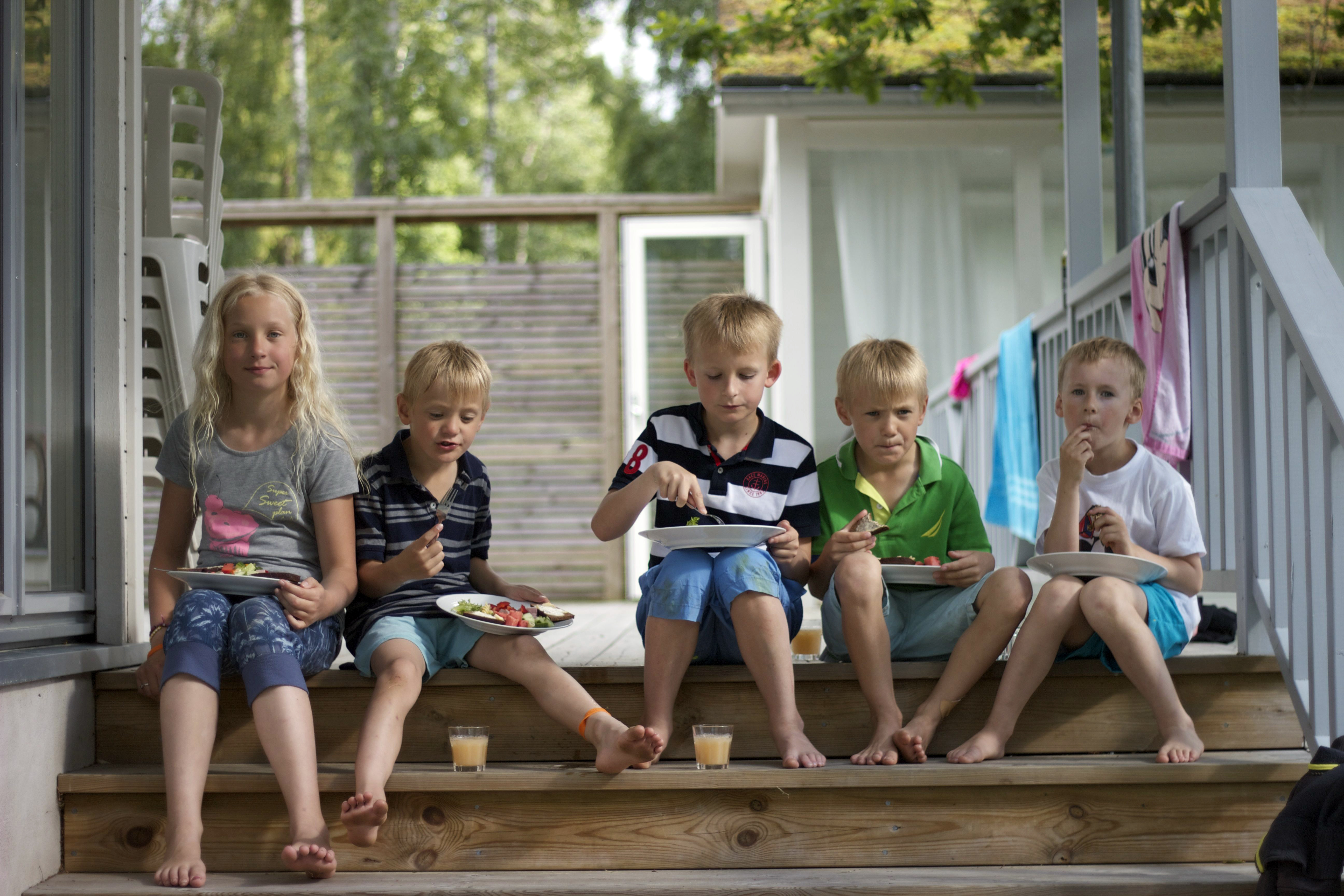 Barnen leker på gården och bastun står på för den som vill bada ta sig ett dopp i det blå.