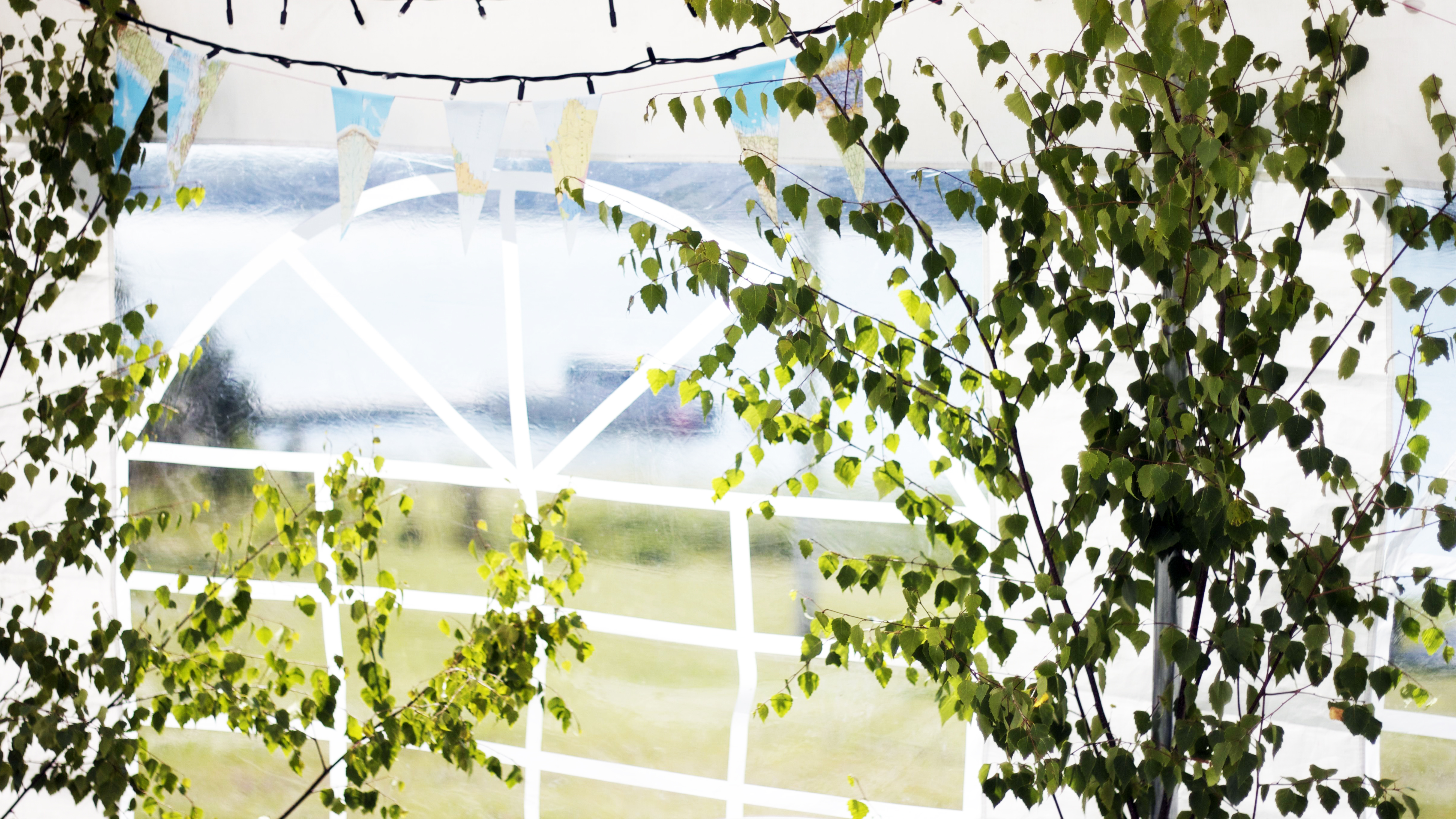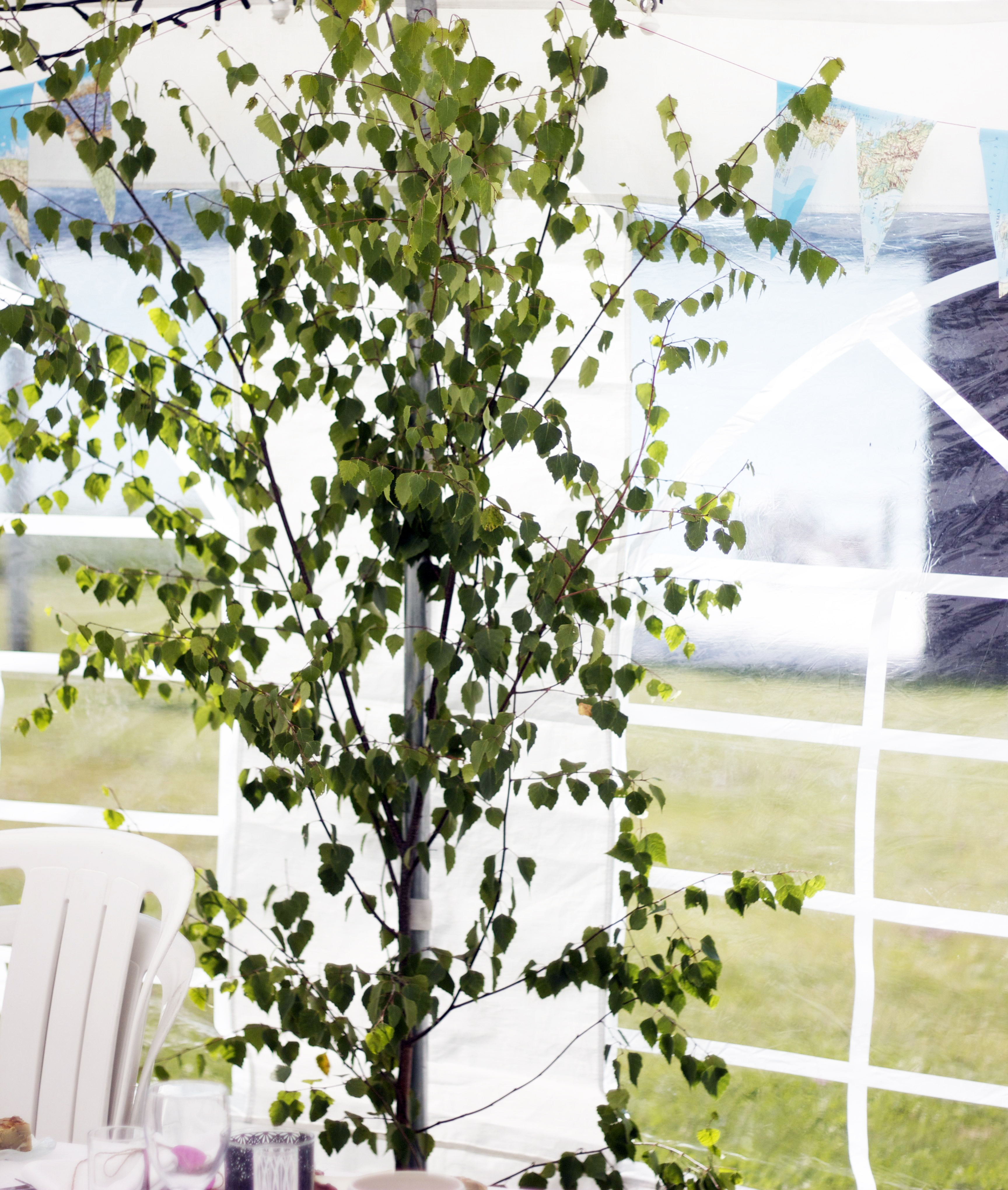 som nu sattes inuti tältet och runt om på gården. Lite som på midsommar men ändå inte.