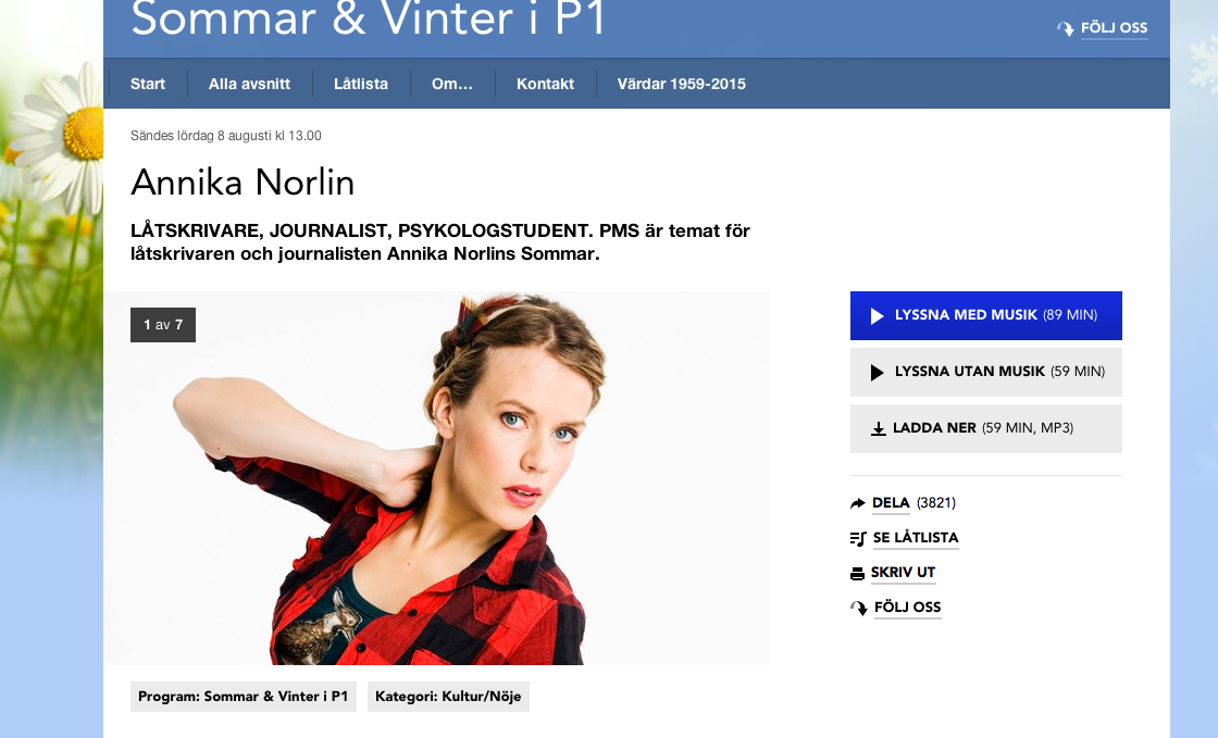 Och nu, nu tror jag banne mig att jag är kär i henne. Hennes sommarprat om Pms som sändes den 8 augusti är så bra och så viktigt. Snälla ni alla som mår dåligt före mens eller har någon i er närhet som gör det, lyssna på det. Här hittar ni det, med eller utan musik.