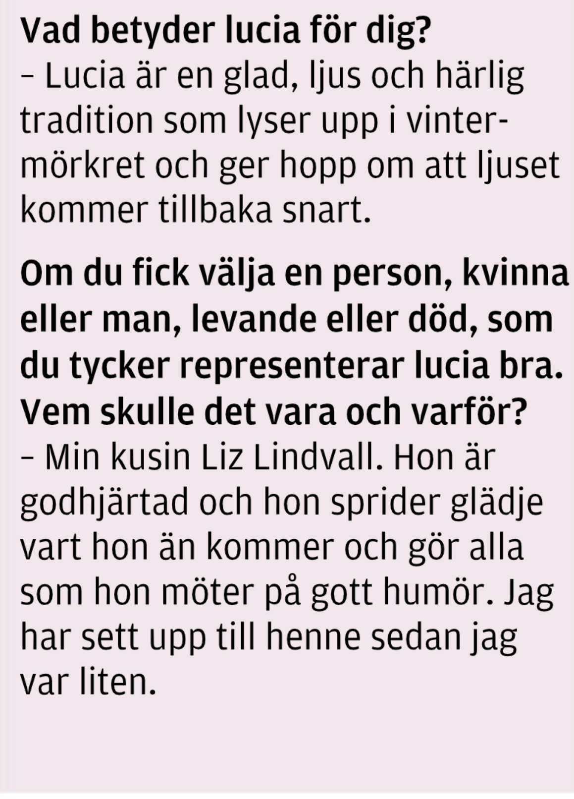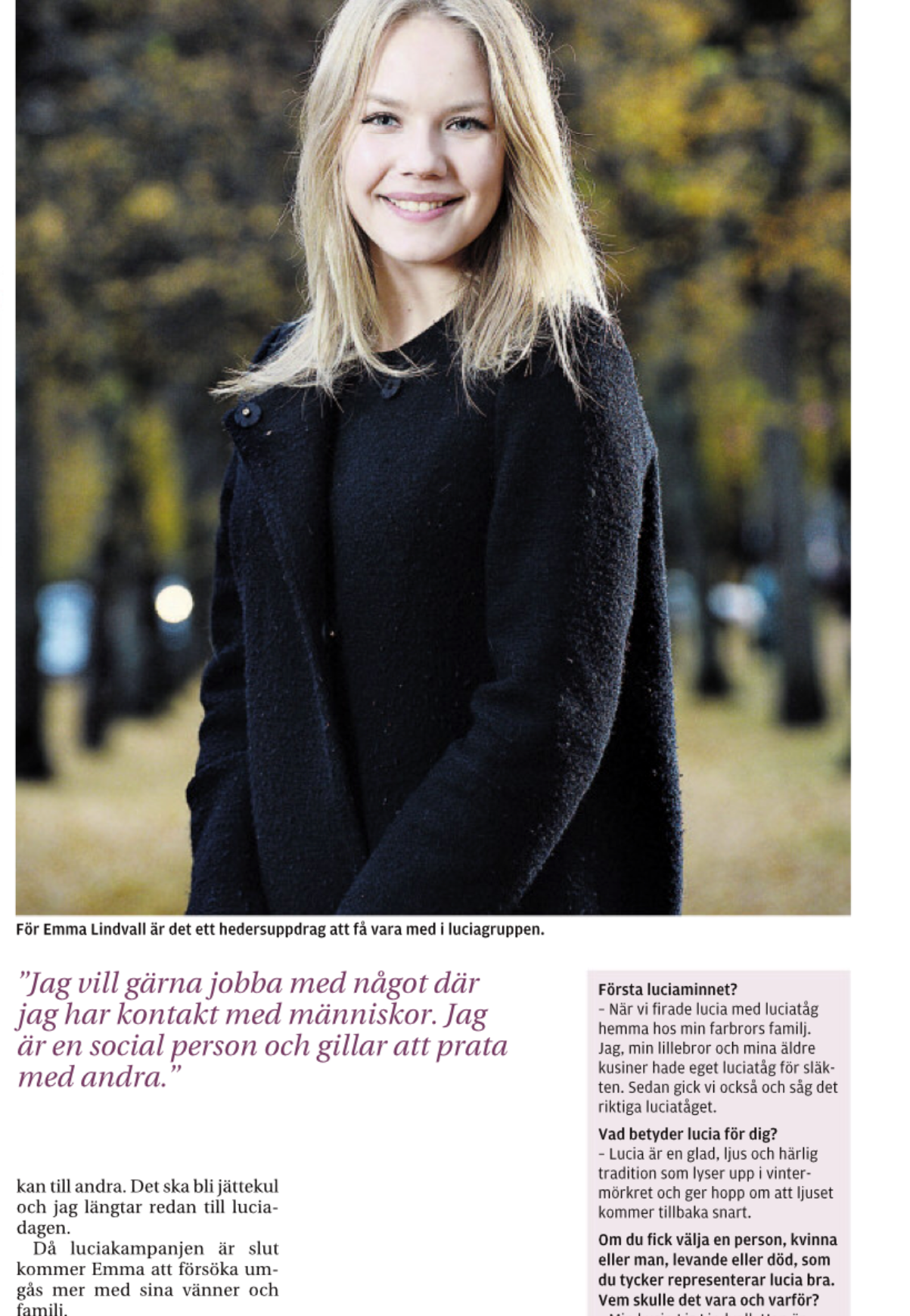 I dag fick jag världens finaste komplimang av min kära kusin Emma, som är luciakandidat på Åland och blev intervjuad i tidningen: