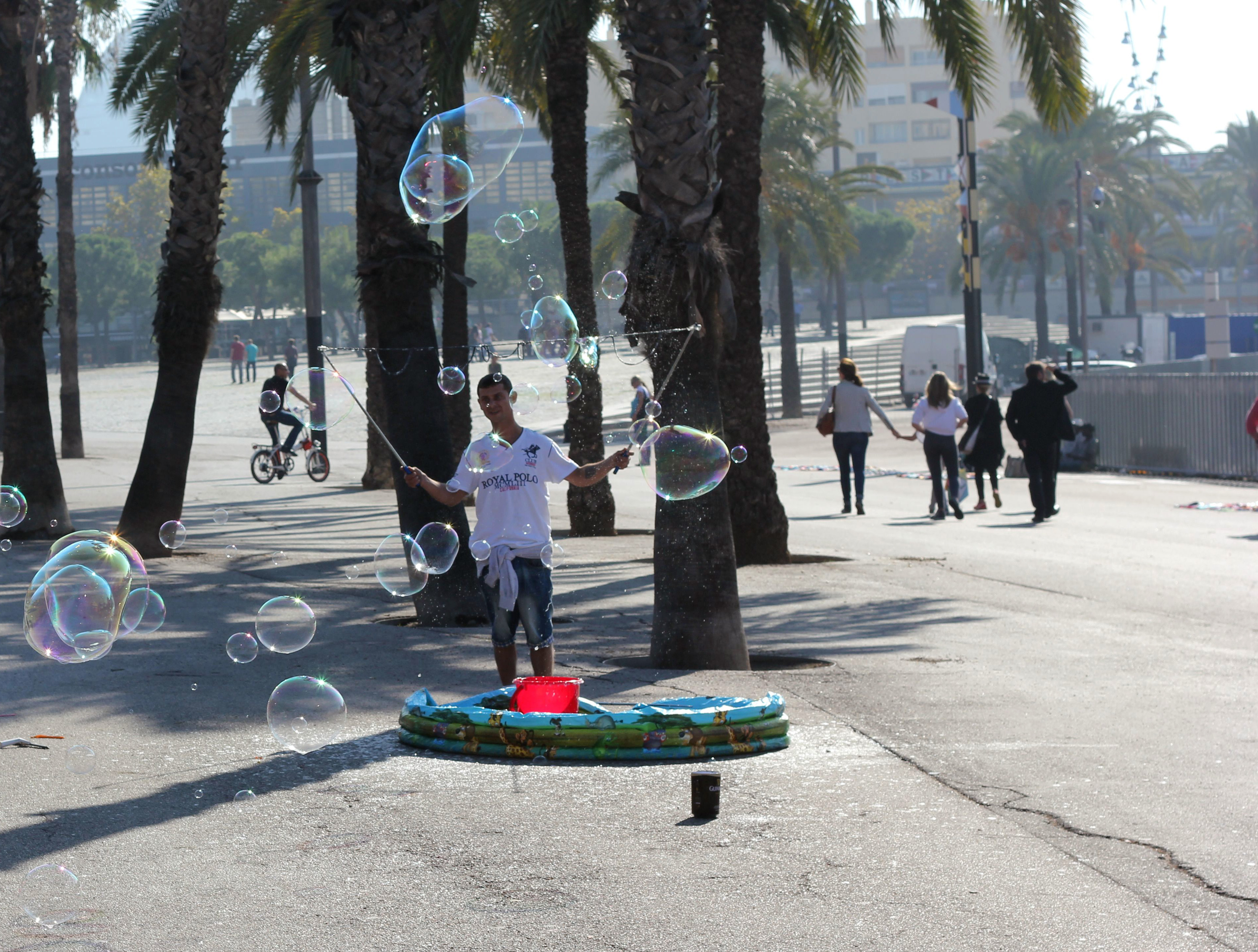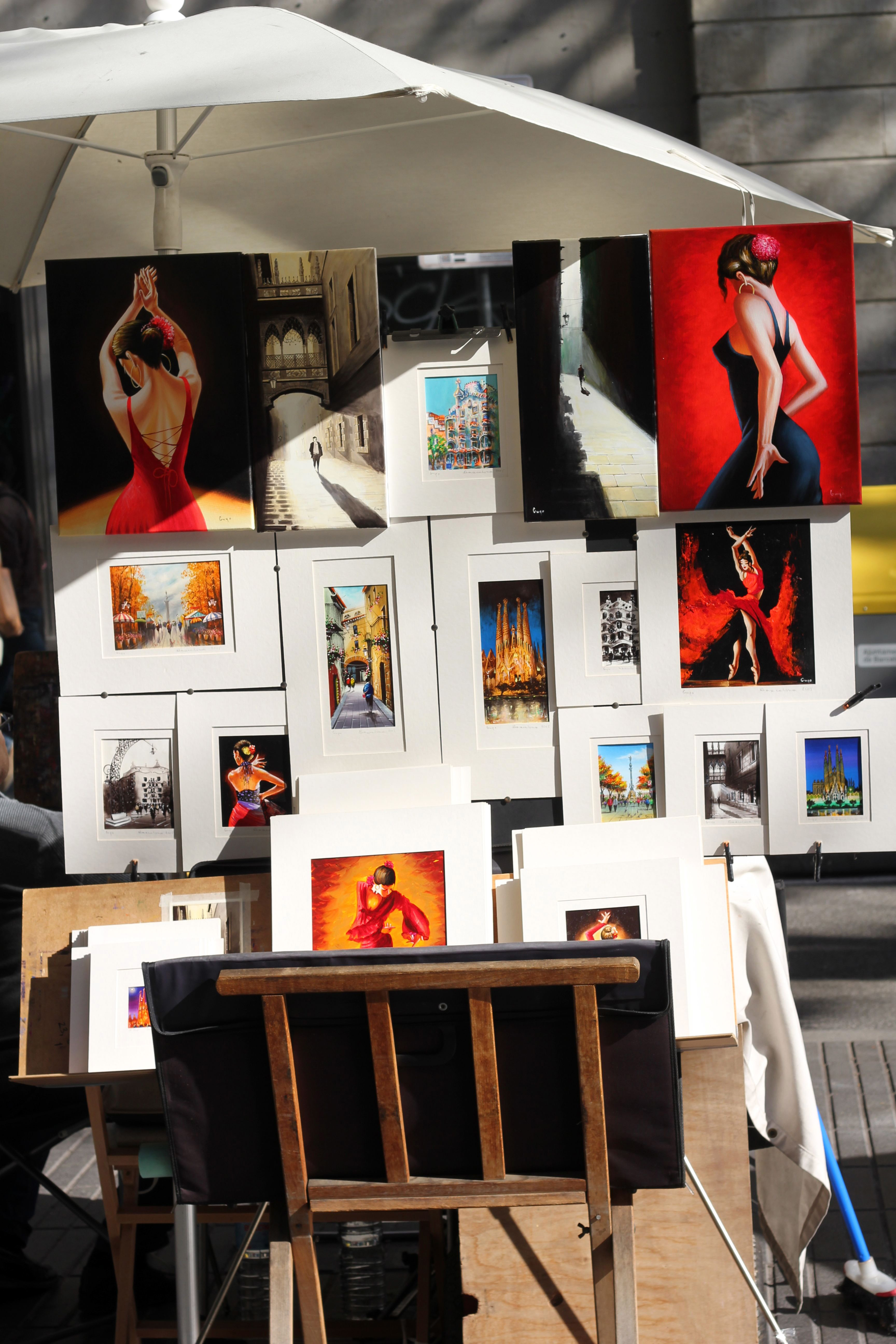 Ramblan var som alltid full av besökare på semester, men rytmen lugnare och rösterna dovare än i augusti. Blombuketter till försäljning, en söt doft av våfflor och gatukonst som gör mig glad.