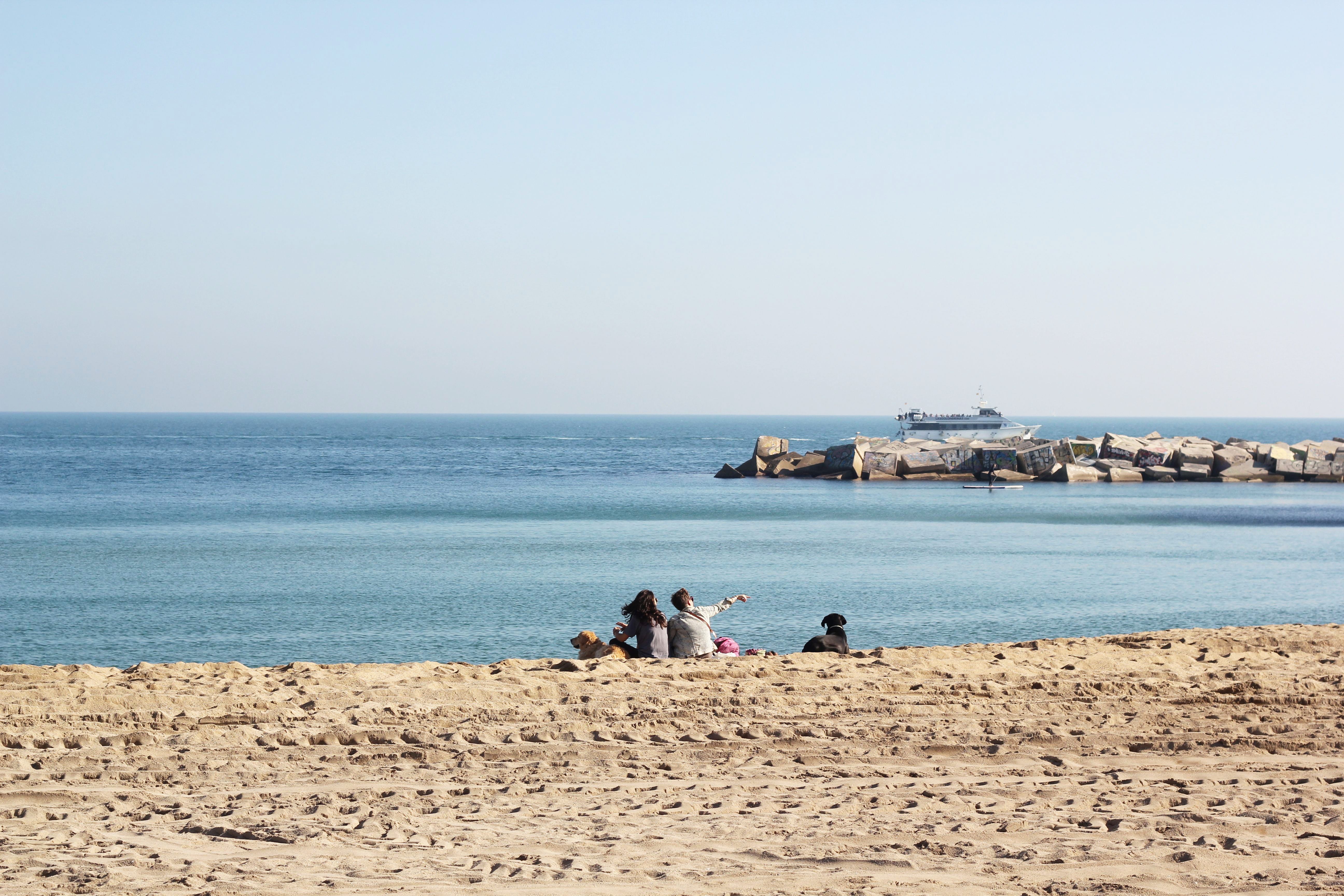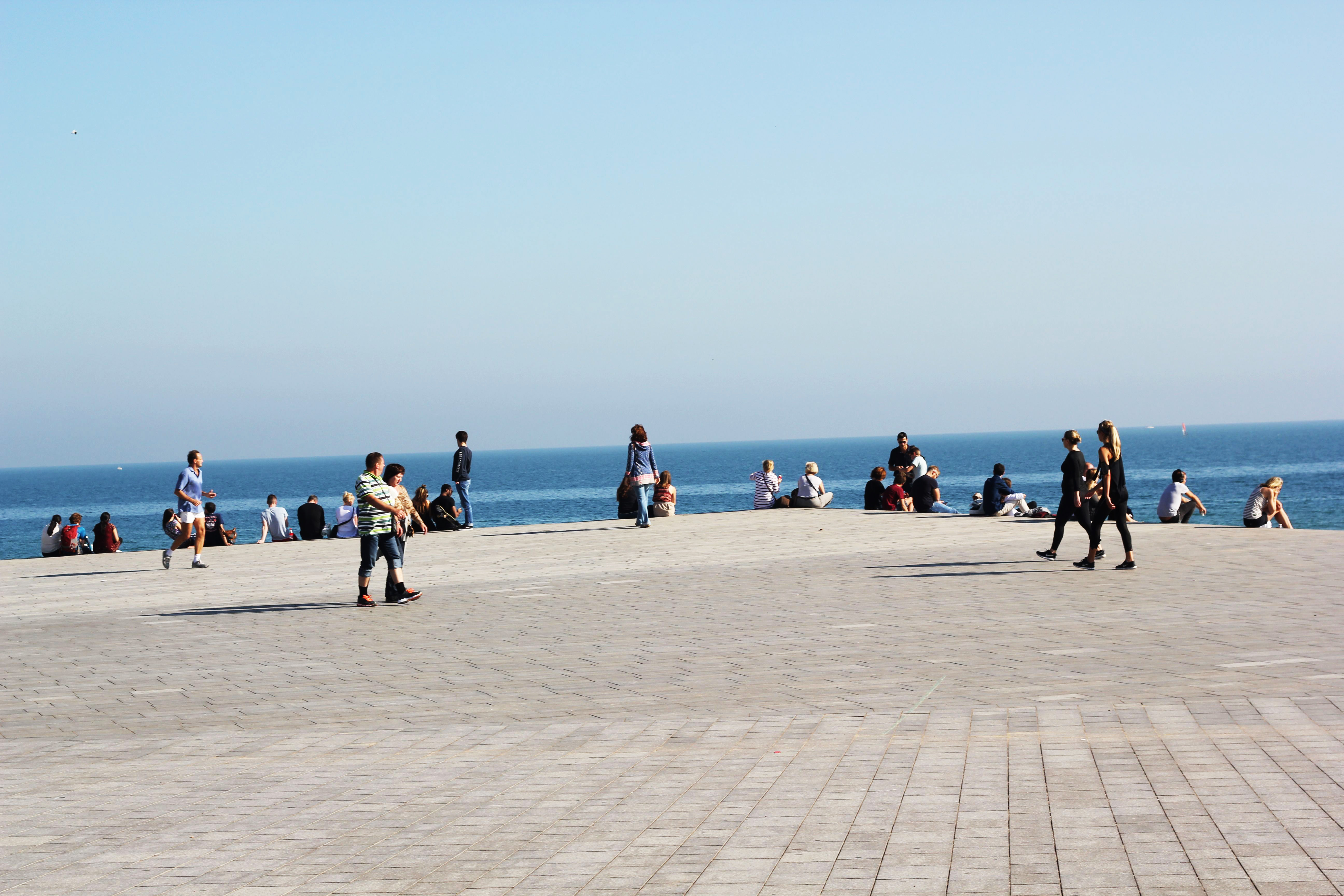 Till slut kom vi ner till stranden, där människor fortfarande simmar och solar i bikini. Men vinden blåser kallt. Det är höst trots allt.